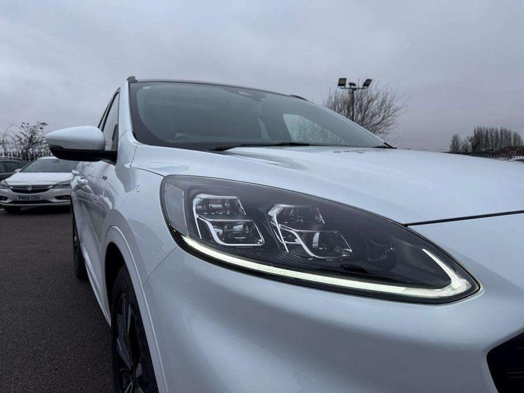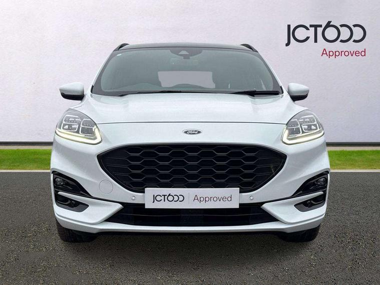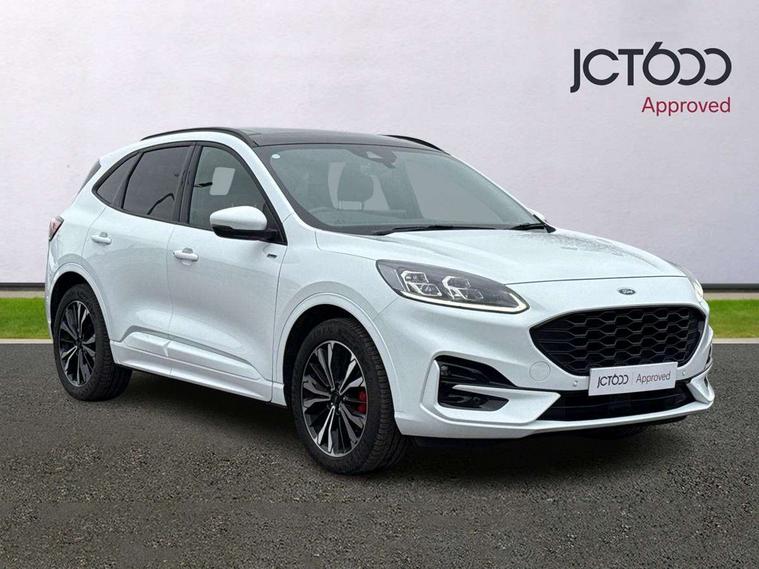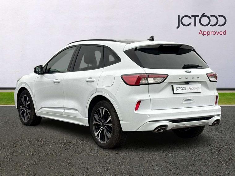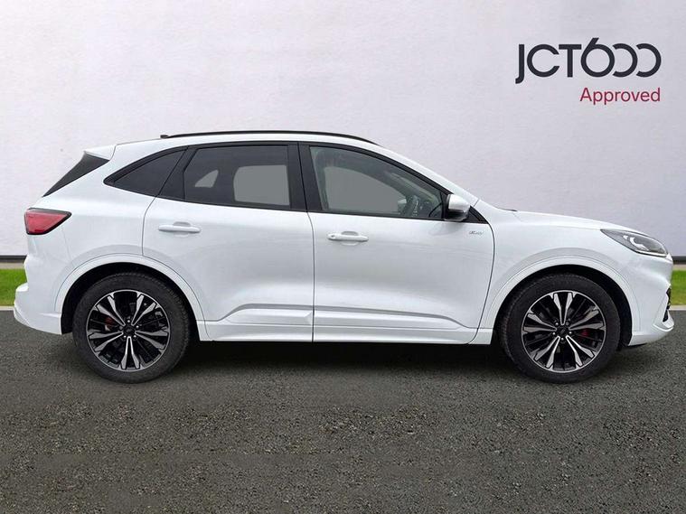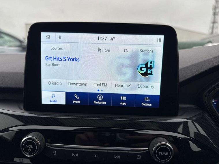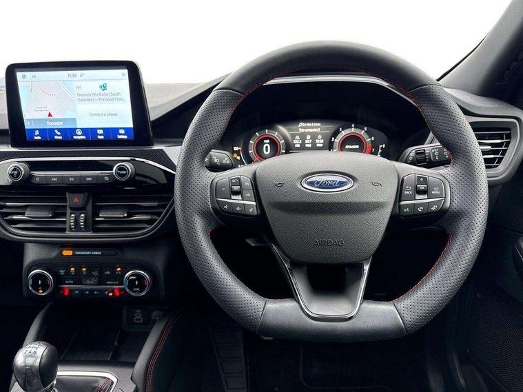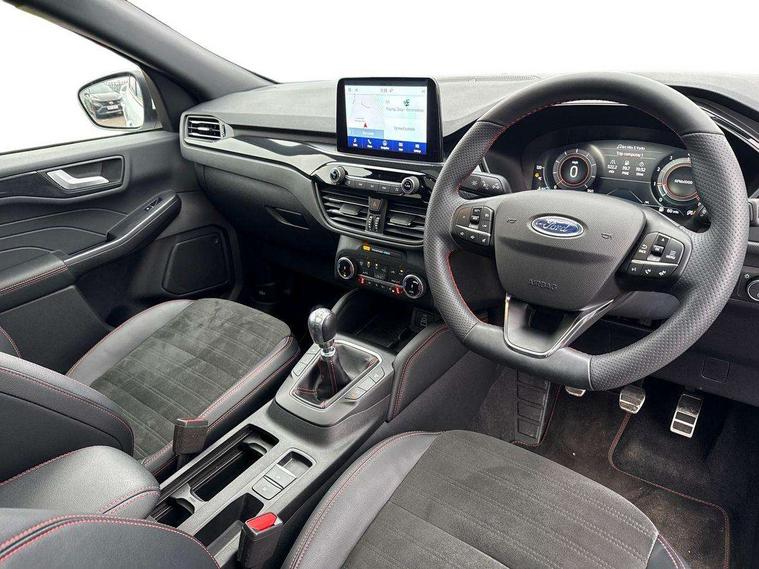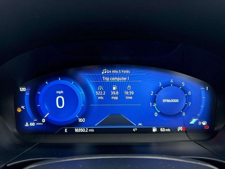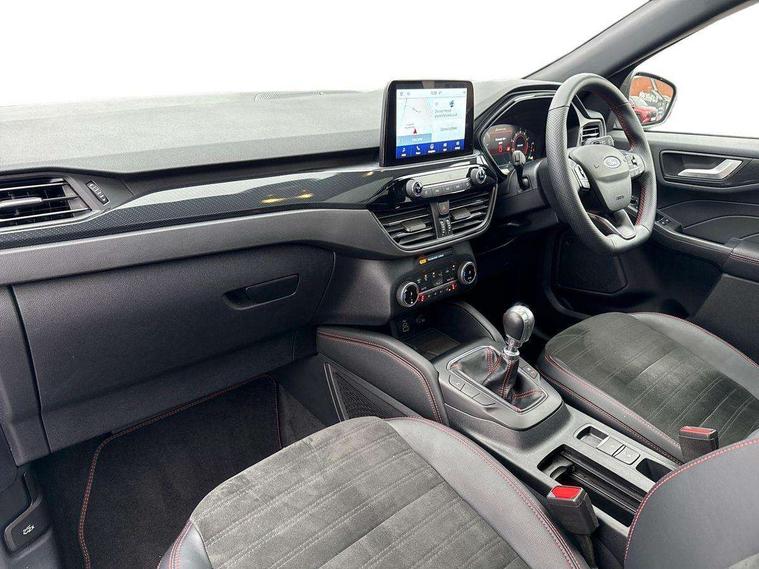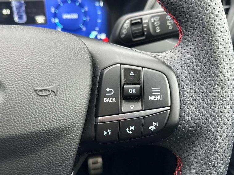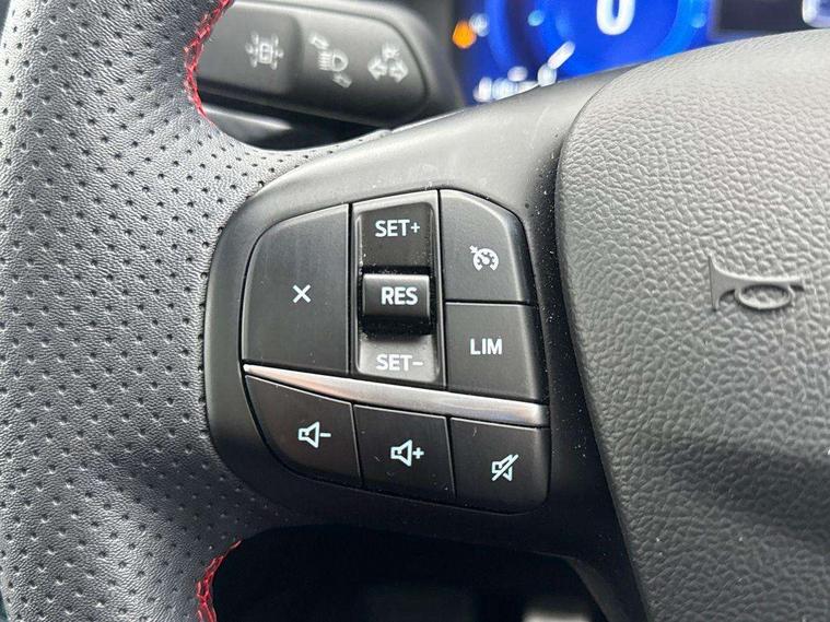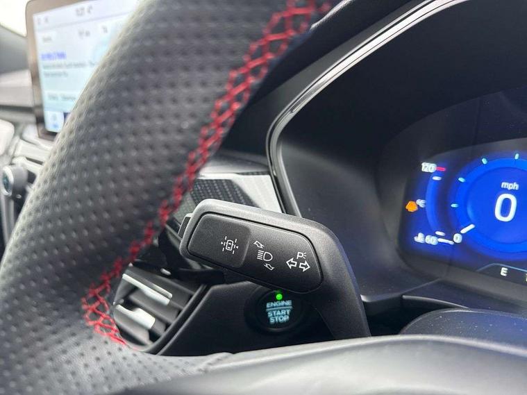 12.3" digital colour instrument cluster, Ford easy fuel, Ford SYNC 3 with 8" TFT LCD touchscreen, App Link, andriod auto/apple carPlay, emergency assistance and navigation with Ford pass connect, Front and rear parking sensors, Hands free power tailgate, Lane keeping aid with lane departure warning, Power assist steering, Rear view camera, Selectable drive modes, Service interval indicator, Sports suspension, Twist beam rear suspension, B&O premium audio system with 10 speakers and subwoofer, 2 USB ports, DAB radio/CD, Auto headlamps with high and low beam, Black roof rails, Body colour bumpers, Day/night rear view mirror, Front LED fog lamps, Large rear roof spoiler, LED daytime running lights, LED rear lights, Power folding, electrically adjustable and heated door mirrors with puddle lights, Power front/rear windows with global close, Power opening panoramic roof, Quickclear heated windscreen, Rain sensing wipers, Rear privacy glass, Rear side wing doors, Rear wiper, ST Line body styling kit with unique front and rear fascia and bumper, rear painted diffuser, front painted skid plates, dark mesh upper grille, ST Line front scuff plates, Third brake light, Twin exhausts, 2nd row sliding seats with 60:40 split, Alloy pedals, Centre console with electronic parking brake, Dark headlining and pillars, Electronic automatic temperature control (EATC), Flat bottomed leather steering wheel in sensico with red stitching, Front and rear head restraints, Heated passenger and driver seats, Heated rear seats, Heated steering wheel, Partial premium touch Sensico with black cloth inserts and red stitching, Rear centre head restraint, Single front passenger seat, Sports seats, ST Line front and rear floor mats, ST Line gear knob, 3x3 point rear seatbelts, Airbags - front driver/passenger, front and rear curtain, Drivers knee airbag, Electronic stability control (ESC) and ABS, Ford MyKey Gen 2 safety system, Manual child proof rear door locks, Post collision braking, Pre collision assist with autonomous emergency braking, Rear seat Occupancy alert, Red brake calipers, Tyre pressure monitoring system, Engine immobiliser, Keyless entry and Ford power start button (Keyless start), Locking wheel nuts, Remote powered central double locking doors, Thatcham category 1 alarm,