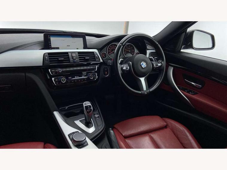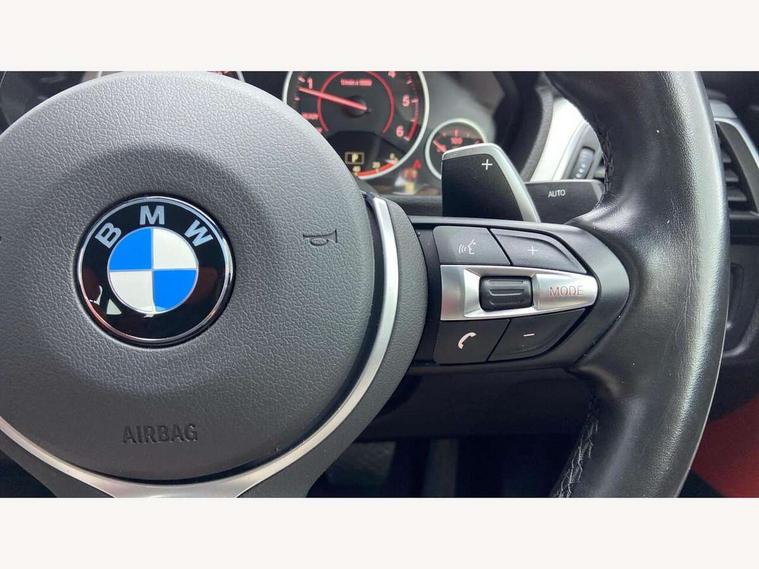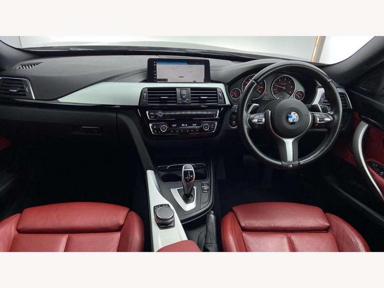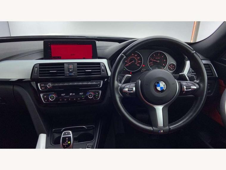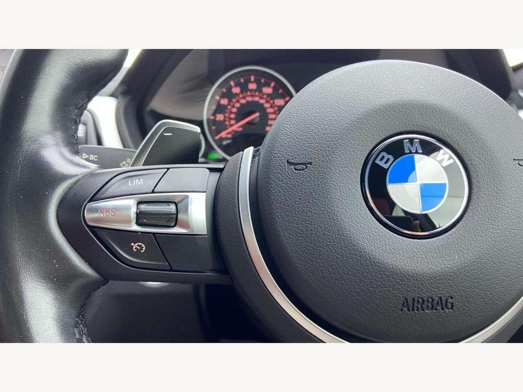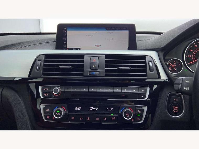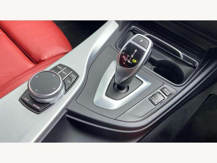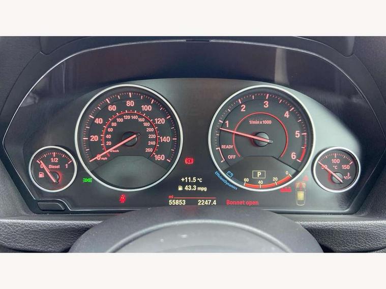 6.5" colour display screen, Auto start-stop, Automatic tailgate operation, Bluetooth hands free facility with USB audio interface, BMW apps interface, BMW remote services, BMW Teleservices, Brake pad wear indicator in front and rear, Check Control warning system for monitoring of lights and door/luggage compartment open warning, Digital clock, Door/boot open warning light, Fuel gauge, iDrive Controller with 8 favourite buttons, Lights on warning by audio warning signal when ignition is switched off, M Sport instrument cluster, Navigation system Business advanced, Odometer/trip meter, Oil sensor for level and grade, warning by check control system, Oil temperature gauge, On-Board Computer (OBC) comprising: average speed, average and current fuel consumption, and range, outside temperature display with acoustic warning, Optimum shift indicator, Personal Profile - automatic lock when driving away selectable, Push button starter, Real time traffic information, Service interval indicator, Speedometer with mph readout, Tachometer, Trip meter, Aluminium front suspension, Diesel particulate filter, Drive performance control - ECO PRO, comfort, sport and sport+ modes, Electronic differential lock, Five link rear suspension, Incorrect fuelling protection, Sports function on gearbox with steering wheel mounted gearshift paddles, Auxiliary input socket in centre console, DAB tuner, Active rear spoiler, Automatically dimming electrochromatic rear view mirror, Body colour bumpers, Body colour door handles, Body colour door mirrors, Body colour roof mouldings, Chrome kidney grille with extra wide black, high gloss black vertical slats, Clear lenses direction indicator lights, Direction indicator side lights integrated exterior mirrors, Door sill finishers with M designation, Dynamic brake lights, Electric front and rear windows with fingertip open/close + anti-trap facility and comfort closing function, Electrically adjustable and heated door mirrors glass aspheric on driver's side and convex on passenger side, Front air inlet with high gloss black finish, Front and rear bumper system, Heated rear window with automatic switch off, Heated windscreen washer jets, High gloss black finish B pillar, High gloss rear bumper insert, High gloss shadow line, High level third brake light, LED daytime running lights, LED front and rear fog lights, LED Indicators, LED tail lights, LED welcome home lights, Lightweight engineering, M aerodynamic body styling, M designation side exterior badges, Model designation, Model specific design elements, Rain sensor with automatic headlight activation, Rear wash/wipe, Shark fin roof aerial, Side air inlets in black/aluminium highlights, Twin chrome exhaust tailpipes, Two speed adjustable intervals windscreen wipers, Visible VIN plate, 12V socket in centre console, luggage area and passenger footwell, 2 bag hooks in luggage compartment, 40:20:40 split folding rear seat with loading system, Anthracite headlining, Automatic interior light soft on/soft off system, Bottle holders integrated into door, Dakota leather upholstery, Driver/passenger sunvisors with ticket holders + vanity mirrors, Foldable boot floor with storage compartment, Folding rear seat head rests, Four grab handles integrated in roof lining, Front and rear side armrest integrated into door trim, Front and rear velour floor mats, Front sports seats with electric side bolster adjustment, Glove box opener with chrome spider, Height adjustable front headrests, Indirect front interior illumination - soft-light function, Leather gearknob and handbrake lever, Luggage compartment lighting, Reach + rake adjustable steering column, Rear centre armrest with 2 cupholders, Rear parcel shelf - 2 stage removable, Reclining rear seats, Slope adjustable rear seats, Storage compartment in rear centre console and front/rear door trims, Toolkit located in luggage compartment, Two front cupholders with removable oddments tray/lid, Two zone automatic air conditioning, Extended lighting package - 3 Series, Non Smokers pack, Airbag - Driver, front passenger, front and side with manual deactivation of front passenger airbag, front and rear ITS head airbags, Anti-lock braking system (ABS) with brake assist, Automatic Stability Control (ASC), BMW emergency call, Brake drying, Brake energy regeneration, Braking pre-tensioning, Child proof locking system in rear door, Child seat ISOFIX attachment rear outer seats, Cornering brake control (CBC), Crash sensor activating central locking release with hazard warning lights and interior lighting + battery safety cut-off, Dynamic brake control, Dynamic stability control + (DSC+), Dynamic Traction Control - DTC, Front and rear ventilated brake disc, Front pyrotechnic belt tensioners and belt force limiter, rear coaded belt buckles, Front seatbelt pretensioners + load limiters, Hill start assist, Seatbelt security check for driver and front passenger, Seatbelt warning, Side impact protection, Twin horns, Tyre pressure monitoring with three level warning strategy, Warning triangle and first aid kit, Alarm system (Thatcham 1) with remote control and electronic engine immobiliser, Automatic drive away locking facility, Central locking switch for all doors, fuel filler cap and luggage compartment, Remote control integrated key with blue inset, Start/stop button with comfort go keyless engine start and auto start stop deactivation button, Air-conditioning and radio control panel with Chrome highlight, Reduced rolling resistance tyres, Run-flat tyres,
