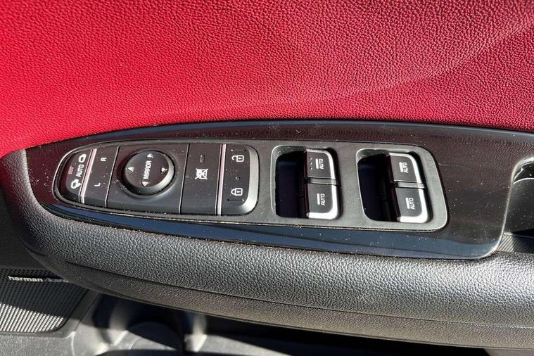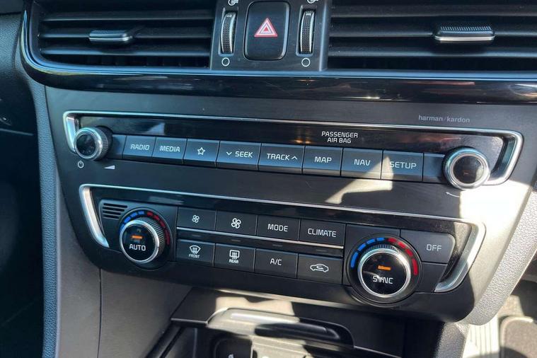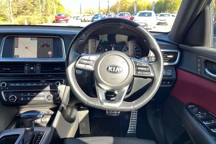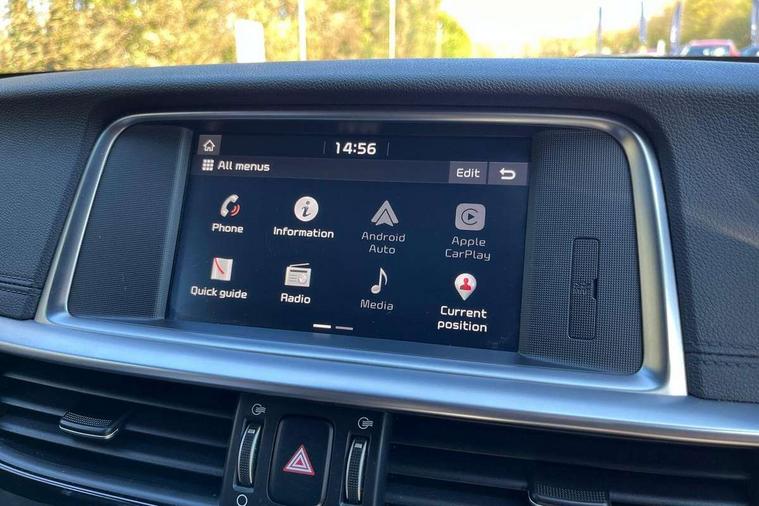 8" touch screen, Active park assist with parallel/perpendicular system, Adaptive cruise control, Apple car play/Android Auto, Around View Monitor, Blind spot assist, Bluetooth connectivity with voice control, Digital clock, Drive mode selector, Driver attention warning, Emergency stop signalling system, Engine start/stop button, Forward collision warning, Front and rear parking sensors, Kia connected services, Lane keep assist, LCD TFT Colour Display, Low washer fluid warning light, Navigation system, Power Steering, Power tailgate, Rear cross traffic alert, Remote fuel cap release, Reversing camera, Speed limit display, Trip computer, Wireless Smartphone charger, Electronic suspension control, Intelligent Stop and Go, Bluetooth audio streaming, DAB Radio with MP3, Harman/Kardon Premium sound system with 8 Speakers, Rear USB port, Steering wheel mounted controls, USB and auxiliary socket, Auto dimming rear view mirror, Automatic defog system, Automatic headlight control system, Automatic headlight levelling, Black high gloss/chrome front fender garnish, Body colour door handles with chrome trim, Body colour door mirrors, Body coloured bumpers, Dark grey mesh grille, Dual chrome tipped exhausts, Dynamic cornering light, Electric adjustable/heated/folding door mirrors, Exterior grab door handles, Follow me home headlights, Front door courtesy lamps, Heated rear window with timer, High beam assist, High gloss black trimmed side sill mouldings, High level LED brake light, LED daytime running lights, LED front fog lights, LED Headlights, LED indicators in door mirrors, LED rear lights, Metal Boot lip trim, One touch electric front/rear windows, Premium paint, Privacy glass, Rain sensing front wipers, Rear diffuser, Rear fog lights, Rear side window blinds, Remote window closing, Roof rails, Satin chrome roof line trim, Shark fin antenna, Speed sensitive front wipers, Tinted glass, Towing preparation, UV-reducing solar glass, Visible VIN plate, Welcome home function, 12V socket in front and rear, 12V socket in luggage compartment, 4 way electrically adjustable lumbar support for drivers seat, 40:20:40 split folding rear bench seat, 8 way electric adjustable drivers seat, 8 way electrically adjustable passenger seat with height, reach, till and backrest, Air filter, Alloy pedals, Ambient lighting, Assist grips, Black headlining, Centre console storage box/armrest, Centre fascia storage tray, Cupholders in centre console, Driver's seat memory, Dual zone automatic air conditioning, Electric Sound Generator, Faux leather centre console armrest, Faux leather trimmed door armrests, Front and rear door pockets with bottle holders, Front LED map light with sunglasses case, Front seat and rear pockets, Gloss Black finish electric window switch panels, Heated front seats, Heated outer rear seats, Heated steering wheel, Height adjustable headrests, Illuminated glovebox with lock, ISOFIX top tethers and lower anchor points, Leather steering wheel with red stitching, Leather trimmed gearshift, Leather upholstery, LED rear reading lights, Load area cover, Luggage area lamp, Luggage area rail system, Luggage net with hooks, Luggage partition net, One touch fold flat handle for rear seats, Paddle shift controls, Passenger seat lumbar adjust, Rear air vents, Rear centre armrest with cupholder, Rear coat hooks, Rheostat dimmer switch, Satin chrome interior door handles, Stainless Steel Scuff Plates, Sunvisors with illuminated vanity mirrors, Tilt/telescopic adjustable steering wheel, Touchscreen satin chrome bezel trim, Ventilated front seats, 3 point seatbelts on all seats, ABS/EBD, Automatic unlocking of doors in case of impact, Brake calipers in red, Curtain airbags, Dual front airbags, Dual Side airbags, Electronic parking brake, ESC + BAS + VSM + HAC, Front passenger airbag deactivation, Front seatbelt pretensioners + load limiters, Height adjustable front seatbelts, Hill start assist, Rear door child safety locks, Seatbelt warning, Traction control, Tyre pressure monitoring system, Anti theft alarm, Anti-drill door locks, Deadlocks, Immobiliser, Locking wheel nuts, Smart key entry system, Speed sensitive auto door locking, Aluminium finish to centre console, 18" Alloy wheels, Tyre mobility system,