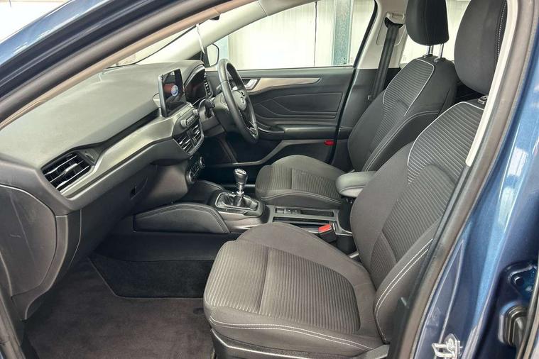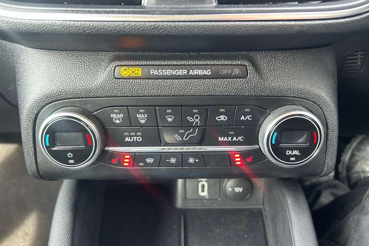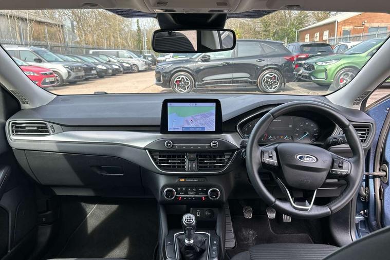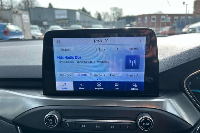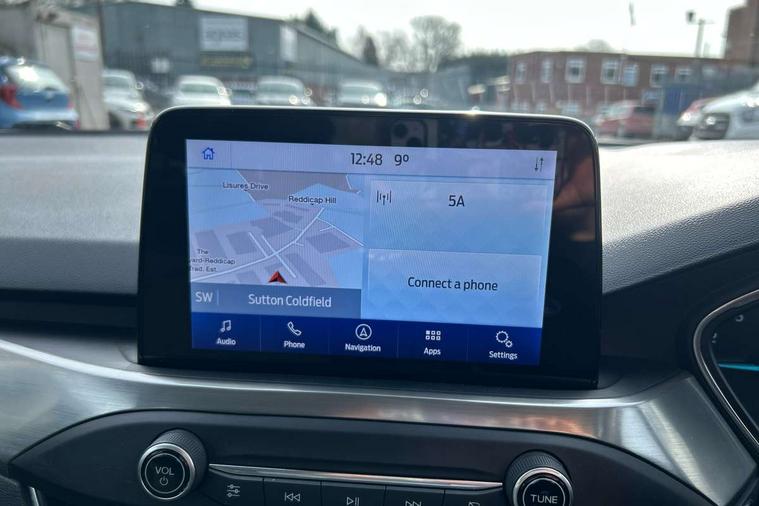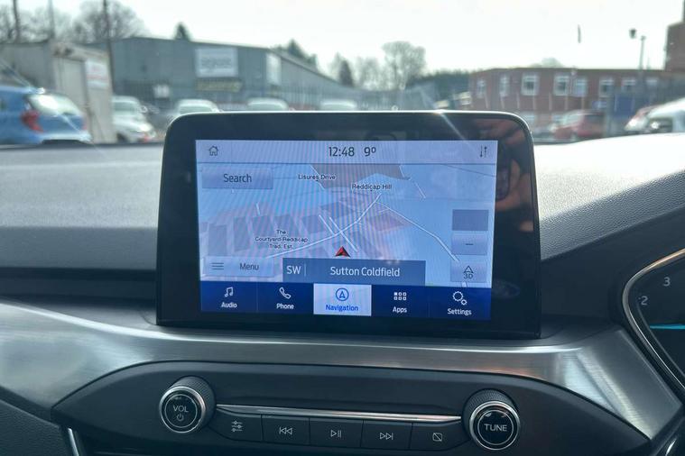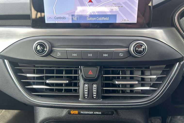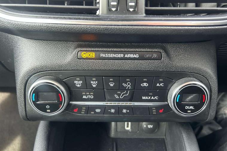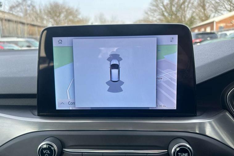 Bluetooth system, Digital clock, Easy fuel capless refuelling system, Eco mode, Ford pass connect, Ford SYNC 3 nav system with DAB radio, 8" colour touch screen, voice control, app link, Apple car play/Android auto and 4.2" TFT coloured cluster, Front and rear parking sensors, Intelligent speed assist, Lane keeping aid with lane departure warning, PAS, Selectable drive mode, Trip computer, 2 USB ports, Aux input, 'Quickclear' heated windscreen/heated washer jets, Auto dimming rear view mirror, Auto headlamps (on/off), Automatic rain sensing wipers, Body coloured bumpers, Body coloured door handles, Body coloured electrically operated and heated door mirrors with side indicators, Electrically operated front and rear windows with one touch opening and closing, Front fog lamps with cornering function, Front variable intermittent wipers with electric wash, Halogen reflector headlamps, Heated rear window, LED daytime running lamp, LED rear lamps, Power folding door mirrors with puddle lights, Tailgate wash/wipe, Upper grille with chrome surround and horizontal bars, 3 spoke leather trimmed steering wheel with integrated audio controls, 60/40 split back and cushion rear seats with 2 height adjustable headrests, Ambient lighting, Centre console with sliding front armrest, Cloth upholstery, Dual zone electronic air temperature control, Front/rear floor mats, Heated front seats, Height adjustable front headrests, Isofix child seat preparation, Leather gear knob, Reach + rake adjustable steering column, Rear centre headrest, ABS+Electronic Brake force Distribution, Auto hold function, Driver airbag, Electronic parking brake, Electronic stability control, Front and rear seatbelt reminder, Front inertia reel height adjustable seatbelts with pre-tensioners, Front passenger airbag, Front side airbags, Hill start assist, Passenger airbag deactivate switch, Post collision braking, Pre collision assist with autonomous emergency braking and pedestrian/cyclist detection, Side curtain airbags, Three rear inertia reel lap/diagonal seatbelts, Tyre pressure monitoring system, Ford keyfree system with Keyless entry and keyless start, MyKey system, Remote central locking & engine immobiliser, Thatcham category 1 alarm, 16" 15 spoke sparkle silver alloy wheels, Mini steel spare wheel,