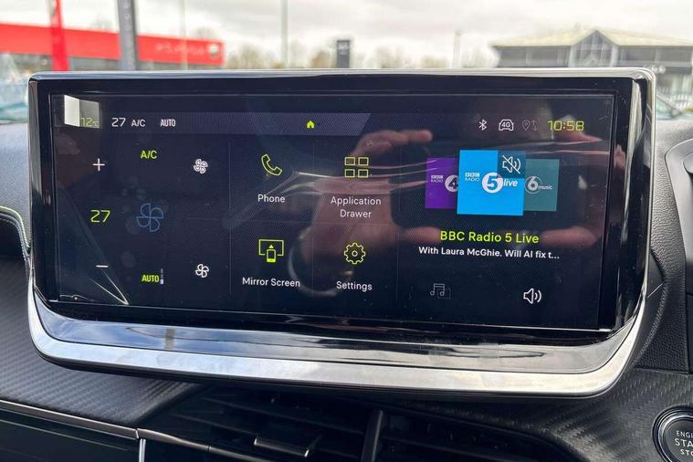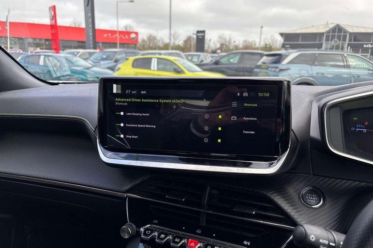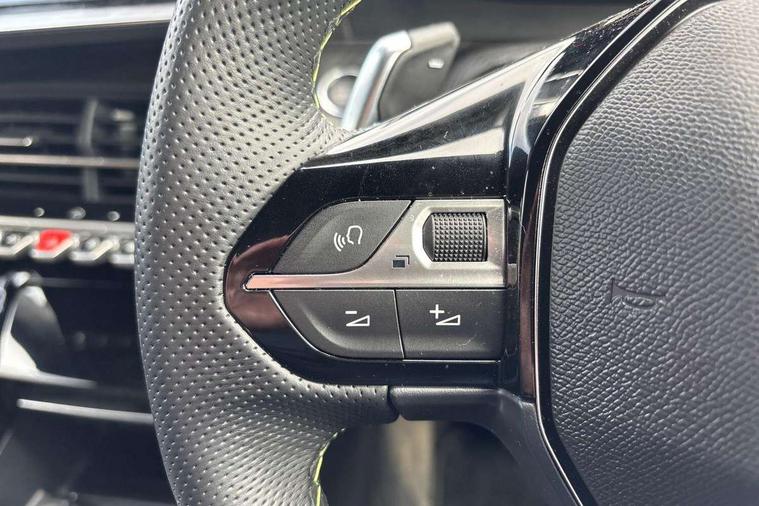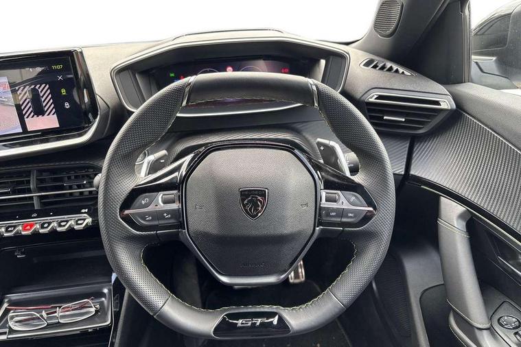 Bluetooth telephone facility, Driver attention warning, E-call, Exterior temperature indicator with ice warning, Front and rear parking sensors, Multi function trip computer, PEUGEOT i-Cockpit with 10" high definition capacitive touchscreen, PEUGEOT i-Cockpit with compact steering wheel, PEUGEOT i-Cockpit with configurable 3D headup instrument panel, PEUGEOT SOS and assistance, Speed limit recognition and recommendation, Wireless mirror screen with mirror link, apple carplay and android auto, Petrol Particulate Filter, 1x USB-C socket in rear and 1x USB-A socket in rear, 2 USB-C ports in the front, 6 speakers radio with mp3 compatible, DAB Radio (Digital Audio Broadcasting), Voice recognition for radio, navigation and telephony features, 2 X Rear number plate lights, Aluminium door sill scuff plates with peugeot lettering, Automatic hazard light activation upon heavy brake application, Black diamond roof, Black front wing trim with gloss black detail and GT badging, Body coloured exterior door handles, Dark tinted rear side and tailgate windows, Diamond black mirror shells, Diamond black rear roof spoiler, Electric, heated, and power folding door mirrors, Frameless electrochrome interior rear view mirror, Front bumper - Meteor grey lower trim, Full LED headlights with smartbeam assist with auto height adjustment, Gloss black finish on B pillar, Gloss black rear cluster connecting strip, Gloss black roof bars, Gloss black window surround, GT model designation badging on tailgate, Headlights left on audible warning, LED daytime running lights with distinctive 3 claw signature, LED side indicator lights integrated into door mirrors, LED third brake light, Model designation badges front and rear, One touch electric front/rear windows with pinch protection, Radiator grille - body coloured vertical chequered grille, Radiator grille - gloss black top edge trim, Rear full LED 3D peugeot signature claw effect lights with daylight function, Rear reversing lights, Rear side wing doors, Rear windscreen wiper triggered automatically in reverse gear, Reinforcement of the front bumper, Tailgate with heated rear windscreen and wiper blade, Twin chromed exhaust pipes, Wheel arch extensions, 1/3 to 2/3 split folding rear seats, 12V socket, 3 seat bench in 2nd row, 8 Colour personalisable ambient lighting, Automatic air conditioning with pollen and active carbon filter, Central front armrest with storage compartment, Driver and front passenger sport seats, Electric power steering with reach and rake adjustable steering column, Front and rear carpet mats in black, Front LED interior light with 2 reading spotlights and rear interior light with timer, Front passenger seat manual adjustment - height, longitudinal and back rest angle, High centre console, ISOFIX child seat mounting points on passenger seat, Mistral full-grain perforated leather steering wheel with Lime Green stitch detail and satin chrome 'GT' emblem, Multifunction steering wheel, Piano keys: Gloss black and chrome toggle switches to access main functions of the vehicle and touchscreen functions, Roof lining - Mistral black, Seatbelt unfastened on the move audible and visual alert for front and rear seats, Single front passenger seat, Two position modular boot floor, Visibility pack - 2008, 2x 2nd row ISOFIX child seat mountings, ABS (Anti-lock Braking System) with EBD (Electronic Brakeforce Distribution) and EBA (Emergency Braking Assistance), Active safety brake with night function/cyclists/pedestrians, Adaptive driver and front passenger airbags with passenger airbag deactivation function, Advanced emergency braking system (AEB) with enhanced camera with the high beam and radar, Child locking functionality on rear doors, Driver/front passenger side airbags, Electric parking brake, ESP (Electronic Stability Program) + Hill Start Assist, Front and rear curtain airbags, Front and rear disc brakes, Front and rear three-point retractable seatbelts, with force limiters, Front optimised safety headrests and rear retractable headrests (x3), height adjustable, Tyre pressure sensor, Automatic door locking when moving off, Deadlocks, Electronic code immobiliser, Thatcham category 1 alarm, Carbon effect Dashboard, front and rear door panel finish,