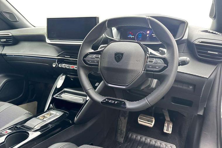 Bluetooth telephone facility, Driver attention warning, E-call, Exterior temperature indicator with ice warning, Front and rear parking sensors, Multi function trip computer, PEUGEOT i-Cockpit with 10" high definition capacitive touchscreen, PEUGEOT i-Cockpit with compact steering wheel, PEUGEOT i-Cockpit with configurable 3D headup instrument panel, PEUGEOT SOS and assistance, Speed limit recognition and recommendation, Wireless mirror screen with mirror link, apple carplay and android auto, Petrol Particulate Filter, 1x USB-C socket in rear and 1x USB-A socket in rear, 2 USB-C ports in the front, 6 speakers radio with mp3 compatible, DAB Radio (Digital Audio Broadcasting), Voice recognition for radio, navigation and telephony features, 2 X Rear number plate lights, Aluminium door sill scuff plates with peugeot lettering, Automatic hazard light activation upon heavy brake application, Black diamond roof, Black front wing trim with gloss black detail and GT badging, Body coloured exterior door handles, Dark tinted rear side and tailgate windows, Diamond black mirror shells, Diamond black rear roof spoiler, Electric, heated, and power folding door mirrors, Frameless electrochrome interior rear view mirror, Front bumper - Meteor grey lower trim, Full LED headlights with smartbeam assist with auto height adjustment, Gloss black finish on B pillar, Gloss black rear cluster connecting strip, Gloss black roof bars, Gloss black window surround, GT model designation badging on tailgate, Headlights left on audible warning, LED daytime running lights with distinctive 3 claw signature, LED side indicator lights integrated into door mirrors, LED third brake light, Model designation badges front and rear, One touch electric front/rear windows with pinch protection, Radiator grille - body coloured vertical chequered grille, Radiator grille - gloss black top edge trim, Rear full LED 3D peugeot signature claw effect lights with daylight function, Rear reversing lights, Rear side wing doors, Rear windscreen wiper triggered automatically in reverse gear, Reinforcement of the front bumper, Tailgate with heated rear windscreen and wiper blade, Twin chromed exhaust pipes, Wheel arch extensions, 1/3 to 2/3 split folding rear seats, 12V socket, 3 seat bench in 2nd row, 8 Colour personalisable ambient lighting, Automatic air conditioning with pollen and active carbon filter, Central front armrest with storage compartment, Driver and front passenger sport seats, Electric power steering with reach and rake adjustable steering column, Front and rear carpet mats in black, Front LED interior light with 2 reading spotlights and rear interior light with timer, Front passenger seat manual adjustment - height, longitudinal and back rest angle, High centre console, ISOFIX child seat mounting points on passenger seat, Mistral full-grain perforated leather steering wheel with Lime Green stitch detail and satin chrome 'GT' emblem, Multifunction steering wheel, Piano keys: Gloss black and chrome toggle switches to access main functions of the vehicle and touchscreen functions, Roof lining - Mistral black, Seatbelt unfastened on the move audible and visual alert for front and rear seats, Single front passenger seat, Two position modular boot floor, Visibility pack - 2008, 2x 2nd row ISOFIX child seat mountings, ABS (Anti-lock Braking System) with EBD (Electronic Brakeforce Distribution) and EBA (Emergency Braking Assistance), Active safety brake with night function/cyclists/pedestrians, Adaptive driver and front passenger airbags with passenger airbag deactivation function, Advanced emergency braking system (AEB) with enhanced camera with the high beam and radar, Child locking functionality on rear doors, Driver/front passenger side airbags, Electric parking brake, ESP (Electronic Stability Program) + Hill Start Assist, Front and rear curtain airbags, Front and rear disc brakes, Front and rear three-point retractable seatbelts, with force limiters, Front optimised safety headrests and rear retractable headrests (x3), height adjustable, Tyre pressure sensor, Automatic door locking when moving off, Deadlocks, Electronic code immobiliser, Thatcham category 1 alarm, Carbon effect Dashboard, front and rear door panel finish,