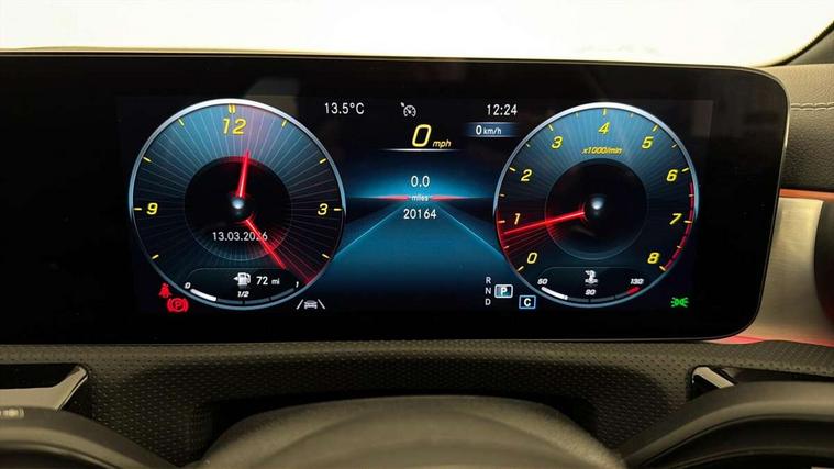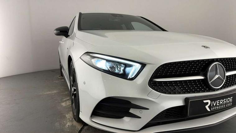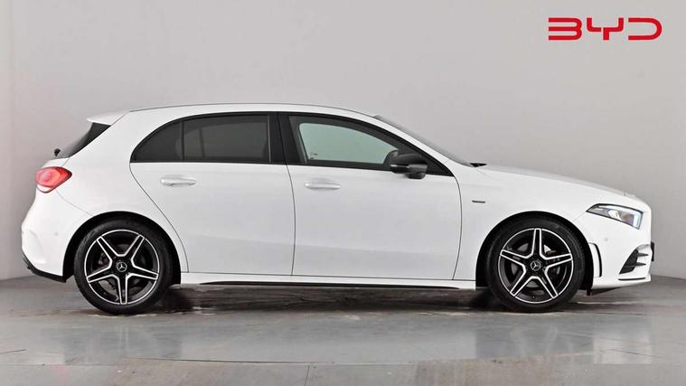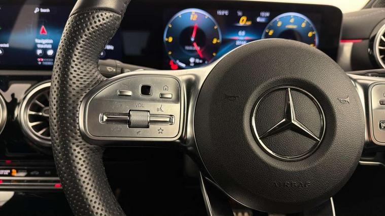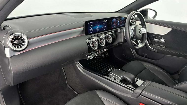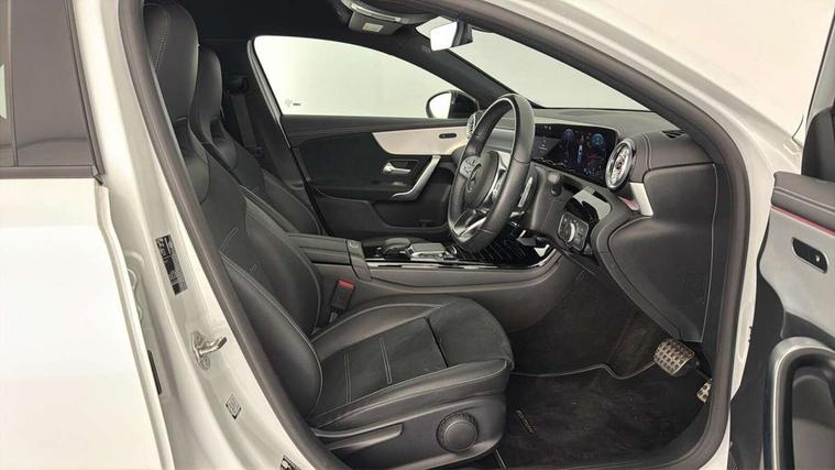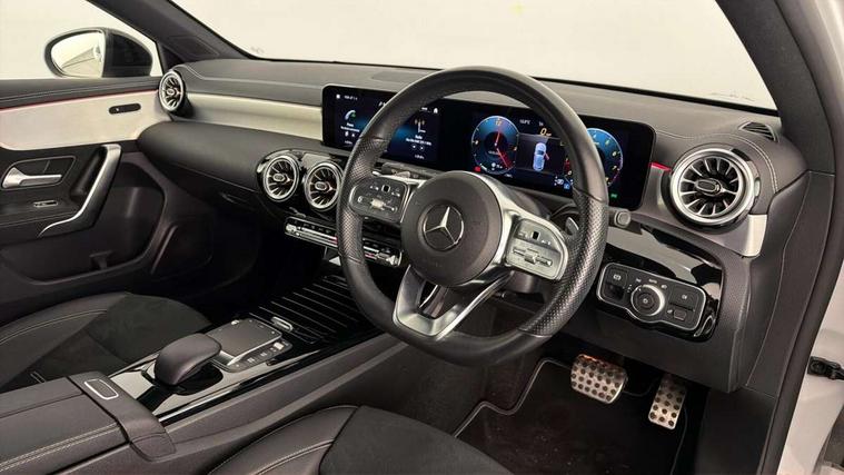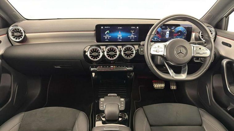 10.25" Digital instrument cluster display screen, 10.25" media display, 180 degree rear view camera with parking guidelines, Active parking assist with visual and audible warning of detected obstacles, Attention assist, Brake pad wear indicator warning light, Car wash mode, Cruise control + speed limiter, Direct steering, Dual bluetooth interfaces, DYNAMIC SELECT with a choice of driving modes (ECO, Comfort, Sport and Individual), ECO start/stop function, Fluid level warning indicator for fuel, oil, coolant and washer fluid, Hard-disk navigation, Hey Mercedes Voice activation, Lamp failure indicator, Lane keeping system, Mercedes me connect including emergency call system, accident recovery, breakdown and maintenance management, Mercedes me remote services, Outside temperature gauge, Owners manual in English, Pre-installation for private car sharing, Preinstallation for Mercedes Benz link, Service indicator (ASSYST), Smartphone integration with Apple CarPlay and Android auto, Speed sensitive power steering, Trip computer, Ultrasonic sensors positioned in the front and rear bumpers, Lowered comfort suspension, Rear axle torsion beam, 10 speakers, 2 USB ports (type C) in rear stowage compartment and one in front of center console, DAB Digital radio, MBUX multimedia system with DAB digital radio and touchpad including satellite navigation, Mercedes-Benz sound system - 100W, 4 Electric Front and Rear windows, Adaptive brake lights, AMG bodystyling - Front apron with splitter in chrome, rear apron with chrome trim and chrome visible trim elements in tailpipe, Automatic headlights, Black weather strip, Body colour bumpers, Body colour door handles, Body colour side skirt, Body coloured door mirrors, Electric adjustable and heated door mirrors with integrated LED side indicators, Exclusive diamond radiator grille, Exhaust system - Twin visible tailpipes in polished stainless steel, Headlamp assist automatic headlamp activation, Heated glass rear windscreen + timer control, High gloss black beltline, LED High level third brake light, LED high performance headlamps with integrated LED daytime running lights, LED tail lamp, Privacy glass, Radio aerial, Rain sensing windscreen wipers with two sensitivity settings, Rear fog lights, Rear side wing doors, Rear wiper, Window line trim strip in high gloss black, 3 seat bench in 2nd row, 3 Spoke flat bottom leather multi function steering wheel with perforated leather in grip area, 40:20:40 split folding rear seats, Artico man-made leather/Microfibre Dinamica upholstery with contrast stitching in light grey, Auto Mercedes-Benz child seat recognition sensor, Black air vents with surround in silver chrome, Black roof lining, Brushed stainless steel sports pedals with rubber studs, Controller on centre console with chrome surround, Floor mats with black top stitching and embroidered edition logo and piping in light grey, Front centre armrest with storage compartment, Front seat backs luggage nets, Front seat cushion length adjustment, Galvanished gear shift paddles on steering wheel, Heated front seats, Height/reach adjustable steering column, Illuminated front door sills with changeable cover, Interior lighting - 64 colour Ambient lighting, Interior mirror with reading lamps in black and frameless, Manual height adjustable front seats, Rear armrest with 2 cupholders, Rear head restraints, Seat occupancy sensor for front passenger seat, Single front passenger seat, Sports seats with integrated headrests, Stowage compartment in centre console with retractable cover, Sunvisors with illuminated vanity mirrors, Touchpad on center console, Twin front cupholders, Two zone thermotronic luxury automatic climate control, Light and sight pack - A Class, Mirror package - A Class, Night pack - A Class Saloon/Hatchback, Seat comfort pack - A Class, 3 rear 3 point seatbelts, ABS with Brake Assist, Active bonnet, Active brake assist includes forward collision warning system with autonomous braking, Adaptive brake assist with hold function and hill start assist, Childproof locks manually operated for rear doors and electrically operated for rear power windows, Crash responsive emergency lighting, Driver and passenger head and side airbags, Drivers knee airbag, Dual stage driver/passenger airbags, Electronic parking brake, ESP curve dynamic assist, ESP with ASR, Front and rear seatbelt reminder, Front brake callipers with Mercedes Benz lettering, ISOFIX and top tether child seat fixing points in two outer rear seats, Tyre pressure monitoring system, Warning triangle and first aid kit, Window airbags, Alarm system/interior protection/immobiliser, Keyless entry lock/unlock, Keyless Go, Remote central locking and crash sensor with emergency opening function, Urban guard vehicle protection system with immobiliser and interior protection, Black seatbelts, Matrix look light longitudinal grain aluminium trim element, 18" AMG 5 twin spoke light alloy wheels aerodynamically optimised painted in black with highsheen finish, Summer tyres, Tirefit sealant kit,