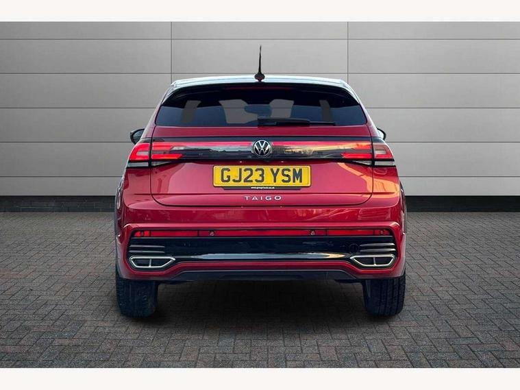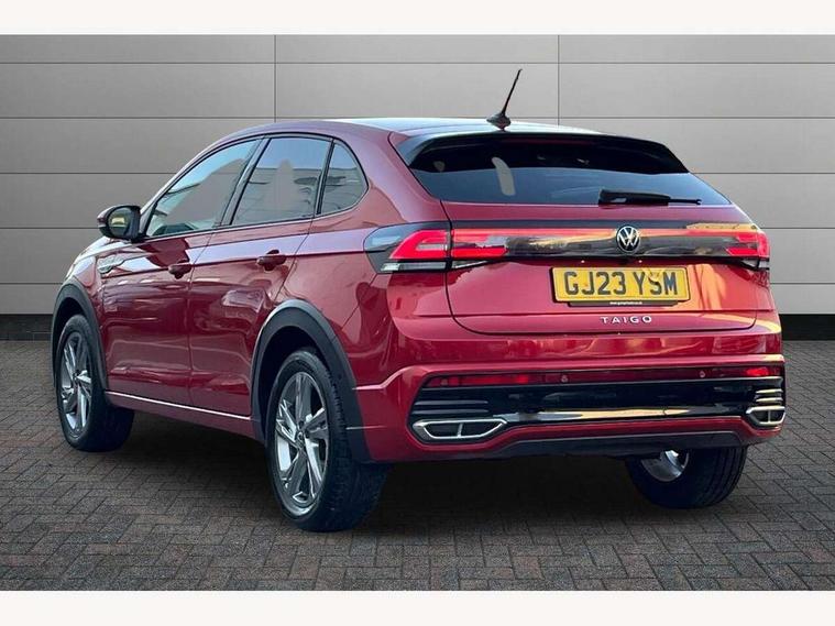 Adaptive cruise control, App-Connect including App-Connect Wireless, Digital cockpit pro - 10.25" high resolution TFT dash display screen with customizable menus and information, Driver alert system, Driving profile selection, e-Call (emergency call), Power Steering, Travel assist including emergency assist, Washer fluid level indicator, Wireless Charging including Bluetooth, Start-stop system with battery regeneration (recuperation - energy recovery during braking), XDS electronic differential lock for improved traction and handling, Digital radio reception (DAB+), Diversity antenna for FM reception, WeConnect plus, Ambient lighting with logo projection, Aspherical driver's exterior mirror, Auto headlights, Body coloured bumpers, Body coloured exterior mirror housings and door handles, Bumpers in R-Line style, Electric windows, External USB type C socket and charging sockets, Front fog lamps with cornering function, Front scuff plates with R-Line logo, Headlight range control, LED headlamps, LED rear combination lamp, LED third brake light, Left convex exterior mirror, Power folding adjustable/heated exterior mirrors and front passenger exterior mirror lowering function, Rear fog light on one side, reversing light on both sides, Rear side wing doors, Rear wash/wipe with intermittent wipe setting, 12V socket in centre console, 2 front reading lights, 3 rear head restraints, 3 seat bench in 2nd row, Air care climatronic air conditoning system with active combination filter and 2-zone temperature control, Black carpets, Black roof lining, Child seat anchor for child seat system i-Size, 2x top tether and child seat anchor in front on front passenger side, Chrome bezel for instrument cluster, vents, door handles + gear shift, Driver and front passenger seat height adjustment, Front + rear carpet mats, Front centre armrest, Front footwell illumination, Front sports comfort seats, Height and reach adjustable steering wheel, Interior ambient lighting and surround lighting, Karoso artvelours cloth upholstery, Leather trimmed gear knob, Leather wrapped multifunction steering wheel, Luggage compartment floor, Luggage compartment light, Lumbar support for driver's and front passengers seat, Seat covers in grey + titanium black, Single front passenger seat, Split folding backrest with centre armrest and unsplit rear seat bench, Stainless steel pedals, Storage compartment under front seats, Sun visors with illuminated vanity mirrors, Chrome Package - Taigo, Drivers assistance pack - Taigo, Light and Sight pack including High beam assist - Taigo, 2 x 3-point seatbelts/outer rear seats with ECE label, 3-point seat belts in front with pretensioner and height adjustment, 3-point seatbelt for centre rear seat, Driver and front passenger airbags with front passenger airbag de-activation, front side and curtain airbags, Driver and front passenger safety-optimised head restraints, Electronic stability control, Extended and predictive pedestrian/ cyclist protection, Front and rear disc brakes, Front curtain and side airbags with center airbag, Hill start assist, Manual rear child locks, Single tone horn, Tyre pressure loss indicator, Anti-theft alarm system with interior monitoring, backup horn, and towing protection, Anti-theft wheel bolts, Grey anodised matte decorative inserts in dash and front door panels, Low rolling resistance tyres,