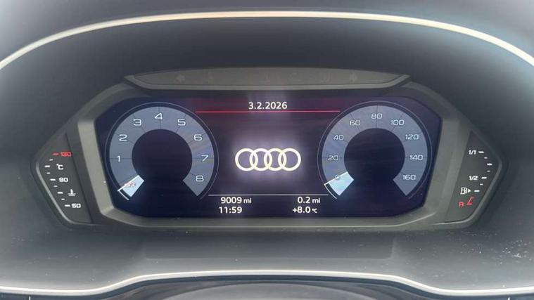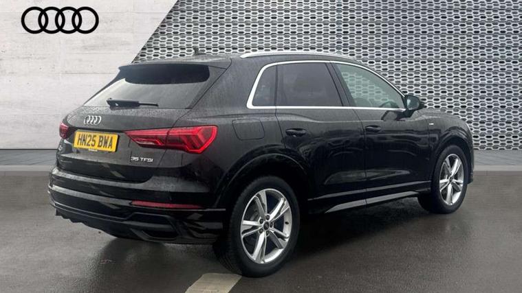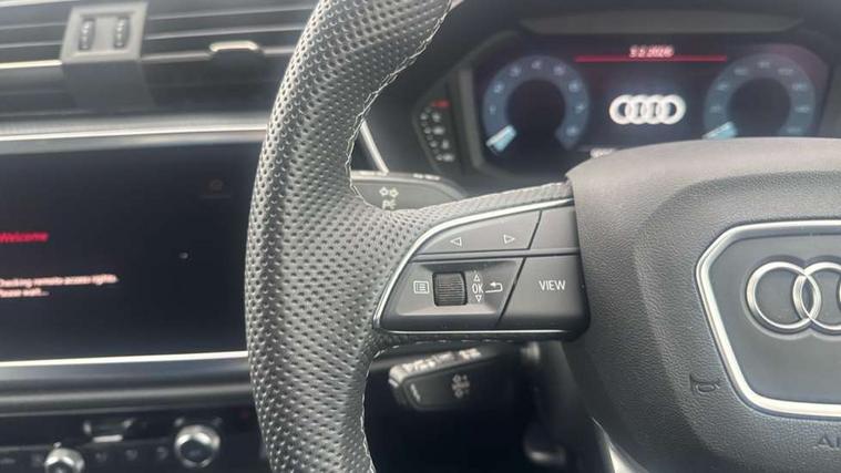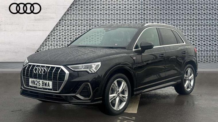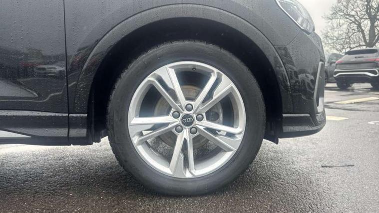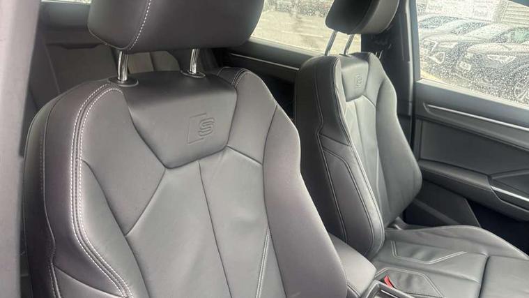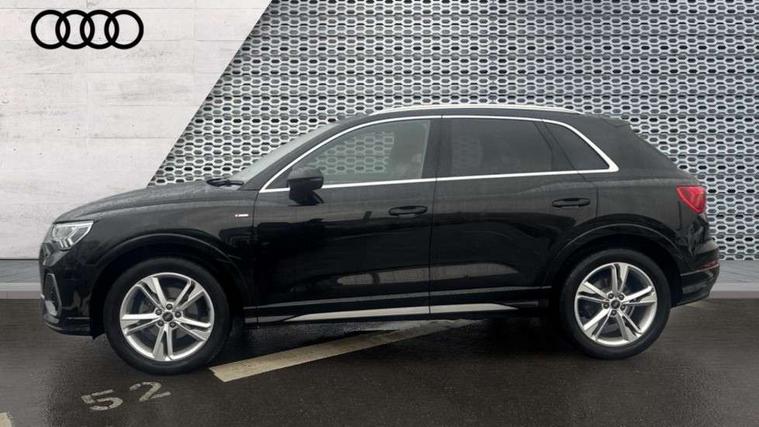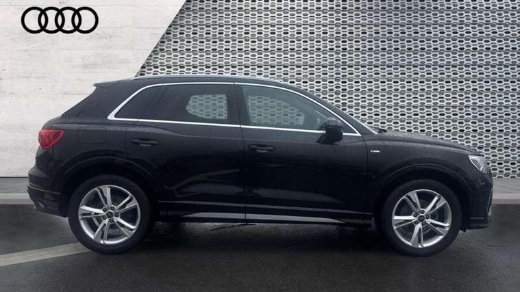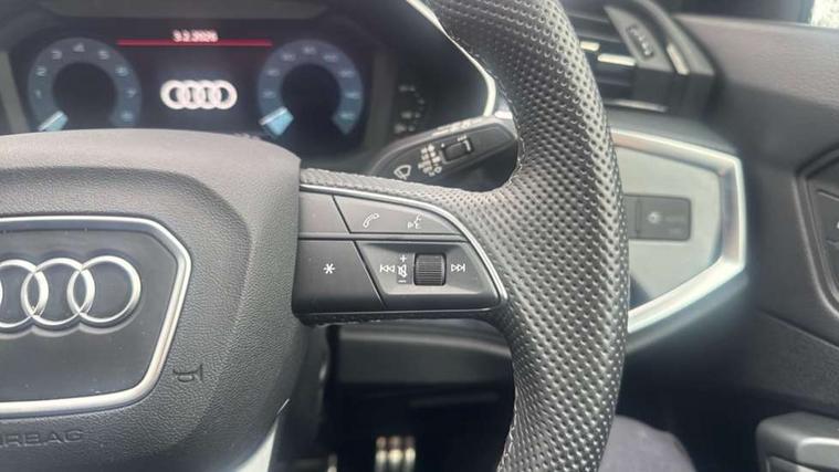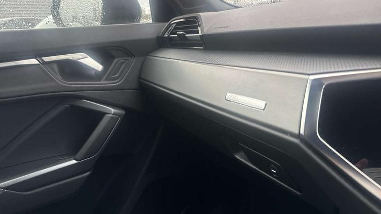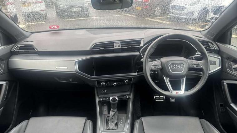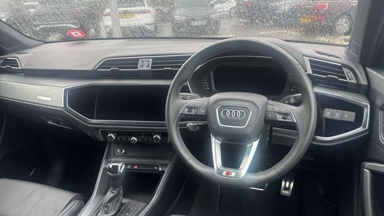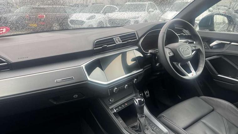 Amazon alexa Integration, Audi connect safety and service, Audi drive select, Audi lane departure warning, Audi Virtual Cockpit - 10.25" display, Bluetooth interface, Camera based traffic sign recognition, Distraction and Fatigue warning, Legal emergency call, MMI Navigation Plus with high resolution 10.1 inch touchscreen colour display, Power operated tailgate, Progressive steering, Service interval indicator, Smartphone interface includes wireless Apple carplay/Android Auto, Start stop system with recuperation, Voice control system with natural language interaction, Sports suspension, 2 USB-C ports with charge and data functions, 6 passive loudspeakers, DAB digital radio module, Acoustic windscreen, Aluminium roof rails, Aluminium window trim, Anthracite black radiator grille, Auto dimming door mirrors, Auto dimming frameless rear view mirror, Body colour front spoiler blade, Electrically folding, adjustable and heated door mirrors with integrated LED side indicators and kerb view function for passenger side, Front and rear electric windows, Front fog lights, Front side air inlets in matt platinum grey, Grille vertical bars in aluminium silver/Matt, High gloss black finish B and C pillars, LED Dynamic rear indicators, LED headlights with LED daytime running lights, LED rear lights, LED third brake light, Privacy glass dark tinted rear and rear-side windows (from B-pillar backwards), Rain and light sensors, Rear diffuser grille in grained matt black, Rear diffuser strip in matt anthracite black, Rear side wing doors, Rear wiper, S line badges on front wings, S line front and rear bumpers and side skirts in contrasting Manhattan grey paint finish, Side skirt insert in matt Platinium grey, Variable front intermittent wipers, 12V socket in rear centre console, 3 seat bench in 2nd row, 3 spoke leather multifunction steering wheel features S badging and grips in perforated leather with contrast stitching, 40:20:40 folding with manual adjustment for 60:40 forwards/backwards position and backrest angle, Adjustable rear seat bench/backrest with centre armrest and cupholder, Black cloth headlining, Dual zone electronic climate control, Electric lumbar support, Front and rear black floor mats with contrast stitching in rock grey, Front and rear headrests, Front centre armrest, Height and reach adjustable steering wheel, Illuminated door sill trims with S logo, ISOFIX child seat mounting for front passenger with airbag deactivation and outer rear seat including top tether attachment point for outer rear seats, Manual front seats with height adjustment, Perforated leather gearknob, Single front passenger seat, Stainless steel luggage compartment sill finisher, Stainless steel pedals, Twin leather upholstery with front sport seats + S embossing, Non smoking pack - Q3, 3x3 point rear seatbelts, 6 airbags - Driver, front passenger, curtain and side windows, Audi pre-sense front with pedestrain and cyclist recognition, Electrically operated child locks on rear doors, Electromechanical parking brake, Electronic stabilisation control including ABS, ASR and EDL, Front seatbelt reminder, Hill descent control, Hill hold assist, Pre sense basic, Seatbelt monitoring, Tyre pressure warning, Warning triangle and first aid kit, Anti theft wheel bolts, Immobiliser, Remote central locking, Thatcham approved category 1 anti theft alarm, Aluminium look interior elements, Dark matt brushed aluminium inlay, Detail dashboard around MMI touch colour display in glass look, black with surround in aluminium look, Leatherette door armrest,