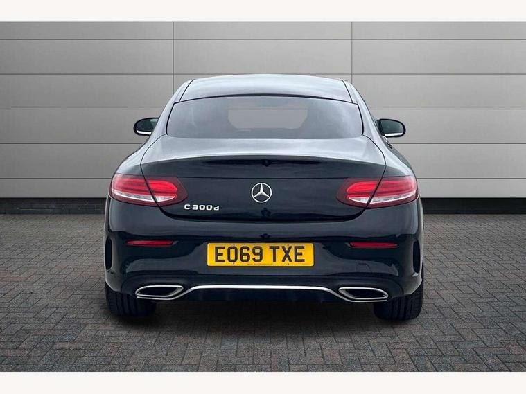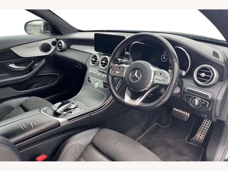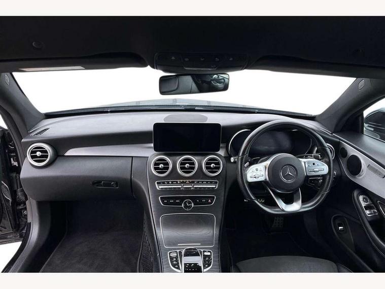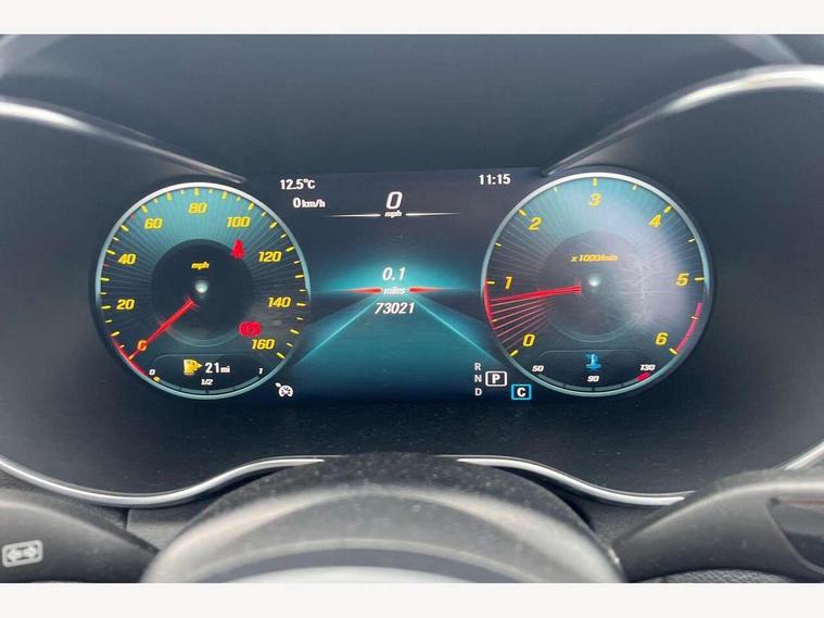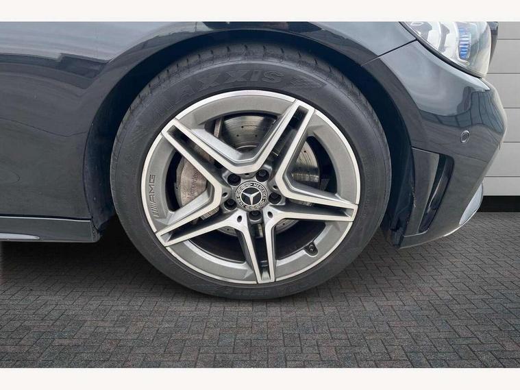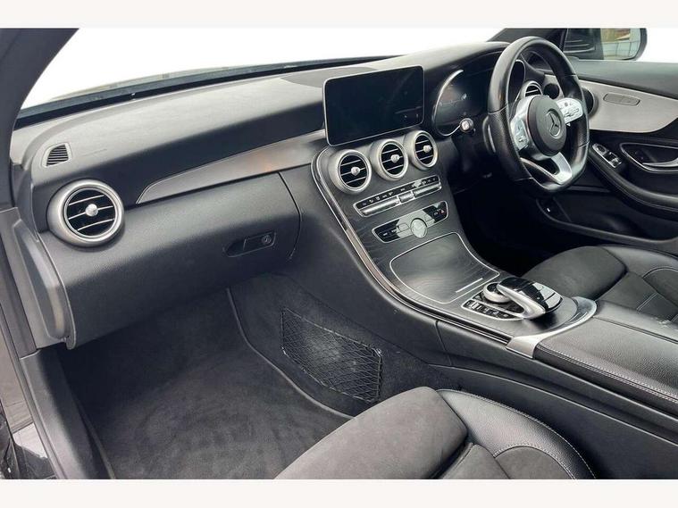 12.3" Active TFT crystal driver's instrument display, Active park assist with parktronic system, Attention assist, Bluetooth interface for hands free telephone, Collision prevention assist plus, Comand Online HDD Nav with media interface, radio/CD/DVD/MP3, 10.25 screen, linguatronic voice control, DYNAMIC SELECT with a choice of driving modes (ECO, Comfort, Sport, Sport+ and Individual), ECO start/stop function, Mercedes me connect including emergency call system, accident recovery, breakdown management and maintenance, Multi function trip computer, Outside temperature gauge, Pre-wiring for SD navigation system, Remote boot release, Reversing camera, Service indicator (ASSYST), Smartphone integration with Apple CarPlay and Android auto, Speed sensitive steering, Sports direct steer speed sensitive steering, Status display for rear seat belts in instrument cluster, Wireless charging, 66l fuel tank with increased capacity, 9G Tronic plus 9 speed automatic, Diesel particulate filter, Audio 20 with integrated media interface and bluetooth handsfree function, DAB digital radio tuner, Mid-range sound system, SD card slot, Two USB ports and one SD Card slot in centre console, Adaptive brake lights, AMG front, rear apron and side skirts, Body coloured bumpers, Body coloured door mirrors, Chrome grille surround, Chrome pins diamond radiator grille with integrated stars, Door sill plates with "Mercedes-Benz" lettering, Electric windows with one touch opening/closing and obstruction sensors, Exterior mirrors heated and electronically adjustable, Full LED tail lamps, Green tinted glass, LED daytime running lights, LED Indicators, LED third brake light, Multi beam LED headlights, Privacy glass (rear side windows and rear screen), Radio aerial integrated into rear window, Rain sensor windscreen wipers, Side windows surround in polished aluminium, Visible twin pipe exhaust trim integrated into rear bumper, 2 cupholders in front centre console, 2 rear head restraints, 3 spoke flat bottom multi-function leather AMG steering wheel, 40:20:40 split folding rear seats, Artico man-made leather upper dashboard and beltlines with contrast stitching, Auto Mercedes-Benz child seat recognition sensor, Black floor mats with AMG lettering, Electrical height and back adjustment front seat, Front centre armrest with storage compartment, Front LED reading lights, Heated front seats, Illuminated glove compartment stowage, Interior lighting - 64 colour Ambient lighting, Sports pedals with stainless steel surfaces and rubber studs, Sports seats with integrated headrests, Steering wheel audio controls, Steering wheel gearshift paddles, Sunvisors with illuminated vanity mirrors, THERMATIC 2 zone automatic climate control, Interior lighting package - C Class, Mirror package - C Class, Seat comfort pack - C Class, Stowage space pack - C Class, 2 rear seatbelts, 3 point automatic seatbelts, Active bonnet, Adaptive brake system with hold function, hill start assist and brake drying function, Anti-lock braking system (ABS), Automatic seatbelt pretensioner for driver and front passenger, Black seat belts, Brake calipers with Mercedes-Benz lettering + perforated brake discs, Dual stage airbags - driver and front passenger, front sidebags, driver kneebag, pelvis bag and windowbags for driver, front and rear passengers, Electronic parking brake, Electronic Stability Programme (ESP), Front seatbelt pretensioners, ISOFIX child seat attachment points with top tether in rear, Tyre pressure monitoring system, Warning triangle and first aid kit, Anti-theft alarm system/interior protection with tow-away protection and interior monitoring systems, Central locking with interior switch, automatic locking and crash sensor with emergency opening function, Chrome surround electric key, Immobiliser, Black ash wood with aluminium door trims and analogue clock, TIREFIT with tyre inflation compressor,