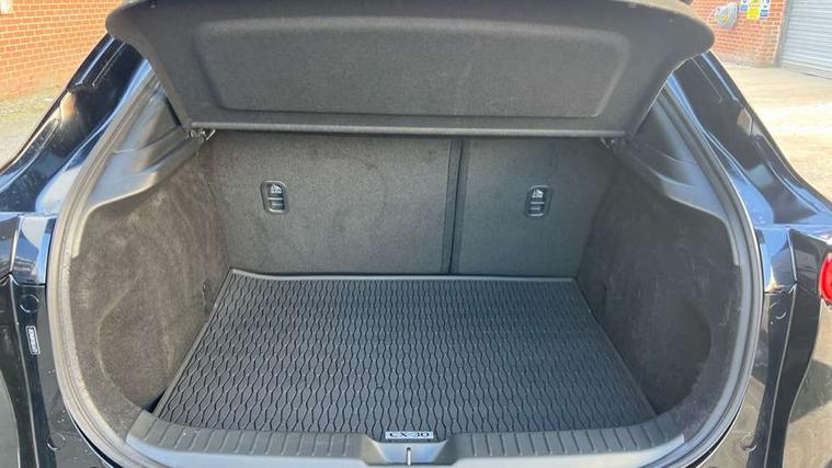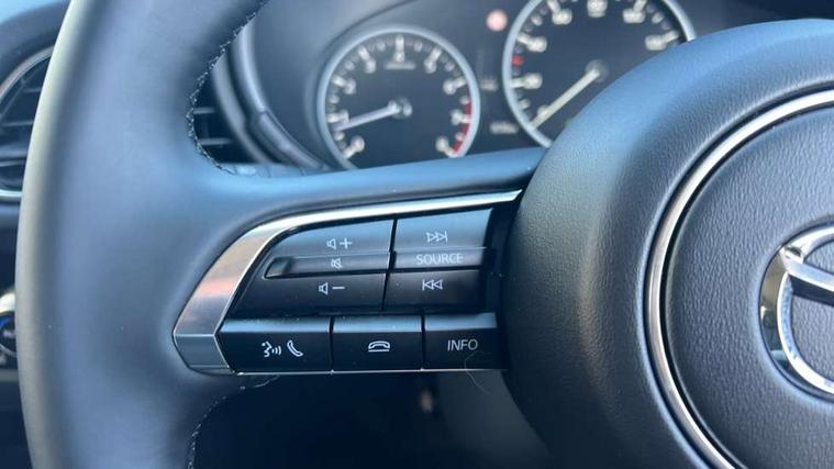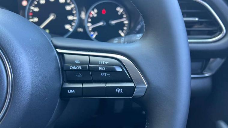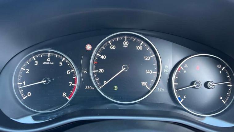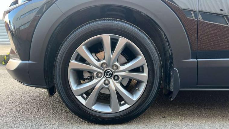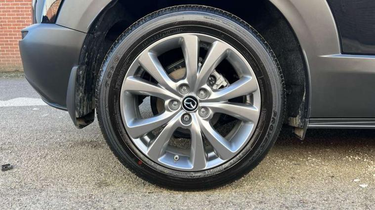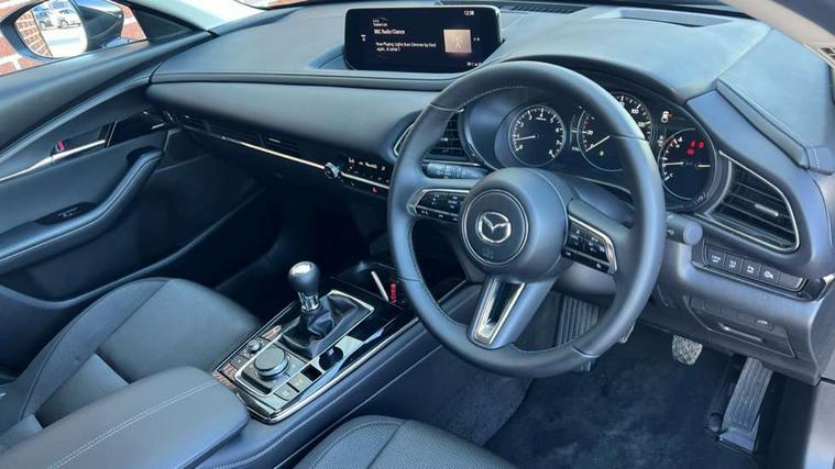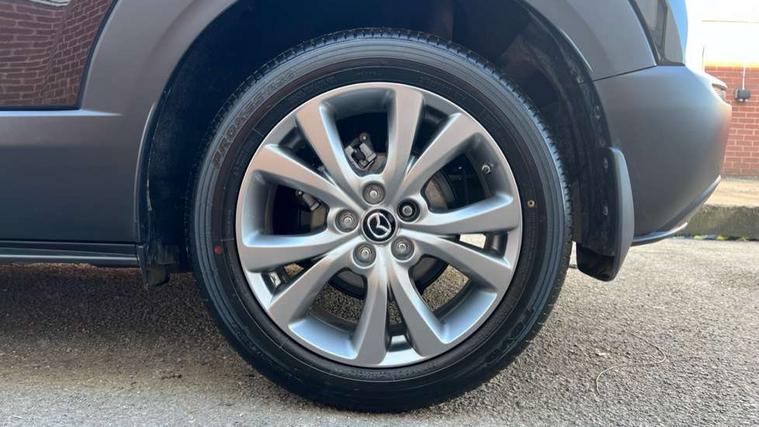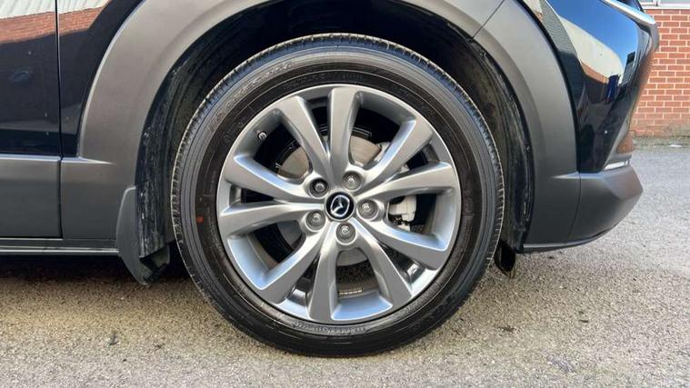 10.25" display with Mazda Connect infotainment, 7" TFT Colour driver instrument panel display, Adaptive cruise control (Mazda radar cruise control), Blind spot monitoring with rear cross traffic alert, Driver attention alert system, E-call with GPS, Emergency stop signalling system, Engine start/stop button, Front and rear parking sensors, Integrated Alexa Voice Assistant, Integrated bluetooth, Integrated Mazda navigation system, Intelligent speed assist, Lane keep assist system (LAS) with Lane departure warning system (LDWS), Mazda connected services, PAS, Power lift gate, Qi wireless charging, Reversing camera, Service indicator, Tailgate, Traffic sign recognition, Trip computer, Windscreen projected colour active driving display (HUD), Wireless Apple CarPlay/Android Auto, Cylinder Deactivation, i-stop, 2 x USB Type-C inputs, AM/FM and DAB radio, Bose surround sound system with 12 Speaker, Bose center point, Bass match and audio pilot technology, Multimedia Commander including separate volume dial, Steering wheel mounted audio/bluetooth controls, Adaptive LED Headlights, Auto dimming driver's door mirror, B-pillar and C-pillar garnishes in gloss black finish, Body coloured, electrically adjustable, heated auto power folding door mirrors with integrated indicators, Chrome finish signature wing in front grille, Coming/leaving home lighting function, Dual bright finish exhaust tip trim, Dusk sensing headlights, Electric front/rear windows with one touch auto up/down, Frameless auto dimming interior rear view mirror, Front kodo turn signal, Gloss black front grille, Gloss black rear roof spoiler, High beam assist, LED auto headlight levelling, LED signature daytime running lights, Privacy glass (rear side windows and rear screen), Rain sensing front wipers with adjustable speed and intermittent wipe, Rear fog lights, Rear side wing doors, Rear wiper, Signature LED rear combination lights, Third brake light, 12V power outlet in centre console, 3 seat bench in 2nd row, 60/40 split fold down rear seats, Bright interior trim accents with steering wheel centre bezel, surround of engine start / stop button and glove box handle, Cloth upholstery with interior accents, Dark cloth door panel inserts, Dashboard, door cards and front centre armrest in black cloth, Driver and front passenger visors with covered vanity mirror and driver ticket holder, Driver seat manual slide, recline, height and seat tilt adjust, Driver, front passenger and two rear door storage, Driver, Front passenger and two rear grab handles with coathooks, Dual zone climate control air conditioning with rear air vents, Folding rear centre armrest with two cup holders, Front and rear (x3) head restraints, Front and rear LED lighting, Front armrest, Front centre storage with two cupholders with lid, Front passenger seatback pockets, Front passengers seat manual slide, recline and height adjustment, Gear shift indicator, Glovebox illumination, Heated front seats with 3 stage setting, ISOFIX child seat anchorage points attached on outer rear seats, Leather wrapped gear shift knob, Leather wrapped steering wheel with telescopic and tilt adjustment, LED luggage compartment lighting, Light roof headlining and pillars, Roof mounted sunglasses holder, Single front passenger seat, 3 point ELR front seat belts x2 with pretensioners, 3 point ELR rear seat belts, Anti-lock braking system (ABS), Drivers knee airbag, DSC - Dynamic Stability Control, Electronic parking brake with auto disengage function and auto hold function, Front and rear curtain airbags, Front dual stage driver and single stage front passenger airbags, Front passenger airbag cut-off switch, Front side airbags, Front smart city brake support, G-Vectoring control plus, Hill launch assist, Manual child lock in rear doors, Mild Hybrid system with regenerative braking, Seatbelt reminder for driver/front passenger and rear seats, Traction control system (TCS), Tyre pressure monitoring system (TPMS), Remote central locking with deadlocking and automatic door lock when driving, Smart keyless entry, Thatcham accredited alarm and immobiliser, 18" Silver metallic alloy wheels, Emergency tyre repair kit,