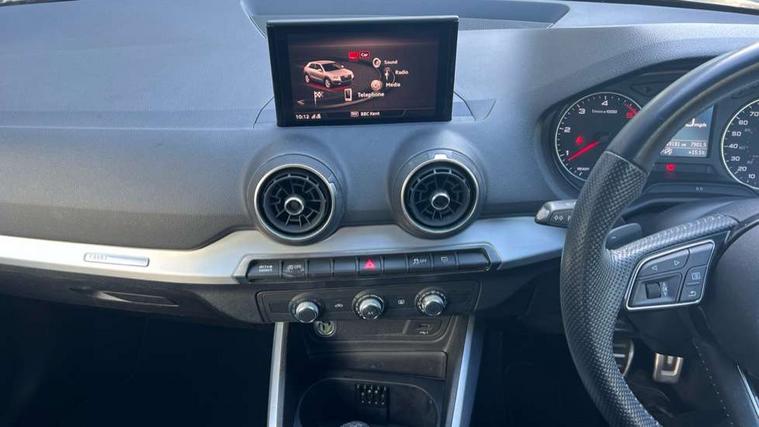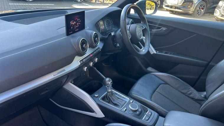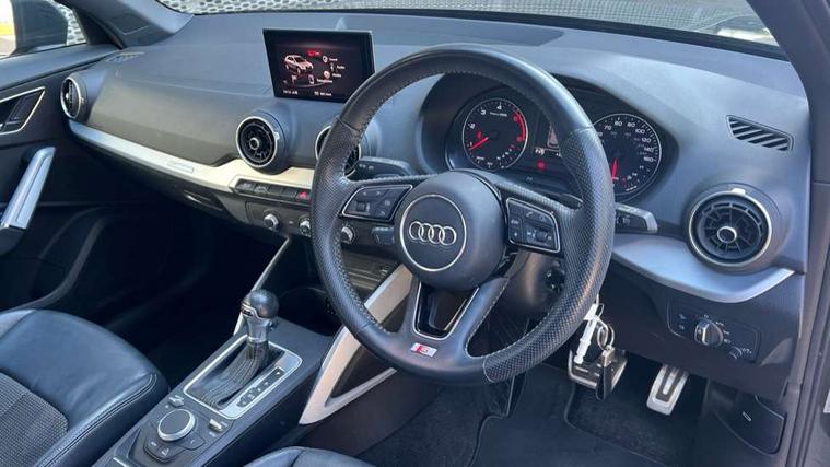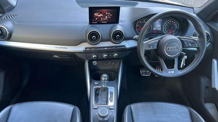 Audi drive select, Audi smartphone interface, Automatic start/stop system with recuperation, Bluetooth interface includes bluetooth audio streaming, Cruise control, MMI - Multi Media Interface control system, MMI SD card integrated nav with 3D map display, dynamic route guidance with TMC, MMI search, natural voice recognition and myAudi special destinations, Power operated tailgate, Progressive steering, Service interval indicator, Dynamic suspension, 2 x SDXC card reader, Audi music interface - apple iPod, apple iPhone, USB storage media, compatible MP3 players, 2 x USB charging points and 1 x Aux-in, CD Drive, DAB digital radio and AM/FM radio, MMI radio plus with 7" colour MMI screen and MMI controller, Black window trims, Bumper in full body colour paint finish, Chrome exhaust tailpipe, Electrically adjustable and heated door mirrors with integrated LED side indicators, Front and rear electric windows, Front underbody guard and rear diffuser trim in selenite silver, Front windscreen with grey tinted sunband, Headlight washers, Interior mirror, LED headlights with LED rear lights + dynamic rear indicators, LED indicator lights, Manual folding door mirrors, Rain and light sensors, Rear wiper, S Line badges on the front wings, S Line body styling - front and rear bumpers, side skirts, radiator grille, rear diffuser insert and front air intakes, 60/40 split folding rear seat bench, Black cloth headlining, Electronically operated child locks, Floor mats with contrast stitching, Front centre armrest, Front headrests, Front sport seats with S embossed logo, Height/reach adjust steering wheel, Illuminated door sill trims with S logo, ISOFIX child seat mounting for front passenger with airbag deactivation and outer rear seat including top tether attachment point for outer rear seats, Manual seat adjustment including seat height adjustment for front seats, Stainless steel pedals, Storage compartments - Glovebox, cupholder compartment in centre console, storage compartment in rear centre console, front and rear door pockets, Three rear headrests, Non smoking pack - Q2, 3x3 point rear seatbelts, 6 airbags - Front, curtain and front side airbags, Electromechanical parking brake, Electronic stabilisation control including ABS, ASR and EDL, Extended and proactive pedestrian protection, Hill hold assist, Multi collision brake assist, Pre-sense front with pedestrian recognition, Seatbelt monitoring, Tyre pressure warning light, Warning triangle and first aid kit, Anti theft alarm, Anti theft wheel bolts, Central locking system with remote control key, Aluminium interior element,