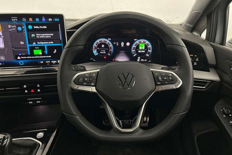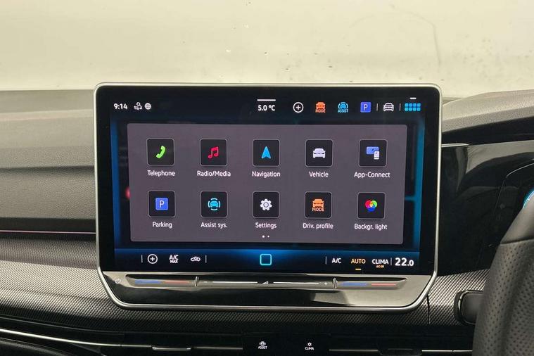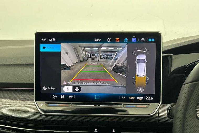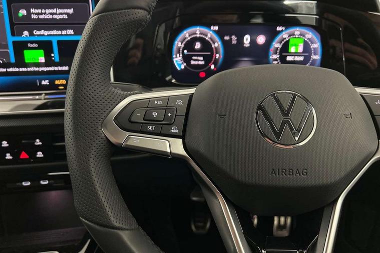 Activated carbon canister, Adaptive cruise control (ACC), Advanced driver attention and drowsiness monitor, Dynamic road sign display, Dynamic steering, E-Sim card for online connectivity, eCall emergency call system, Multi-color Digital cockpit pro, selection of different info profile possible, Multifunction front facing camera for distance control, Navigation system, Oncoming vehicle braking when turning including swerve support, Preparation for light assist system, Speed limiter, Speedo, rev counter, electronic odometer, trip, service interval display, exterior temperature and fuel gauge, Traffic jam assist, Voice enhancer and voice control, Warning signal and warning light for front and rear seatbelts not fastened, We connect plus preparation, We connect preparation, Wireless app connect, Petrol Particulate Filter, Start-stop system with battery regeneration (recuperation - energy recovery during braking), XDS electronic differential lock for improved traction and handling, 2 USB C ports in front, 2 USB charging sockets on the centre console in the rear charging capacity upto 45W, Comfort telephony + wireless charging, without wireless aerial connection, Digital radio reception (DAB), Diversity antenna for FM reception, Gaming platform via car app, Infotainment system with 12.9" display, Mobile phone interface with inductive charging feature, 3rd brake light, Auto headlights, Automatic headlamp activation with Coming home and Leaving home feature, Body colored bumpers in R-Line style, Body colour door handles, Exterior ambient lighting with illuminated door handles, Exterior mirrors convex on the left and aspherical on the right, Front and rear electric windows, Heat insulating windshield made of laminated glass, LED daytime running lights, Rear exhaust tailpipe, Rear fog light on one side and reversing lights on both sides, Rear side wing doors, Rear windscreen washer and wiper with interval delay, Remote electrically foldable door mirrors, puddle lights and reverse activated passenger's door mirror, Welcome light with surround lighting, 12V socket in front centre console, 12V socket in luggage compartment, 3 rear head restraints, 3 seat bench in 2nd row, Ambient lighting with 30 colour including LED light unit in front footwell with selectable light colour, Brushed stainless steel pedals, Carpet mats, front and rear, Chrome plated radiator grille inserts, air vent surrounds and light switch surrounds, Front centre armrest, Integrated front head restraints, ISOFIX anchors for child seats on outer rear bench seats and on front passanger seat compatible for i-Size, Leather gearshift handle, Luggage compartment lighting, Premium sports seats in front, Rear cupholder and loadthough, Single front passenger seat, Soul black instrument panel, Split folding backrest with centre armrest and unsplit rear seat bench, Storm grey roof lining, Sun visors with illuminated vanity mirrors, 3 point height adj front seatbelts + pretensioners, 3 rear three point seatbelts, ABS, Autonomous emergency braking front assist with pedestrian and cyclist monitoring, Child locks on rear doors, Driver and front passenger airbag with front passenger airbag deactivation, Electronic parking brake with auto hold, ESC (Electronic Stability Control), Extended pedestrian protection measures, Rear disc brakes, Two tone horn, Tyre pressure loss indicator, Volkswagen roadside assistance, Anti theft wheel bolts, Preparation for alcohol interlock, Decorative inserts carbon grey for dashboard and front door trim panels,