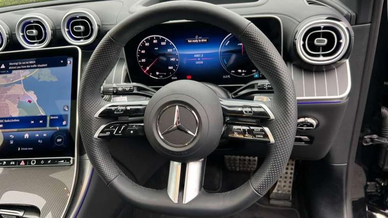11.9" high resolution multimedia colour display, 12.3" Digital individually configurable instrument display, Acoustic presence indicator, Active lane keeping assist, Attention assist, Blind spot assist, Bluetooth interface for hands free telephone, Collision prevention assist plus, Direct steer speed sensitive steering, DYNAMIC SELECT with a choice of driving modes (ECO, Comfort, Sport and Individual), eCall emergency call system, ECO start/stop function, Fingerprint scanner, Fluorescent jacket for driver, Hard disc navigation, Head up Display, Instrument display in miles with English lettering, MBUX augmented reality for navigation, MBUX navigation premium, MBUX voice control activated by keywords "Hey Mercedes", Mercedes me connect, Multi function trip computer, Outside temperature display, Remote and charging services plus, Remote boot release, Road sign recognition system, Service indicator (ASSYST), Smartphone integration, Status display for rear seat belts in instrument cluster, Tailgate, Traffic sign assist, Wireless charging system for mobile devices in the front, 1 x type 2 and 3 phase 4m straight wallbox cable, 49 litre fuel tank, 4MATIC permanent four wheel drive, 7.4 kW monophase on board charger, 9G TRONIC plus automatic transmission, Alternating current charging system (AC charging), DC Charging system, Petrol Particulate Filter (PPF), Residual engine heat utilisation, Self levelling suspension, Burmester 3D surround sound system, DAB digital radio tuner, MBUX extended functions, Pre installation for Mercedes Benz Link, Sound personalisation, Adaptive brake lights, Adaptive high beam assist plus, Aluminium look running boards with rubber studs, AMG bodystyling front apron, rear apron and side skirts, AMG Line exterior, Auto headlights, Black roof rails, Body colour bumpers, Body colour door mirrors, Digital light LED headlights, Electric panoramic glass sunroof, Electrically adjustable door mirrors, EQ Hybrid badging on front wings, Front and rear electric windows, Headlight washers, Heat and noise insulating acoustic glass, Heat insulating dark tinted glass, Heated rear window, High level LED brake light, Integrated LED daytime running lights, LED indicator lights, LED rear fog lights, LED tail lamp, Motor way mode function and locator lighting, Radiator grille with Mercedes Benz pattern and integreated Mercedes star and louvre in dark grey matt with chrome inlay and black frame, Rain sensor windscreen wipers, Range adjustable headlights, Rear side wing doors, Rear wiper, Transparent Bonnet, Two chrome plated tailpipe trim elements, Variable front intermittent wipers, Welcome and follow-me home light functionality, Wheel arch liners in the vehicle colour, 3 seat bench in 2nd row, 40:20:40 split folding rear seats, Ambient lighting premium with projection of brand logo, AMG floor mats, AMG line interior, Artico man-made leather upholstery, Audio and onboard settings control on multifunction steering wheel, Automatic child seat recognition sensor, Black fabric roof lining, Comfort seats, Double cup holder in centre console, Easy-pack removable load compartment cover, Electrically height/reach adjustable steering column, Front centre armrest with stowage compartment, Front head restraints, Galvanised steering wheel gearshift paddles, Heated front seats, Heated steering wheel, Illuminated door sill panels with Mercedes Benz lettering, Illuminated glove compartment, Instrument panel and beltlines in ARTICO manmade leather in nappa look, Multicontour and climatised front seats, Multifunction sports steering wheel in nappa leather, Partition net, Rear centre headrest, Rear head restraints, Rear top tether child seat ISOFIX attachment, Single front passenger seat, Sports pedals with stainless steel surfaces and rubber studs, Sun visors, THERMATIC automatic climate control, Anti theft protection package - GLC, Boot comfort package - GLC, Easy tailgate pack - GLC, Exterior chrome package - GLC, Interior chrome package - GLC, Interior lighting pack - GLC, Keyless-Go comfort package - GLC, Memory pack - GLC, Mirror pack - GLC, Night package - GLC Urban Edition, Parking package with 360 degree camera - GLC, Stowage space package - GLC 300e/300de, USB Plus Pack - GLC, 3 rear 3 point seatbelts, Anti-lock braking system (ABS), ASR traction control, Automatic front passenger airbag deactivation, Black seat belts, Brake calipers with Mercedes-Benz lettering + perforated brake discs, Child proof door locks, Dual-stage airbags - driver and front passenger, driver knee bag and window bags for driver, front passenger and rear passengers, Electronic parking brake, Electronic stability programme (ESP) with curve dynamic assist and cross wind assist, Front and rear seatbelt reminder, Front passenger seat occupancy sensor, Front seatbelt pretensioners, Hill start assist, Tyre pressure monitoring system, Warning triangle and first aid kit, Automatic door locking, Guard 360 degree vehicle protection plus, Interior protection/immobiliser, Remote central locking, Black open pore aluminium lines wood trim with centre console in black fine structure, 20" AMG multi spoke light alloy wheels in painted black with high sheen finish, Summer tyres, TIREFIT with tyre inflation compressor,
