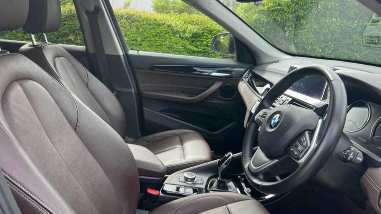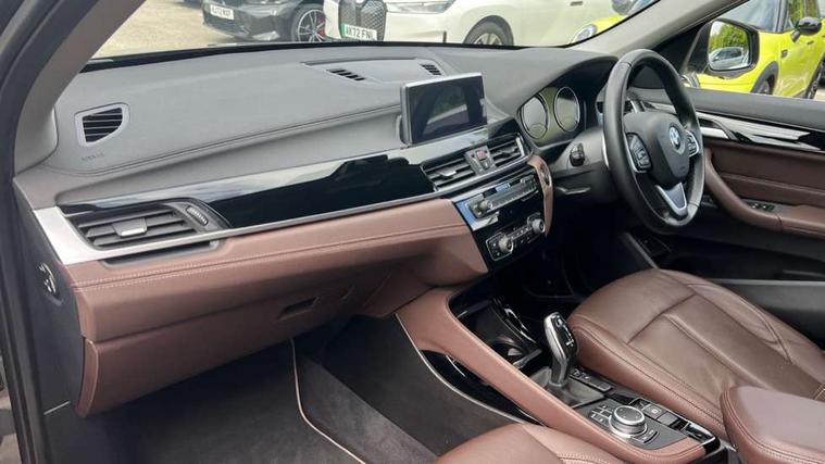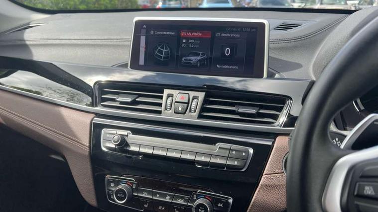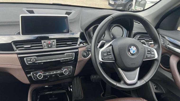 Active Guard incl speed limiting and lane departure functions with auto steering, and front collision warning with brake intervention, Ambient temperature display, Apple CarPlay, Arrow pointers, north up, direction of travel and perspective map displays, Attentiveness assist, Automatic tailgate opening, BMW ConnectedDrive, BMW Online services, BMW remote services, BMW Teleservices, Brake pad wear indicator in front and rear, Characteristic map controlled oil pump system, Cruise control with brake assist, Front axle single joint with specific axle kinematics to minimise drive influences on steering + provide increased rigidity agile driving behaviour, Front/rear park distance control (PDC), Instrument cluster with Black optic display featuring superimposed dials and 5.7" colour display, Instrument cluster with speedometer with miles per hour read out, tachometer and fuel gauge, Integrated hard drive with map data updates via USB interface, Lights on warning by audio warning signal when ignition is switched off, On board computer, Operation by iDrive with direct selection buttons and 8 programmable buttons, Optimum shift indicator, Outside temperature gauge, Park assist system, Personal Profile - automatic lock when driving away selectable, Real time traffic information, Rigidly mounted rear subframe - Multi link construction with separate spring / damper configuration and excellent driving characteristics, Service interval indicator, Servotronic PAS, Tyre puncture warning system, 12V compressor with integrated sealant injection bottle and hose, Aluminium lightweight construction including crankcase, Anti-roll bars, Balancer shaft, Diesel particulate filter, DOHC valvetrain with two upper camshafts, Double VANOS, Drive performance control with ECO PRO comfort + sport mode, Eight speed sport automatic transmission, Electronic differential lock control (EDLC), High precision injection, Incorrect fuelling protection, Performance Control, Standard suspension, Stop/start function, Twin tube gas filled shock absorbers with degressive characteristic curve, BMW professional radio includes amplifier power 100w, Two mide range speakers in door trims and two woofers as central bass speaker under front seats, DAB Digital radio, Adjustable headlights, Aero curtain, Automatically dimming rear view mirror, BMW Icon design LED daytime driving lights, Body colour bumpers, Body colour door handles, Body colour door mirrors, Direction indicator side lights integrated exterior mirrors, Dynamic brake lights, Electric windows - front and rear, with open/close fingertip control, anti-trap facility and comfort closing, Electrically adjustable door mirrors with aspheric on driver side, convex on passenger side with integrated indicators, Exclusive front door sill finishers with BMW designation, Exterior mirrors - electrically folding with anti-dazzle, Follow me home headlights, Front air guide finished in black silver, Front air inlets in matt black with silver finisher matt, Front and rear bumper system, Front bumper underbody protection in silver matt, Green tinted heat protection glazing glass, Headlight beam throw control, Heated door mirrors, Heated windscreen washer jets, High level third brake light, Kidney grille with 14 chrome matt aluminium fronted with black matt sides vertical bars, LED direction indicator lights in headlight eyebrow, LED front fog lights, Lightweight engineering, Model designation, Rain sensor including auto headlights activation, Rear bumper underbody protection in black silver with silver matt insert, Rear fog lights, Rear window aerial, Rear window wash/wipe, Reversing light in rear light cluster, Roof mouldings in matt black, Shark fin antenna, Sill cover matt black with matt silver insert, Twin chrome exhaust tailpipes x2, Two eye face design on light, Visible VIN plate, Welcome lighting, 12v power point in centre console, 2 cup holders in front, 3 rear headrests, 3 spoke sport leather steering wheel, 40:20:40 split folding rear bench seat, Black door sill finishers with BMW designation, Boot light, Centre armrest in 20 degree part rear seat backrest, Child seat ISOFIX attachment for two outer rear seats and front passenger seat with anchorage points, Conditioned based service, Dakota leather upholstery with perforation and contrast stitching, Driver and front passenger heated seats, Driver/front passenger seat backrest back with luggage net, Driver/passenger sunvisors with ticket holders, Dual zone automatic air conditioning, Four grab handles integrated in roof linings, Front and rear side armrests integrated into door trim, Front centre armrest/sliding cover, Front centre interior light over interior mirror and rear centre automatic interior light when door is opened/ignition switched off or via remote key, Front/rear adjustable head restraints, Illuminated glovebox, Leather gearknob/gaiter/handbrake grip, Luggage area underfloor compartment, Luggage compartment access via recessed handle below tailgate, Luggage compartment lighting, Luggage compartment loading edge with stainless steel insert, Manually adjustment steering wheel column, Multifunction steering wheel, Rear coded belt buckles, Single turbo charger, Standing free front adjustable armrest and fixed in different positions, Steering wheel gearshift paddles, Velour floor carpets, Extended lights pack - X1, Extended storage package - X1, ABS/EBD, Audio/visual collision warning system, Automatic Stability Control (ASC), Battery safety cut-off, BMW emergency call, Brake drying, Brake energy regeneration, Braking readiness, Collision mitigation braking system, Cornering brake control (CBC), Crash Sensor - activates hazard/interior lighting + unlocks doors, Driver/Front Passenger airbags, Driver/front passenger side airbags, Dynamic brake control, Dynamic stability control + (DSC+), Dynamic Traction Control - DTC, Electronic parking brake, Front and rear head airbags, Front passenger airbag deactivation, Front seatbelt for