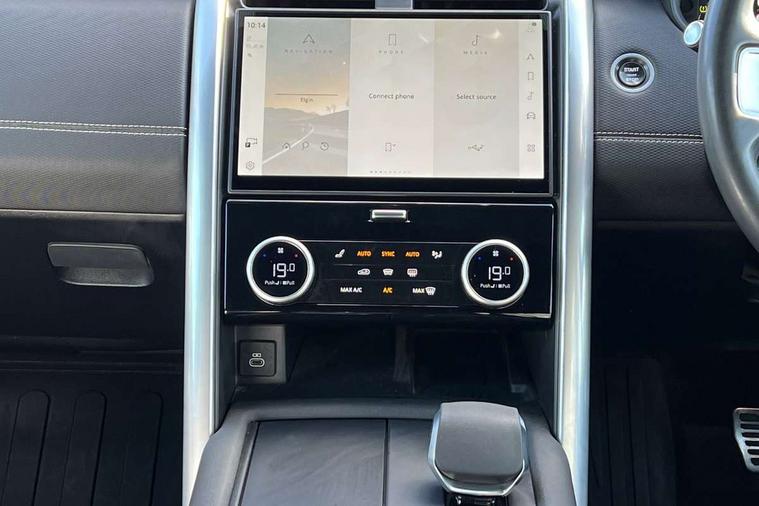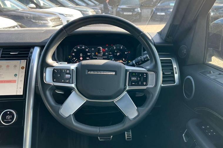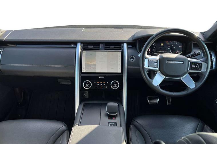 11.4" touchscreen, 3D surround camera, Adaptive cruise control, Blind spot assist, Driver condition monitor, Electric power assisted steering (EPAS), Front and rear parking aids, Interactive Driver display, Lane keep assist, Pivi pro connected, Power inner tailgate, Powered tailgate/boot lid, Rear collision monitor, Rear traffic monitor, Remote, Remote boot release, Speed proportional steering, Sport shift selector, Traffic sign recognition adaptive speed limiter, Trip computer, Tyre pressure monitor, Wade Sensing, Wireless device charging, 1 USB-C (power only), 1 USB-A & 1 USB-C (power & data) in Row 1, 2 USB-C in Row 2 and 2 USB-C in Row 3 all power only, Android Auto, Apple CarPlay, Digital Audio Broadcast radio-DAB, Dynamic volume control, Acoustic laminated windscreen, Animated directional indicators, Auto dimming rear view mirror, Auto High Beam Assist, Automatic headlight levelling, Black roof rails, Centre high mounted stop light, Core body style, Electric heated/power fold memory door mirrors with approach lights and auto dimming driver side, Electric windows with one touch open/close and anti-trap, Heated rear window, LED headlights with signature DRL, LED tail lights, Obscured row 2 and row 3 windows, Privacy glass, Puddle lights, Rain sensitive windscreen wipers, Rear fog lights, Rear wash wiper, Treadplates with metal inserts, Variable intermittent wiper, 18 way heated electric grained leather memory front seats with captains armrest + manual height adjust headrest + 4way power lumbar support, Central hinged twin lidded storage, Electric adjustable steering column, First and second row door bins, Fixed bulkhead behind row1, Footwell lights, Front passenger seat ISOFIX points, Glovebox storage, Grained Leather upholstery, High sided rubber mats, In-facia storage, Loadspace cover, Loadspace hooks, Loadspace light, Loadspace rubber mat, Lockable glove box, Lower centre console storage, Luggage tie downs in loadspace, Multi function steering wheel, Overhead lighting console, Premium Non-Leather steering wheel, Shopping bag hook, Third row storage, Twin front cupholders with cover, Two zone climate control, Under floor stowage, Online pack with data plan - Discovery, Customer configurable autolock, Electronic traction control, Emergency braking, Front side airbags, Power operated child locks, Seat belt reminder, Immobiliser, Intrusion sensor, Keyless entry system, Locking wheel nuts, Perimeter and volumetric alarm, Remote central locking, 12V power sockets in row1, row2 and load space, ABS and EBA, Adaptive dynamics, Brake pre-fill technology, CBC - (Cornering brake control), Dynamic stability control, Electronic air suspension, Electronic brake force distribution (EBD), Front axle open differential, Gradient acceleration control, Hill Descent Control, Hill launch assist, Particulate filter (DPF), Push button start, Roll stability control, Stop/start function, Torque vectoring brake, Trailer stability assist, All terrain tyres,