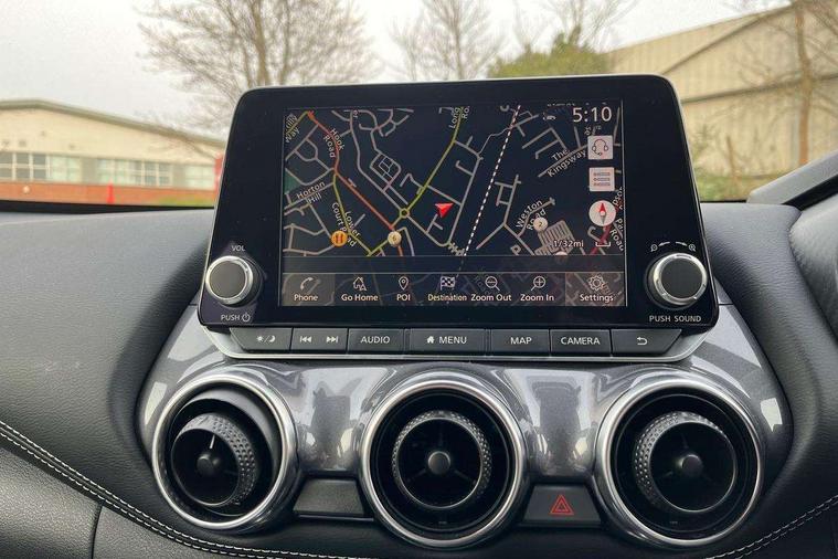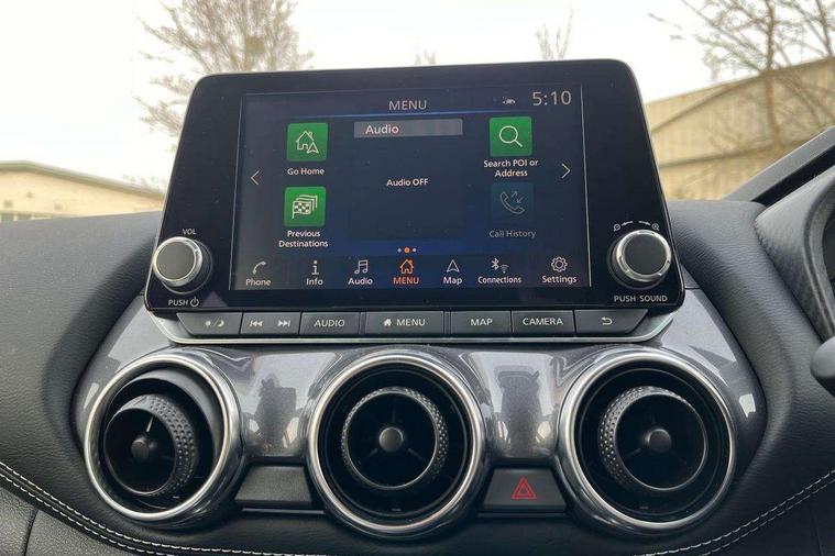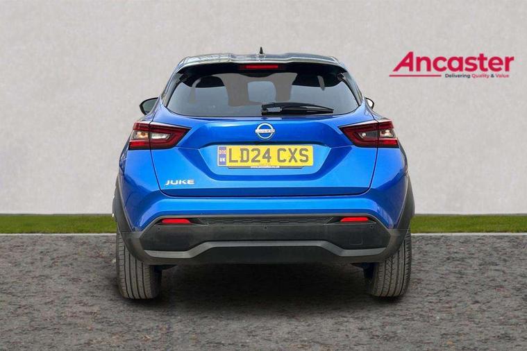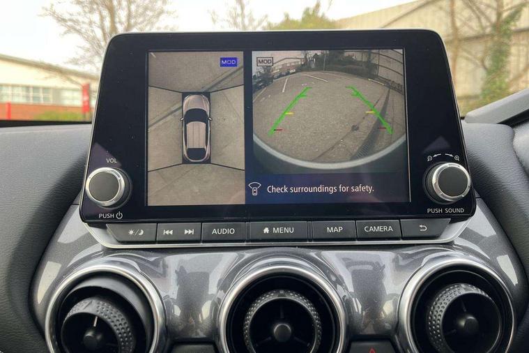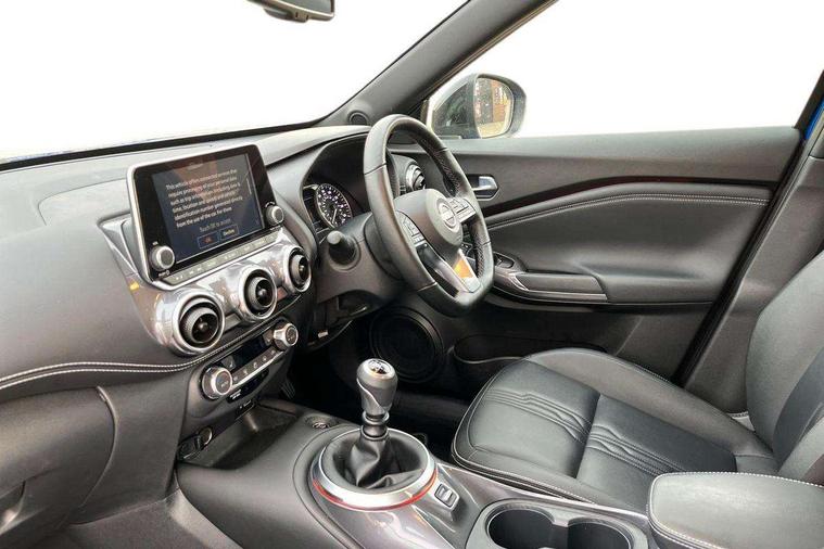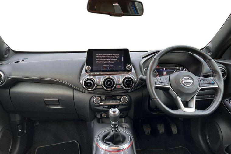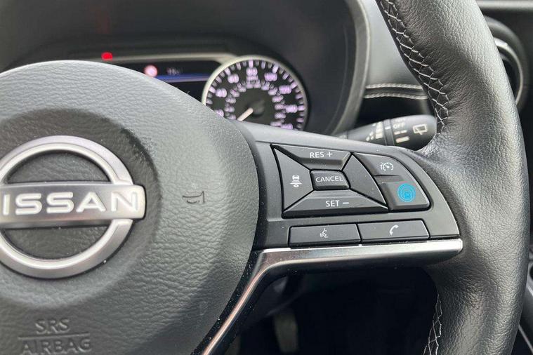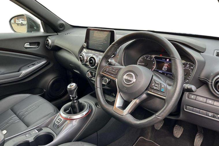 7" full colour TFT screen combimeter, Apple CarPlay and Google Android auto, Drive modes select (Eco, normal and sport), Emergency and breakdown call, Front parking sensor, Idle start/stop system, Intelligent lane intervention, Lane departure warning system, Nissan connect 8" touch screen entertainment system, Nissan connect nav with TomTom traffic, Nissan connect services and Wifi connection, Outside temperature sensor, Power Steering, Rear parking sensor, Traffic sign recognition, Trip computer, Voice recognition, Gasoline particulate filter, 10 Bose speakers 6 speakers and 2 headrest speakers for driver/passenger seats, Bluetooth system, USB, Aux-in and 12V socket, Bose personal sound stage control, DAB Digital radio, Rear console USB port, Auto dimming interior rear view mirror, Auto headlights, Automatic hazard signal with emergency stop signal, Body colour bumpers, Body colour door handles, Electrically adjustable door mirrors with integrated indicators, Follow me home headlights, Front and rear electric window with one touch driver window, Heated and auto folding door mirrors, High beam assist, LED 3rd brake light, LED daytime running lights, LED front fog lights, LED headlamps, LED rear fog lamp, LED rear lamps, Rain sensor windscreen wipers, Rear privacy glass, Rear side wing doors, Rear wiper, Roof spoiler, Shark fin roof antenna in Pearl Black, Thermaclear heated windscreen, Three blink turn signal, 3 height adjustable rear headrests, 3 seat bench in 2nd row, 60/40 split folding rear seat, Automatic climate control, Card holder on driver sunvisor, Door ambient lighting, Driver and passenger sliding and reclining seats, Driver seat back pocket, Driver side rear coat hanger, Driver/passenger sunvisors and vanity mirrors, Front and rear cabin lights, Front armrest, Front door pockets with bottle holders, Front head restraints, Front passenger isofix child seat anchorage point, Front/rear passenger grab handles, Gear console ambient circle lighting, Grey synthetic leather kneepad, Heated front seats, Height adjustable driver's seat, Height adjustable passenger seat, Internal chrome door handles, Leather gearshift knob, Leather steering wheel, Luggage board, Luggage space lighting, Monoform sporty seats, Multifunction steering wheel, Passenger seat back pocket, Rear door bottle holders, Single front passenger seat, Synthetic leather upholstery, Telescopic steering wheel adjustment, Two cupholders in front centre console, Two rear isofix child seat anchorage points with top tether, Welcome light and console tray ambient lighting, Advanced safety shield pack - Juke, ABS with EBD and brake assist, Active ride control, Active Trace Control, Driver and passenger airbags, Driver and passenger side airbags, Electric handbrake with auto hold function, Electronic Stability Programme (ESP), Front and rear curtain airbags, Height adjustable seatbelts, Hill start assist, Intelligent emergency braking with pedestrian and cyclist recognition, Rear door child safety locks, Seatbelt reminder for driver/front passenger and rear seats, Single tone horn, Three 3 point rear seatbelts, Traction control, Tyre pressure monitoring system, VDC Dynamic Vehicle Control, Ventilated rear brake discs, Alarm, Immobiliser, Intelligent key and start push button with walk away lock and approach unlock functions, Remote central locking,