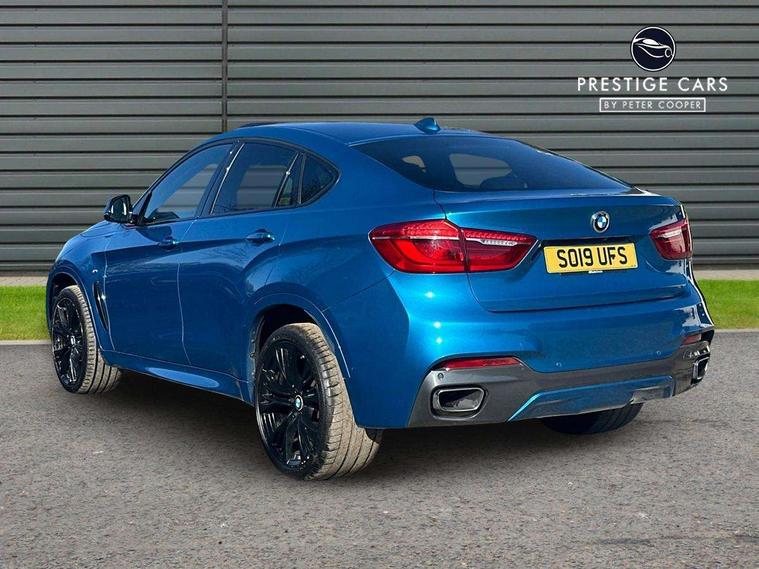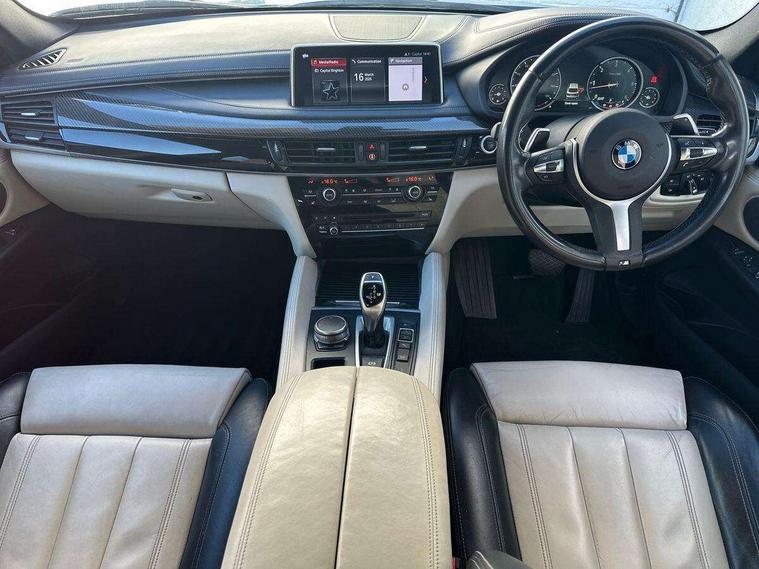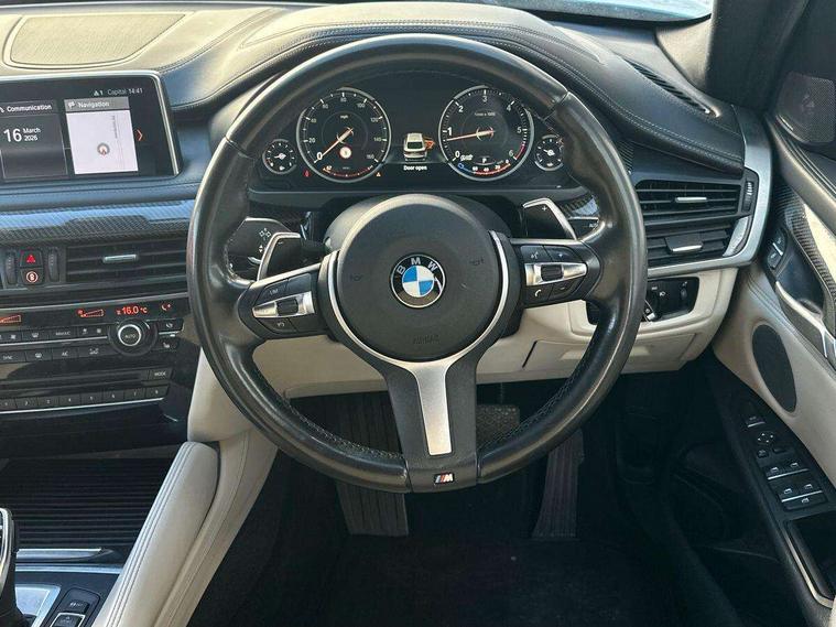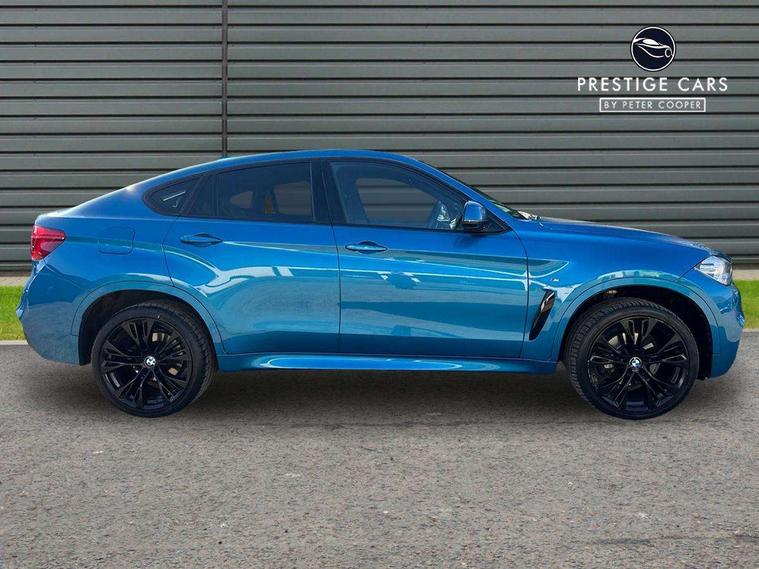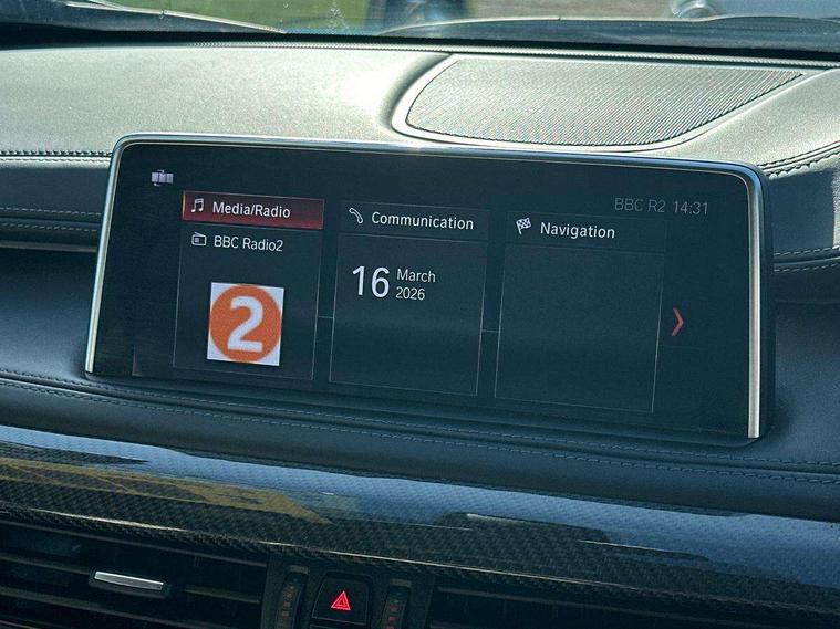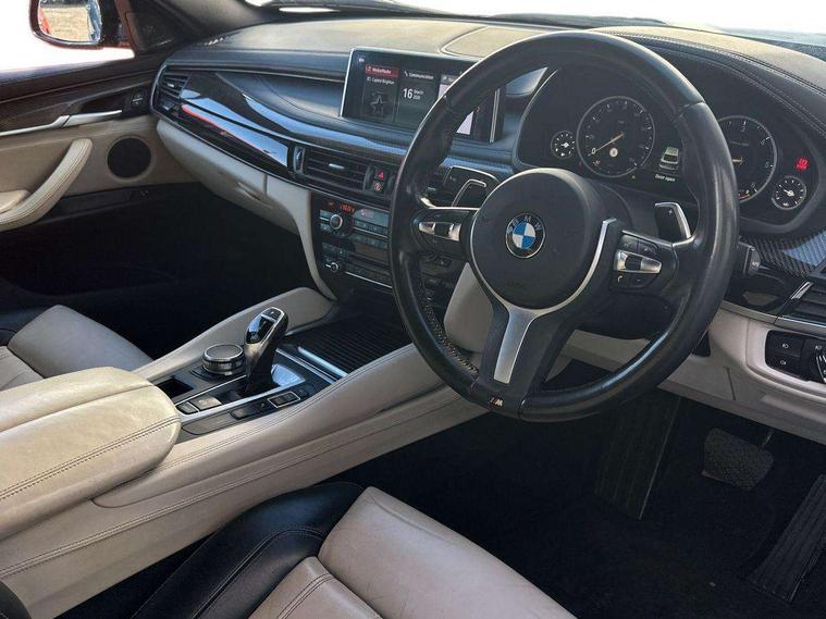 20GB Hard drive, 6.5" colour display screen, BMW apps interface, BMW information plus, BMW remote services, BMW Teleservices, Brake force display, Check control system, Digital cockpit, Electric tailgate release, Front/rear park distance control, Head up Display, Lights on warning, On board computer, Outside temperature gauge, Personal Profile, Professional multimedia navigation system, Service interval indicator, Servotronic PAS, Stop/start button, Voice control system, Diesel particulate filter, Auxiliary point for auxiliary devices, BMW professional twin tuner radio with single CD player and MP3 CD playback facility, DAB Digital radio, Auto dimming and folding door mirrors, Auto dimming rear view mirror, Body colour bumpers, Body colour door handles, Body colour door mirrors, Chrome exhaust tailpipes, Clear indicator lenses, Door mirror integrated indicators, Double kidney grille with high gloss black surround and black slats, Downlights in exterior door handles, Electric + heated aspheric door mirrors, Electric front/rear windows with anti-trap, Electric headlight adjustment, Follow me home headlights, Green tinted glass, Headlight washer jets, Heat insulated glass, Heated washer nozzles, High gloss black air breather, M aerodynamic body kit, Metallic paint, Rain sensor with auto light activation system, Stainless steel sill finishers, Sun protection glass, Xenon headlights, 12V accessory power point in centre console, 12v socket in front centre armrest storage compartment, 12V socket in luggage compartment, 2 x 12V socket in rear centre console, 3 spoke sports leather multi-function steering wheel with gear shift paddles, 40:20:40 split folding rear seats, Ambient interior lighting, Anthracite Velour floor mats, Boot lashing points, Door sills with M logo, Driver and passenger knee pads, Electric front seats + driver memory, Front and rear cupholders, Front armrest with storage bin, Front reading lights, Front/rear courtesy lights with soft on/off dimming, Full black panel display, Heated front seats, Height adj rear head restraints, Illuminated glovebox with lock, Isofix child seat preparation, LED footwell lights, Luggage compartment cover, removable, Reach + rake adjustable steering column, Storage bins on all doors, Sunvisors with illuminated vanity mirrors, Tilt/height adjustable front head restraints, Toolkit located in luggage compartment, Extended storage pack - X6, 3 rear 3 point seatbelts, ABS, ADB - Automatic Differential Brake, Automatic Stability Control (ASC), BMW emergency call, Brake energy regeneration, Child locks on rear doors, Cornering brake control (CBC), Crash Sensor - activates hazard/interior lighting + unlocks doors, Driver/Front Passenger airbags, DSC+, Dynamic brake control, Dynamic Traction Control - DTC, Electronic brake force distribution, Electronic parking brake, Front and rear head airbags, Front passenger airbag deactivation, Front passenger seat occupancy sensor, Front side airbags, Height adjustable front seatbelts, Hill descent control, Hill start assist, Pyrotechnically pre-tensioned front seatbelts, Seat belt force limiter, Side impact protection, Tyre pressure monitor, Warning triangle and first aid kit, Locking wheel nuts, Remote central locking, Thatcham cat 1 remote alarm/immobiliser, 21" M Double spoke light alloy wheel - style 599M, Run flat tyres,