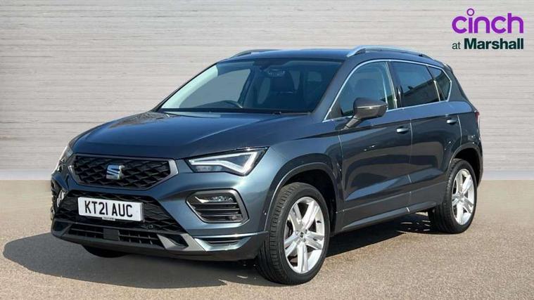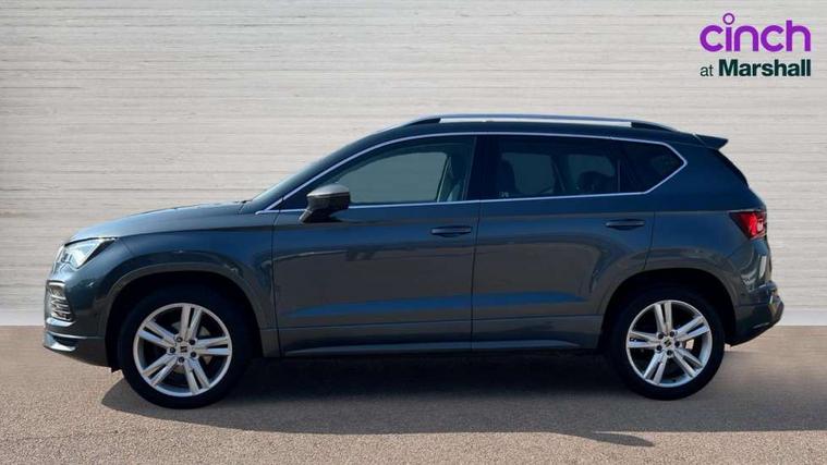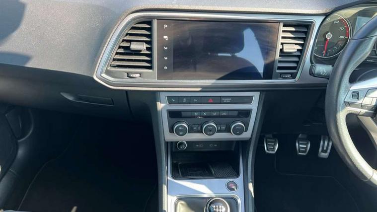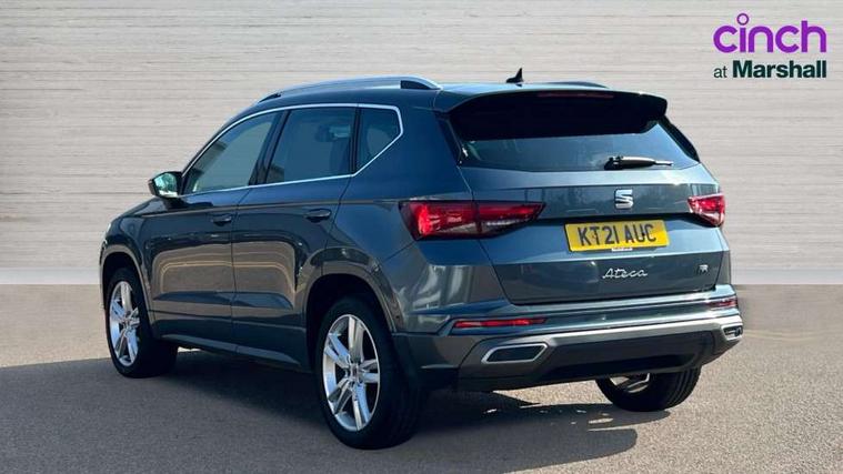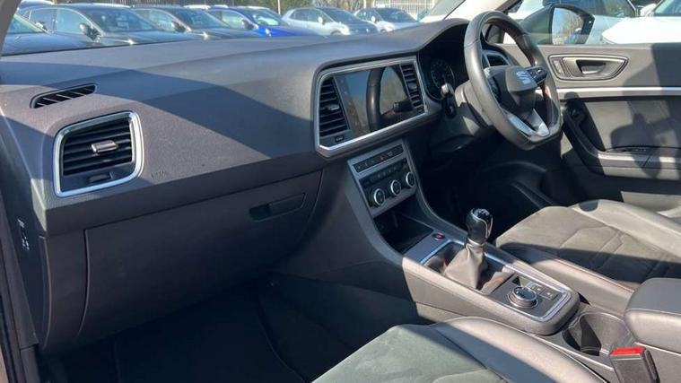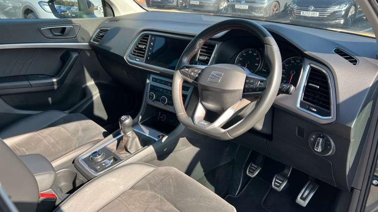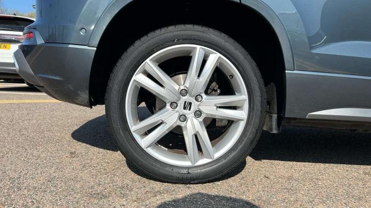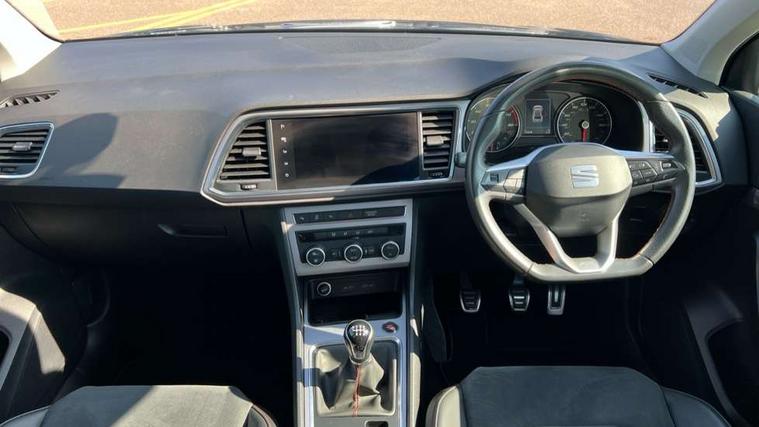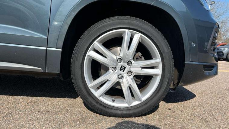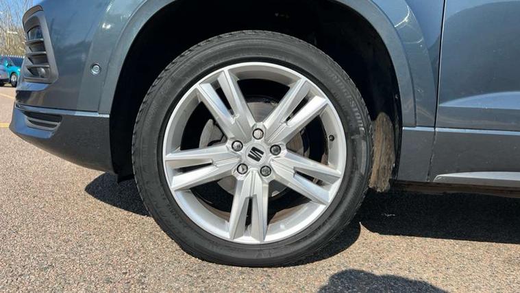 Cruise control system with speed limiter, Outside temperature gauge, Progressive power assisted steering, SEAT drive profile with driving experience button - Normal, Sport, Eco and Individual mode, steering and throttle response, Self parking functionality (includes front and rear parking sensors), Trip computer, Wireless full link smartphone integration, Wireless phone charger, Steering wheel mounted audio/phone controls, Body colour bumpers, Body coloured wheel arch surrounds, Chrome roof rails, Chrome side window trim, Cosmo grey front grille frame, Dark tinted rear windows, Daytime running lights, Door mirrors with welcome light silhouette, Dynamic headlight range control with self adjusting whilst driving, Electric adjustable/heated/folding door mirrors, Front and rear electric windows, Full LED headlamps with lens and LED front fog lamps with cornering function, Illuminated aluminium front door sill, LED rear tail lights with dynamic indicators, Rear fog lights, Rear spoiler, Rear wash/wipe, Simulated exhaust pipes in chrome frame, 12v socket in front, 60/40 split folding rear seat, Aluminium pedals, Dual zone climate control, Front and rear head restraints, Front centre armrest, Front seat back storage pockets, Height adjustable driver and passenger seat with lumbar adjustment, ISOFIX points in outer rear seats with top tether anchorage points, Leather steering wheel and gear knob, Microsuede upholstery with front sports seats, Multicoloured ambient lighting with LED interior illumination, Rear armrest and easy back seat release mechanism from boot, Storage compartment in roof console for sunglass, Storage compartment under driver's seat, Convenience pack - Ateca, Interior lighting pack - Ateca, Navigation system pack with DAB - Ateca, 3x3 point rear seatbelts, ABS, Traction control system (TCS), Electronic stability control (ESC) and Electronic differential lock system (XDS), Airbags - Driver and front passenger airbag with deactivation, front side, two curtain and driver's knee airbags, Electric parking brake with auto hold function, Front and rear seatbelt reminder, Front assist with autonomous emergency braking, Hill hold control, Tiredness recognition system, Traction control, Tyre pressure monitoring system, Alarm, Keyless entry, Locking wheel bolts, Chrome interior detailing, 18" Brillaint silver alloy wheels,