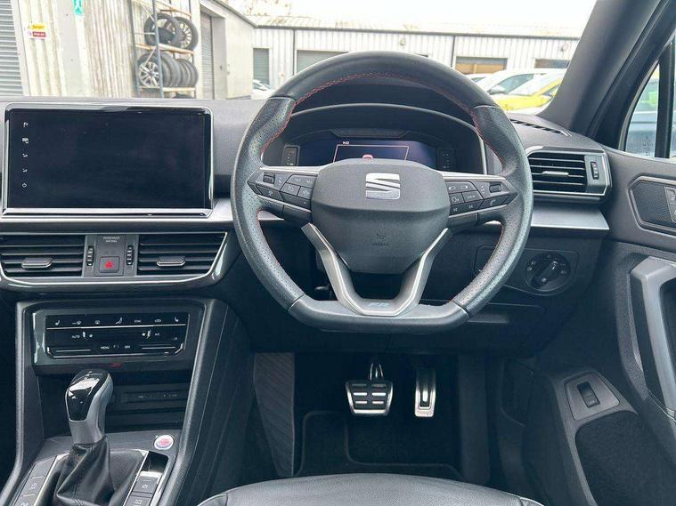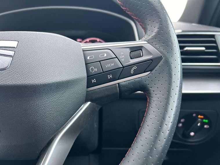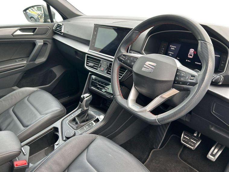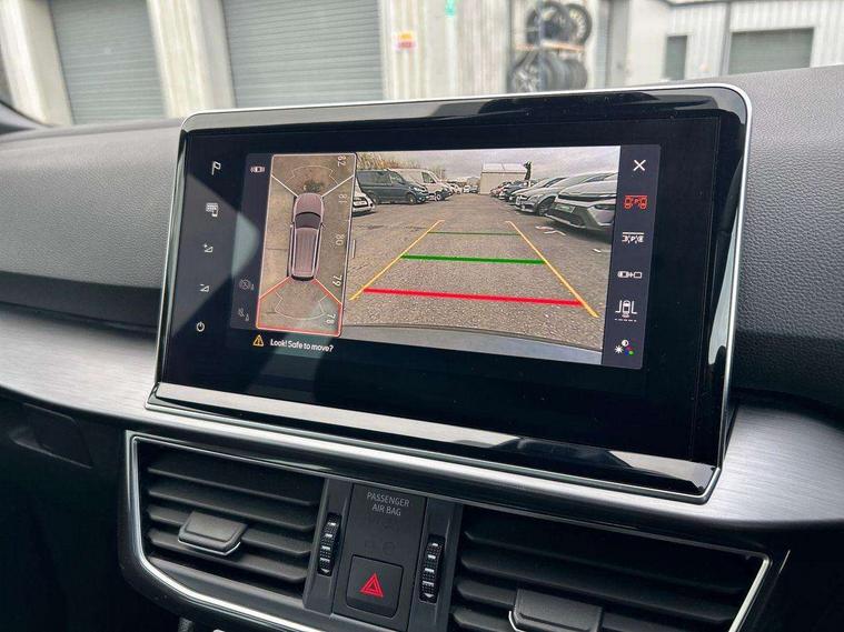 'Lights On' Reminder warning buzzer, 10.25" digital cockpit with multi function display, Adaptive cruise control with speed limiter, Bluetooth audio streaming with handsfree system, Digital clock, e-Call (emergency call), Front assist city emergency braking and pedestrian protection, Full Link Wireless Smartphone Integration with Mirror Link, Apple Car Play, Lane assist, Low fuel warning light, Outside temperature gauge, Power assist steering, RPM counter, Seat connect with safety, service, remote and online, SEAT Drive profile-4 different modes, progressive steering, 4Drive versions with off-road/snow, steering response, throttle response, gear shifts mode, Self parking functionality (includes front and rear parking sensors), Tailgate, Top view camera, Trip computer, Wash water level indicator, Comfort suspension, Sports rear shock absorption, XDS electronic differential lock, Navigation system with 9.2" colour touchscreen with proximity sensor, 3D Map display, DAB, AM/FM Radio, 3 USB (type C), Aux-in, 8 speakers, SD card, Steering wheel mounted audio/telephone controls, USB (type C) cable for Apple and Android compatibility, Auto dimming rear view mirror, Auto headlights with automatic coming and leaving home function, Automatic headlight adjustment, Black door mirrors, Black roof rails, Black window trims, Body coloured side skirts, Coast to coast lighting, Dark tinted rear windows, Dynamic rear indicators, Electric adjustable/heated/folding door mirrors with memory, Electric front/rear windows, Exterior black mouldings, Front grille frame in black, Front halogen fog lights with cornering function, Fuel door linked to central locking, Full LED headlights with LED rear lights, Illuminated aluminium front door sill with trim logo, LED daytime running lights, LED licence plate lighting, LED third brake light, Rain sensing wipers, Rear fog lights, Rear roof spoiler, Rear side wing doors, Rear wash/wipe, Sports bumpers, Twin exhaust pipes, Welcome lighting, 2 individual 3rd row seats, 3 seat bench in 2nd row, 3 zone climate control, Ambient spot lighting and front footwell illumination, Black interior roof, Centre armrest in front with air outlet in rear, Driver and passenger sunvisor with covered and illuminated mirror, Driver's electric lumbar adjustment, Easy fold rear seat system - second and third row, Electric driver's seat with memory, Forward and backward adjustable seats 2nd row, Four cargo rings in the boot, Front bucket seats, Front cupholders, Front integrated headrests, Front passenger seat lumbar adjustment, Front seat back storage pockets, Gear shift indicator, Heated front and outer rear seats, Height adjustable passenger seat, Illuminated boot, Illuminated glovebox, Instrument lighting with brightness control, ISOFIX points in outer 2nd row seats and front passenger seat with top tether anchorage points, Leather gear knob, Leather upholstery, Leather wrapped multifunction steering wheel, Luggage compartment floor with split function, Multicolour ambient lighting in front and rear door panels + LED lights in interior door handles, Rear armrest and easy back seat release mechanism from boot, Rear head restraints, Red stitching on front armrest, Single front passenger seat, Sliding boot cover, Sports front seats, Sports steering wheel, Three 12V sockets, 3x3 point rear seatbelts, ABS, Driver/front passenger airbag, Drivers knee airbag, Electronic parking brake with auto hold, Electronic stability control, Front passenger airbag deactivation, Front side airbags, Hill hold control, Manual rear child locks, Seatbelt reminders for all seats, Tiredness recognition system, Traction control, Two curtain airbags, Tyre pressure monitoring system, Alarm, Keyless enter and go with electric tailgate with virtual pedal, Locking wheel bolts, Power locking and remote control with two foldable keys and opening boot selector, Chrome interior detailing - door and dashboard decorative inserts, 20" 'Cosmo' Grey machined alloys wheels, Tool kit,