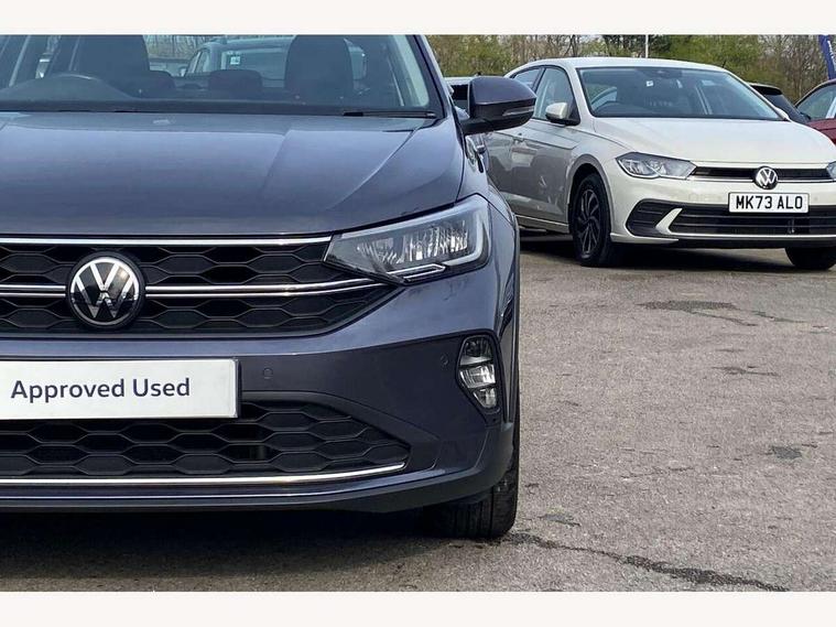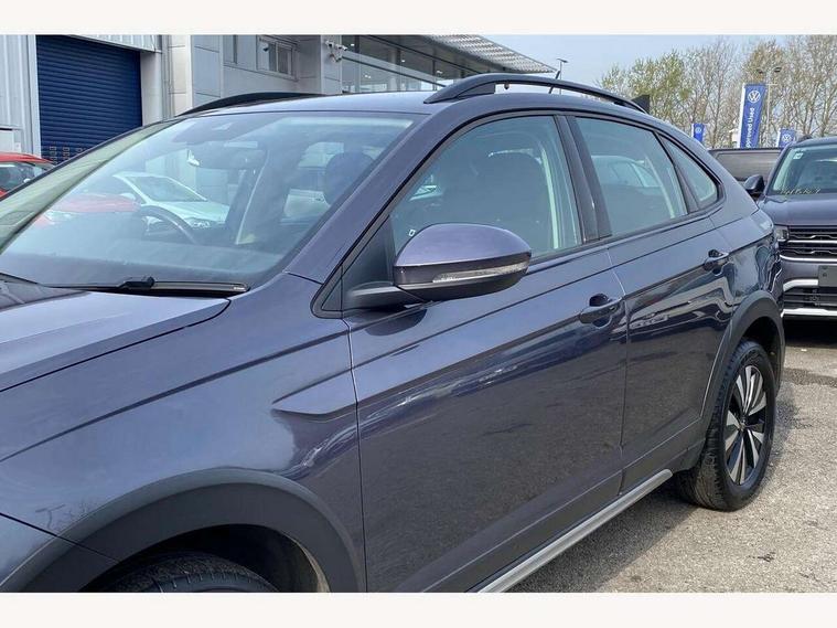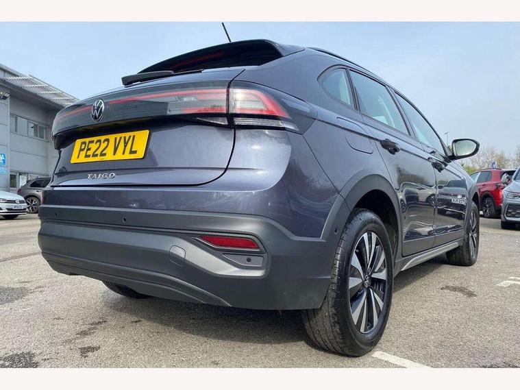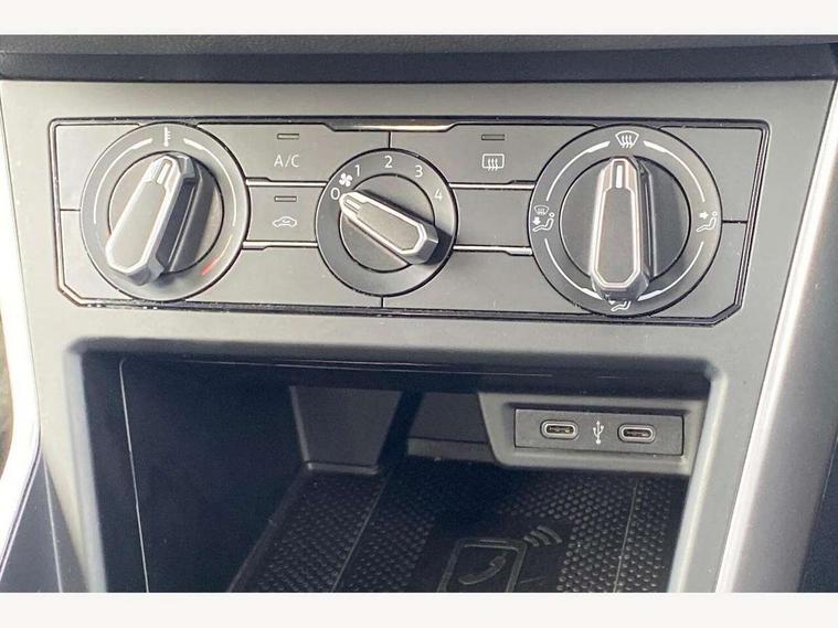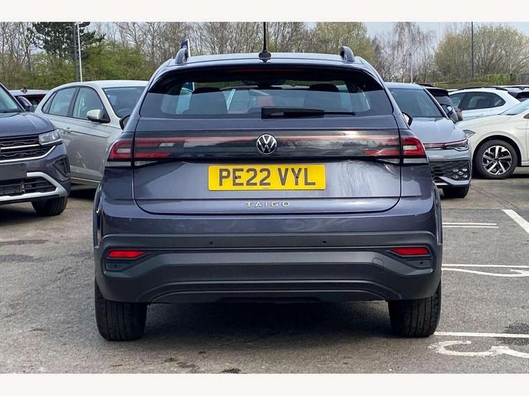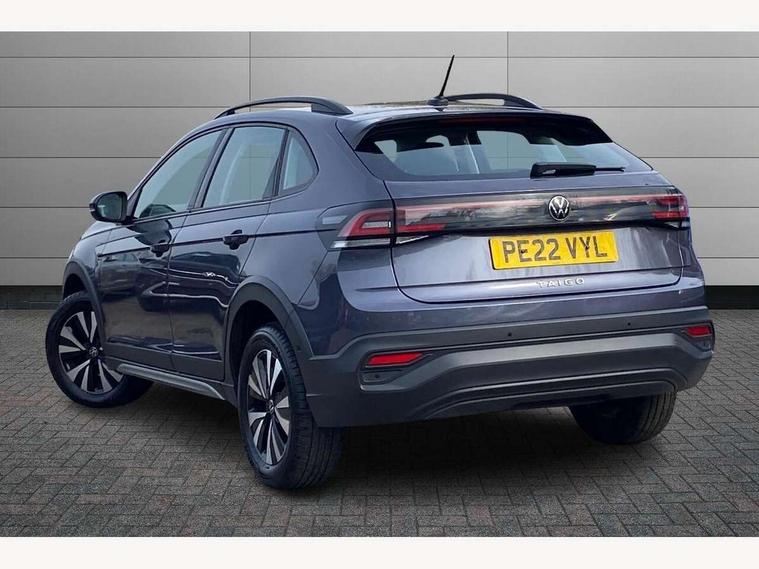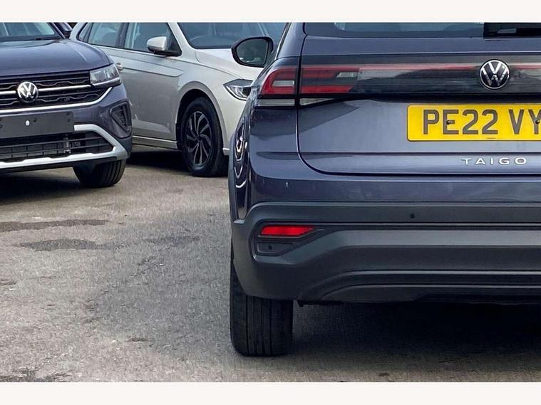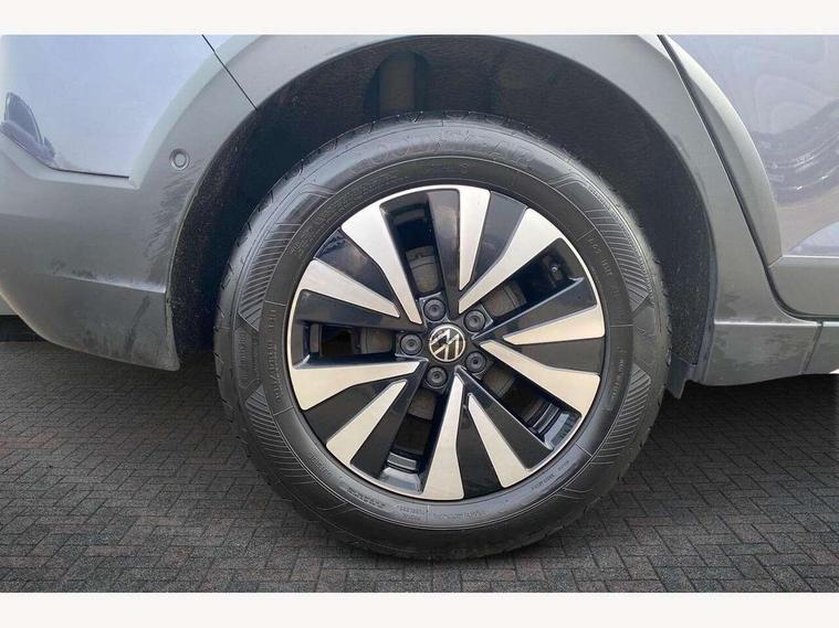 App-Connect including App-Connect Wireless, Driver alert system, e-Call (emergency call), Power Steering, Travel assist including emergency assist, Washer fluid level indicator, Wireless Charging including Bluetooth, Start-stop system with battery regeneration (recuperation - energy recovery during braking), Digital radio reception (DAB+), Diversity antenna for FM reception, WeConnect plus, Ambient lighting with logo projection, Aspherical driver's exterior mirror, Auto headlights, Body coloured bumpers, Body coloured exterior mirror housings and door handles, Electric windows, External USB type C socket and charging sockets, Front fog lamps with cornering function, Headlight range control, Heat insulating glass windscreen, LED headlamps, LED rear combination lamp, LED third brake light, Left convex exterior mirror, Power folding adjustable/heated exterior mirrors and front passenger exterior mirror lowering function, Rear fog light on one side, reversing light on both sides, Rear side wing doors, Rear wash/wipe with intermittent wipe setting, 'Slash/ Austin' Cloth upholstery, 12V socket in centre console, 2 front reading lights, 3 rear head restraints, 3 seat bench in 2nd row, Black carpets, Child seat anchor for child seat system i-Size, 2x top tether and child seat anchor in front on front passenger side, Door and side trim panels in titan black, Driver and front passenger seat height adjustment, Front centre armrest, Handbrake lever handle in leather, Height and reach adjustable steering wheel, Leather trimmed gear knob, Leather wrapped multifunction steering wheel, Luggage compartment floor, Luggage compartment light, Lumbar support for driver's and front passengers seat, Seat covers in titanium black, Single front passenger seat, Split folding backrest with centre armrest and unsplit rear seat bench, Storage compartment under front seats, Sun visors with illuminated vanity mirrors, Chrome Package - Taigo, Drivers assistance pack - Taigo, Light and Sight pack including High beam assist - Taigo, 2 x 3-point seatbelts/outer rear seats with ECE label, 3-point seat belts in front with pretensioner and height adjustment, 3-point seatbelt for centre rear seat, Driver and front passenger airbags with front passenger airbag de-activation, front side and curtain airbags, Driver and front passenger safety-optimised head restraints, Electronic stability control, Extended and predictive pedestrian/ cyclist protection, Front and rear disc brakes, Front curtain and side airbags with center airbag, Hill start assist, Manual rear child locks, Single tone horn, Tyre pressure loss indicator, Anti-theft alarm system with interior monitoring, backup horn, and towing protection, Anti-theft wheel bolts, Lava stone black gloss/matt decorative inserts in dash and front door panels, Low rolling resistance tyres,