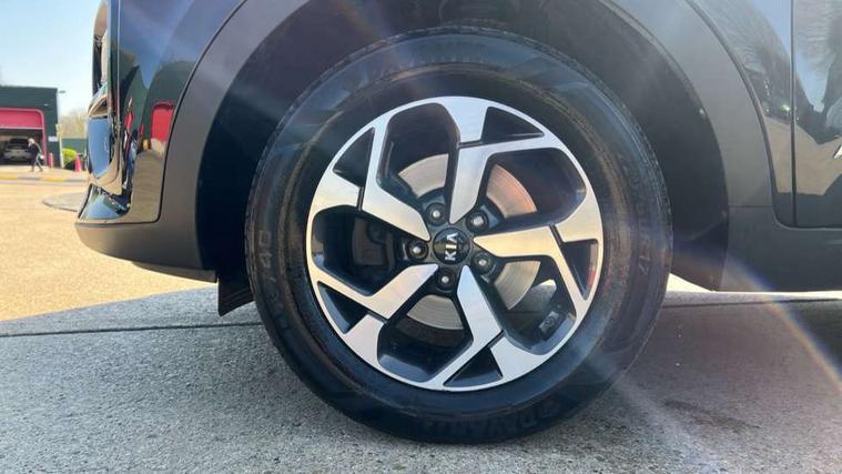 3.5" supervision cluster display, 7" touchscreen satellite navigation with European mapping and traffic messaging channel, Android auto with voice control, Apple car play with voice control, Bluetooth connectivity with voice control, Cruise control + speed limiter, Driver attention warning, Emergency stop signalling system, Kia connected services featuring TomTom live, Lane keep assist, Rear parking sensor, Reversing camera, Speed limit information, Speed sensitive power steering, Trip computer, Windscreen washer level indicator, Intelligent Stop and Go, 6 speaker audio system, Bluetooth audio streaming, DAB Radio with MP3, Rear USB port, Steering wheel mounted audio controls, USB/iPod/auxiliary input connections, All round electric windows with drivers auto up/down function, Auto dimming rear view mirror, Automatic headlights, Automatic lighting control, Bi-Function halogen headlights, Black side sill and wheel arch body mouldings, Body colour door handles with chrome inserts, Body colour door mirrors, Chrome front bumper insert, Chrome grille surround, Chrome window surround, Electrically adjustable/heated/folding door mirrors with LED indicators, High beam assist, High gloss black diamond mesh radiator grille, LED daytime running lights, Privacy glass (rear side windows and rear screen), Projection front fog lights, Rain sensing front wipers, Rear spoiler, Rear wiper, Roof rails, Shark fin antenna, Speed sensitive front wipers, Tinted glass, Trailer stability assist, Welcome and follow-me home light functionality, Wide view drivers door mirror, 12V power in front and rear centre console, 3 x passenger assist grips, 60/40 split folding rear seat, Air filter, All-round height adjustable headrests, Centre cabin light, Centre console storage box, Door armrest in leather, Driver and front passenger side sunvisors with illuminated vanity mirrors, Driver's seat manual height adjust, Drivers seat power lumbar support, Dual zone automatic air conditioning, Front and rear door storage, Front cabin LED map light with sunglasses case, Front door courtesy reflectors, Front seat and rear pockets, Front/rear centre armrests, Gear shift indicator, Glovebox illumination, Heated front and outer rear seats, Ignition key lock illumination, Interior door lock/unlock function, ISOFIX Child seat top tethers and anchor fixings, Leather steering wheel, Leather trimmed gearshift, Light grey headlining, Luggage area light, Luggage area load cover, Luggage net with hooks, Premium cloth upholstery, Rear centre armrest with cupholder, Rear coat hooks, Satin chrome interior door handles, Tilt/telescopic adjustable steering wheel, Ventilation ducts to rear compartment, Active front headrests, All round 3-point seatbelts, Anti-lock braking system with electronic brakeforce distribution, Dual front side airbags, Electronic stability control with downhill brake control, ESP + traction control, Front passenger airbag cut-off switch, Front seatbelt pretensioners + load limiters, Height adjustable front seatbelts, Hill start assist control (HAC), Impact sensing auto door unlocking, Rear door child safety locks, Twin curtain airbags with roll over sensor, Twin front airbags, Tyre pressure monitoring system, Advanced anti-theft system including immobiliser and alarm, Door deadlocks, Locking wheel nuts, Remote central door locking with fold away key, Speed sensitive auto door locking, Visible vehicle identification number, Metallic finish centre fascia, 17" Alloy wheels, Tyre mobility kit,