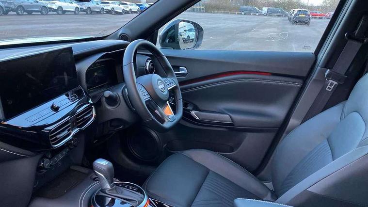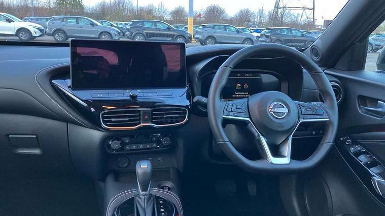 12.3" full colour TFT screen combimeter, Drive modes select (Eco, normal and sport), Emergency and breakdown call, Front parking sensor, Idle start/stop system, Intelligent driver alert system, Intelligent lane intervention, Lane departure warning system, Nissan connect 12.3" touch screen entertainment system, Nissan connect nav with TomTom traffic, Nissan connect services, Outside temperature sensor, Power Steering, Rear parking sensor, Stop/start button, Traffic sign recognition, Trip computer, Voice recognition, WiFi connectivity, Wireless Apple CarPlay and Google Android auto, Wireless Smartphone charger, 10 Bose speakers 8 speakers and 2 headrest speakers for driver/passenger seats, 2 X Rear console USB port, Bluetooth system, USB, Aux-in and 12V socket, Bose personal plus audio system, DAB Digital radio, Auto dimming frameless rear view mirror, Automatic hazard signal with emergency stop signal, Body colour door handles, Electrically adjustable door mirrors with integrated indicators, Follow me home headlights, Front and rear electric window with one touch driver window, High beam assist, LED 3rd brake light, LED daytime running lights, LED headlamps, LED rear fog lamp, LED rear lamps, One touch passenger window, Rear privacy glass, Rear side wing doors, Rear wiper, Roof spoiler, Shark fin roof antenna in solid Black, Solid black door mirrors, Three blink turn signal, 3 height adjustable rear headrests, 3 seat bench in 2nd row, 60/40 split folding rear seat, Card holder on driver sunvisor, Door ambient lighting, Driver seat back pocket, Driver side rear coat hanger, Driver/passenger sunvisors and vanity mirrors, Front and rear cabin lights, Front armrest, Front door pockets with bottle holders, Front head restraints, Front/rear passenger grab handles, Gear console ambient circle lighting, Height adjustable driver's seat, Internal chrome door handles, Luggage board, Luggage space lighting, Monoform sporty seats, Multifunction steering wheel, Passenger seat back pocket, PVC fabric upholstery, Rear door bottle holders, Single front passenger seat, Smooth synthetic leather steering wheel, Steering wheel mounted gearshift paddles, Synthetic leather kneepad, Synthetic leather shift knob, Telescopic steering wheel adjustment, Two cupholders in front centre console, Two rear isofix child seat anchorage points with top tether, Welcome light and console tray ambient lighting, Comfort pack - Juke, Heat pack with height adjustable passenger seats - Juke, ProPilot pack - Juke Auto, ABS with EBD and brake assist, Active ride control, Active Trace Control, Driver and passenger airbags, Driver and passenger side airbags, Electric handbrake with auto hold function, Electronic Stability Programme (ESP), Front and rear curtain airbags, Height adjustable seatbelts, Hill start assist, Intelligent emergency braking with pedestrian and cyclist recognition, Rear door child safety locks, Seatbelt reminder for driver/front passenger and rear seats, Three 3 point rear seatbelts, Traction control, Tyre pressure monitoring system, VDC Dynamic Vehicle Control, Alarm, Immobiliser, Intelligent key and start push button with walk away lock and approach unlock functions, Remote central locking, 19" Alloy wheels, Tyre puncture repair kit,