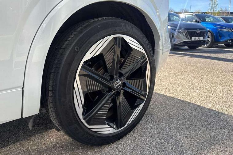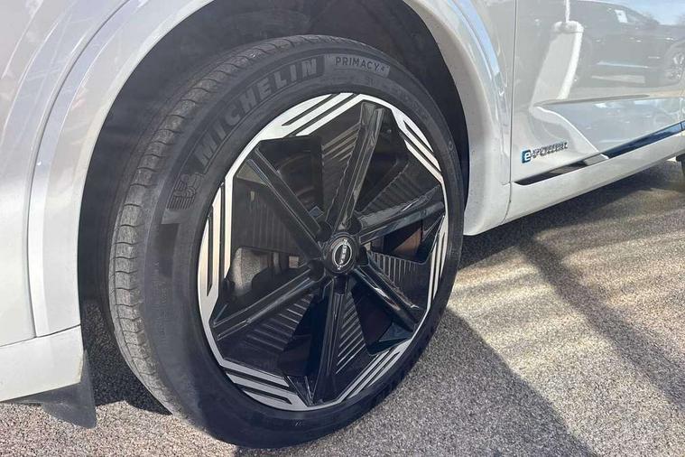 360 degree Intelligent around view monitor with moving object detection, Blind spot intervention, Blind spot warning, Drive assist custom mode, Drive modes (sport, normal, eco), Driver drowsiness and attention warning, e-Pedal step, Electric speed sensitive power steering, Emergency and breakdown call, Emergency lane keep assist, Emergency Stop Signal (ESS), Engine start/stop button, EV mode switch, Event data recorder, Front and rear parking sensors, Full Digital 12.3" TFT Digital Combimeter, Google virtual personal assistance, Idle stop/start system, In-car WIFI hotspot, Intelligent Cruise control (ICC), Intelligent forward collision warning, Intelligent speed assist, Lane departure warning system, Nissan connect 12.3 inch touchscreen infotainment system, Nissan connect navigation with google maps, Nissan connect services 2.0 (Google Automotive System), Outside temperature sensor, Rear cross traffic alert, Reversing detection, Traffic jam pilot, Wireless Apple CarPlay/Android Auto, Wireless charging pad, Limited slip differential, Multi link suspension, 2 front USB-C ports, 2 rear USB-C ports, 6 speakers, AM/FM audio system with DAB, Bluetooth audio streaming, Auto dimming frameless rear view mirror, Auto rear wiper when reversing, Black roof rails, Body colour mirror caps, Body coloured bumpers, Body coloured door handles, Bodyside mouldings, Chrome side window finisher, e-POWER badging, Electric auto folding door mirrors, Electrically adjustable and heated door mirrors with LED turn indicator, Follow me home headlights, High beam assist, Intelligent auto headlights, LED 3rd brake light, LED daytime running lights, LED headlights with adaptive driving beam, LED rear lights, LED sequential turn lights, One touch front and rear electric windows with remote opening and closing, One touch passenger window, Rear privacy glass, Rear roof spoiler, Rear side wing doors, Rear styling plate, Shark fin antenna, Splash free rain sensing wipers, Super RED rear LED lights, Super UV and infrared cut glass, 3 bench rear seats in 2nd row, 3 rear headrests, 60/40 split folding rear seat bench, Chrome interior door handles, Dark headlining, Driver seat back pocket, Dual zone automatic climate control with pollen filter, e-POWER shifter, Fixed Glass roof with electric sunshade, Front door with bottle holders, Height adjustable front headrests, Luggage board system, Luggage space lighting, Multifunction steering wheel, Passenger seat back pocket, Quilted alcantara leather upholstery, Rear door bottle holders, RGB ambient light (Full area coverage), Single front passenger seat, Smooth leather steering wheel, Tilt/telescopic adjustable steering wheel, Two rear isofix child seat anchorage points with top tether, 3x3 point rear seatbelt pretensioners + load limiters, Autonomous emergency braking, Child locks on rear doors, Curtain and front side, far side airbags, Driver and passenger airbags, Driver, passenger and 2nd row rear seat belt reminder, Electric handbrake with auto hold function, Front seatbelt pretensioners + load limiters, Height adjustable front seatbelts, Hill start assist, intelligent front emergency braking, Rear automatic braking, Tyre pressure monitoring system, Vehicle dynamic control, Engine immobiliser, Intelligent key with walk away lock and approach unlock functions, Remote central door locking with deadlocking, Thatcham alarm, 20" N-Design diamond cut alloy wheels, Tyre puncture repair kit,