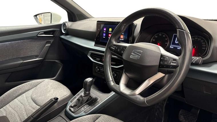 'Lights On' Reminder warning buzzer, Digital clock, E-call, Electric speed sensitive power steering, Full Link Smartphone Integration with Mirror Link, Apple Car Play, Google Android Auto with USB Type C cable for Apple and Android compatibility, Lane keeping system, Low fuel warning light, Outside temperature display, Rear parking sensor, RPM counter, Seat connect with safety, service, remote and online, Trip computer, Bluetooth interface for hands free and audio streaming, DAB digital radio and AM/FM radio, Steering wheel mounted audio controls, Anti theft roof antenna, Auto dimming interior rear view mirror, Automatic activation of hazard warning lights, Body coloured bumpers, Body coloured door handle inserts, Chrome roof rails and window surrounds, Chrome window trim, Electric front/rear windows, Electrically adjustable, heated and folding door mirrors, FULL LED automatic headlights with dynamic headlight range control, coming and leaving home, LED daytime running lights, Hidden exhaust pipe, LED rear tail lights and licence plate lights, Protective side mouldings, Rain sensing wipers, Rear side wing doors, Rear spoiler, Rear window wash/wipe, Roof colour door mirrors, Third brake light, Visible VIN plate, Windshield wiper with intermittent control and potentiometer, 2 cupholders, 3 seat bench in 2nd row, 60/40 split folding rear seat, Aircare filter, Aran green Illuminated coloured air vent, Black interior roof, Cloth upholstery, Double boot floor, Driver sunvisor with covered mirror + card holder, Dual zone climate control, Flat bottomed leather steering wheel/gear knob/handbrake, Front courtesy light with 2x front and 2x rear reading lights, Front seat back storage pockets, Gear shift indicator, Height adjustable front seats, Height/reach adjustable steering column, Illuminated boot, Instrument lighting with brightness control, Interior ambient lighting, Interior light in footwell, central console and door panel, ISOFIX points in outer rear seats with top tether anchorage points, Passenger sunvisor with vanity mirror, Single front passenger seat, Storage net on centre console, Two front and three rear height adjustable headrests, Connectivity pack plus - Arona, Interior chrome pack - Arona, Safety and driving pack (M) - Arona, Storage pack - Arona, 3 point seatbelts on all rear seats, ABS, Active front headrests, Child locks on rear doors, Driver and front passenger airbags with front passenger airbag de activation, front side and curtain airbags, Electronic stability control, Emergency Brake Assist (EBA) and front assist, Front and rear seatbelt reminder, Hill hold control, Multi-Collision braking, Tiredness recognition system, Traction control, Tyre pressure monitoring system, Alarm with back-up horn, Electronic engine immobiliser, KESSY Keyless entry and go, Locking wheel bolts, Remote central locking + deadlocks, Tow away protection, Titan black dashboard, 17" Dynamic alloy wheels,