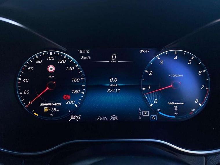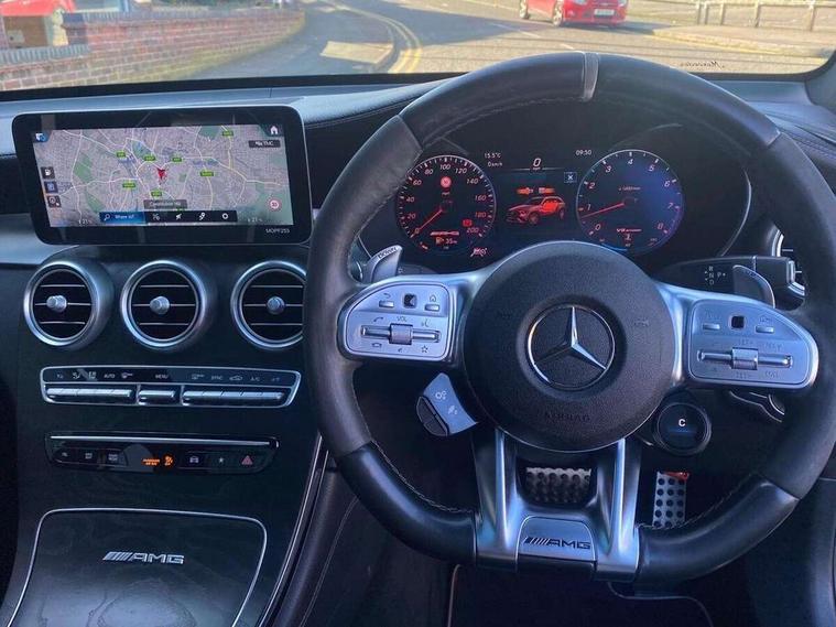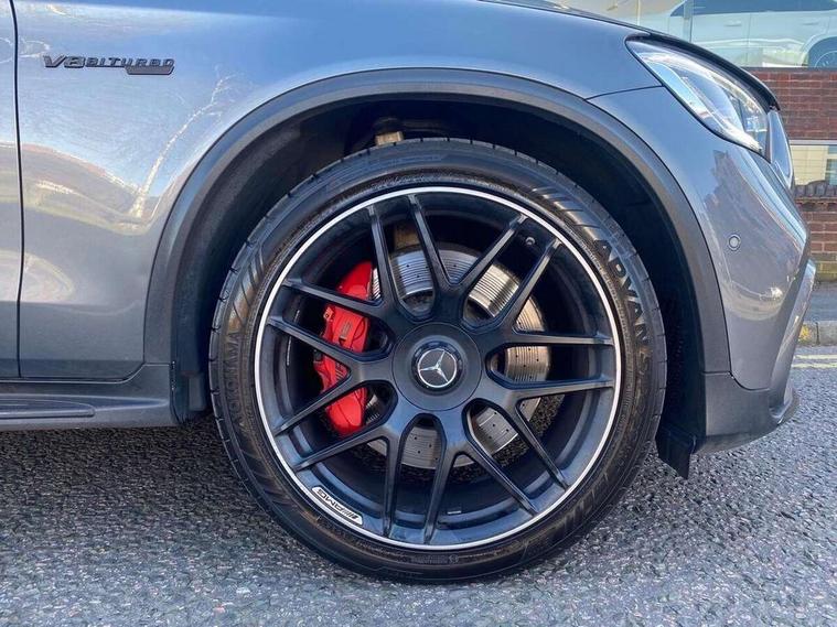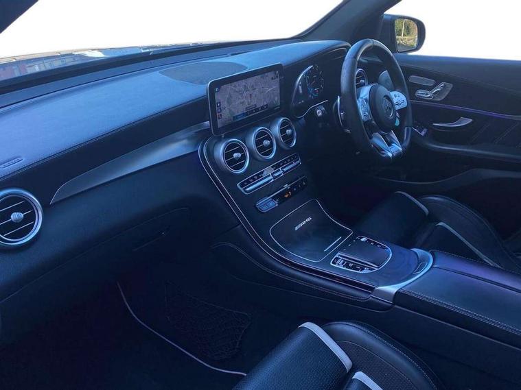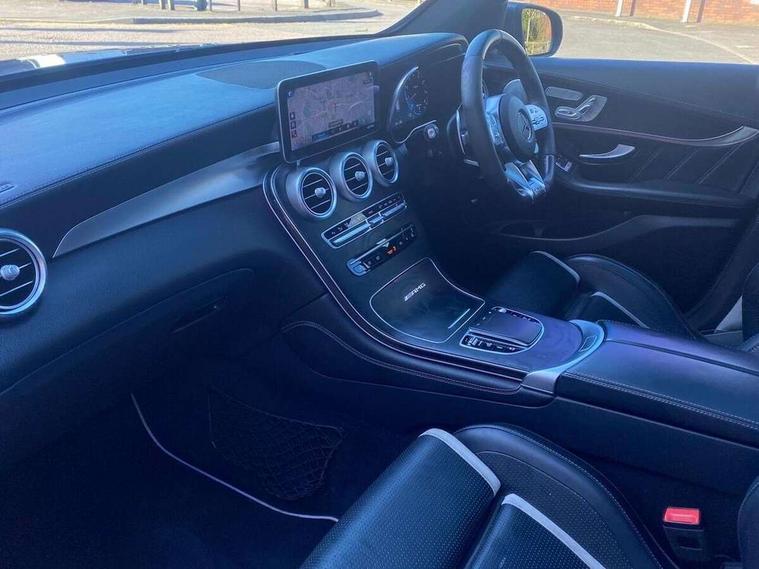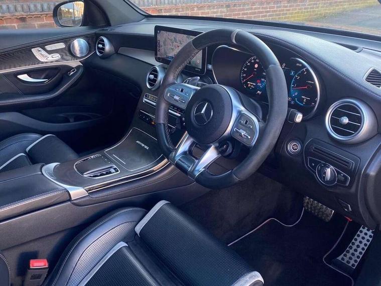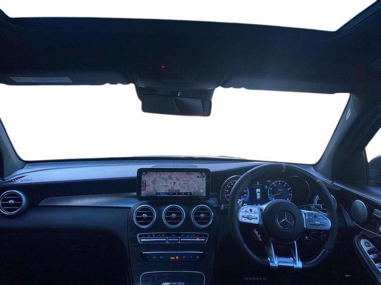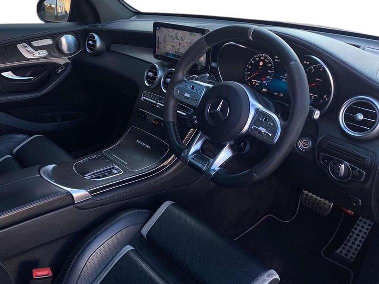 360 degree view camera, Active parking assist with parktronic system, AMG track pace, Attention assist, Bluetooth interface for hands free telephone, Collision prevention assist plus, DYNAMIC SELECT with a choice of driving modes (ECO, Comfort, Sport, Sport+ and Individual), Easy pack automatic powered tailgate, ECO start/stop function, Hard disk navigation, Hey Mercedes Voice activation, Instrument cluster with12.3-inch digital instrument cluster display. High resolution instrument cluster screen with choice of three display styles, MBUX augmented reality for navigation, MBUX Interior assistant, Mercedes connect me with remote online services, Multi function trip computer, Outside temperature display, rear seatbelt status indicator, Remote boot release, Service indicator (ASSYST), Smartphone integration with Apple CarPlay and Android auto, Traffic sign assist, Wireless charging, 66 litre fuel tank, Air body control air suspension for front and rear axles with continuously adjustable damping, AMG electronic rear axle limited slip differential lock, AMG performance 4MATIC+, AMG SPEEDSHIFT MCT 9 speed automatic sports transmission steering wheel gearshift paddles and RACE START function, silver aluminium gear shift paddles, Petrol Particulate Filter (PPF), Burmester surround sound system, DAB Digital radio, MBUX multimedia system with DAB digital radio and touchpad including satellite navigation, Media display 10.25-inch touchscreen display, Pre installation for Mercedes Benz Link, USB ports x 2 in centre console, Adaptive brake lights, AMG bodystyling with 2 black louvres in outer air intakes, AMG bodystyling with rear apron and diffuser fins, AMG radiator grille with black vertical louvres and trim strip in high gloss chrome, Badging - V8 BITURBO 4MATIC+ lettering on front wings, Body coloured bumpers, Electric panoramic glass sunroof, Electric windows one touch open/close, Electrically adjustable and heated door mirrors, Front and rear exterior chrome trim, Headlamp assist automatic headlamp activation, LED tail lamp, Multi beam LED headlamps with 84 indiviually control LED, daytime running lamps, Active Light, cornering light, enhanced fog lamp, adaptive Highbeam Assist, Privacy glass with dark glass from B pillar backwards, Rain sensor windscreen wipers, Range adjustable headlights, Rear wiper, Running boards, Tinted glass all round with single layer safety glass, Two chrome plated tailpipe trim elements, 2 way rear head restraints, 3-spoke multifunction AMG steering wheel in black nappa leather with flattened bottom section, chrome inserts and perforated leather in grip area, 40:20:40 split folding rear seats, Ambient lighting, AMG floor mats with edging and embroidered AMG lettering, AMG performance seats, Automatic child seat recognition sensor, Dividing net - rear, Double cup holder in centre console, Front armrest with storage box, Front door sills with Mercedes Benz lettering, Front head restraints, Heated front seats, Illuminated and lockable glove compartment, Nappa leather upholstery, Rear top tether child seat ISOFIX attachment, Sports pedals with stainless steel surfaces and rubber studs, Steering wheel with touch control buttons, THERMATIC automatic climate control, AMG Driver's package - GLC, Easy-pack load compartment cover, Interior lighting pack - GLC, Keyless Go comfort pack - GLC, Memory pack - GLC, Mirror pack - GLC, Storage pack - GLC, 3 rear 3 point seatbelts, Active bonnet, Adaptive brake system with HOLD function and brake drying in the wet, ASR, Brake calipers with Mercedes-Benz lettering + perforated brake discs, Child proof door locks, Dual-stage airbags - driver and front passenger, driver knee bag and window bags for driver, front passenger and rear passengers, Electronic parking brake, Electronic stability programme (ESP) with curve dynamic assist and cross wind assist, Front and rear seatbelt reminder, Front passenger seat occupancy sensor, Hill hold function, Seat belts in Crystal grey, Tyre pressure monitoring system, Warning triangle and first aid kit, Alarm system/interior protection/immobiliser, Automatic door locking, Remote central locking,