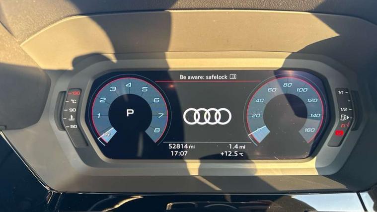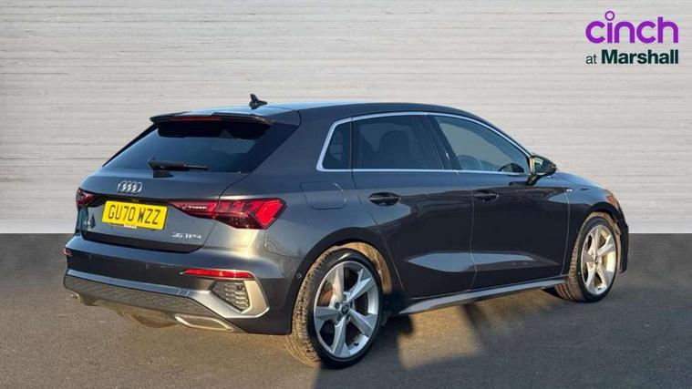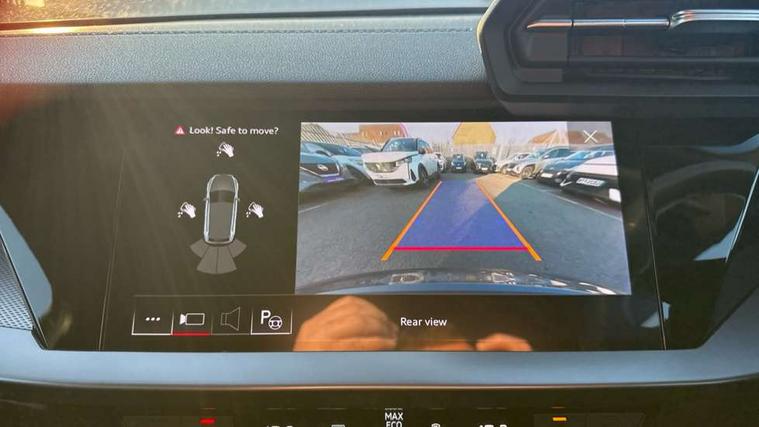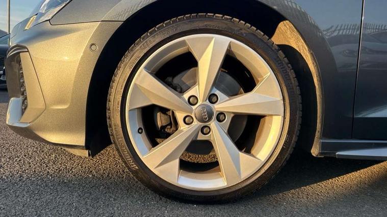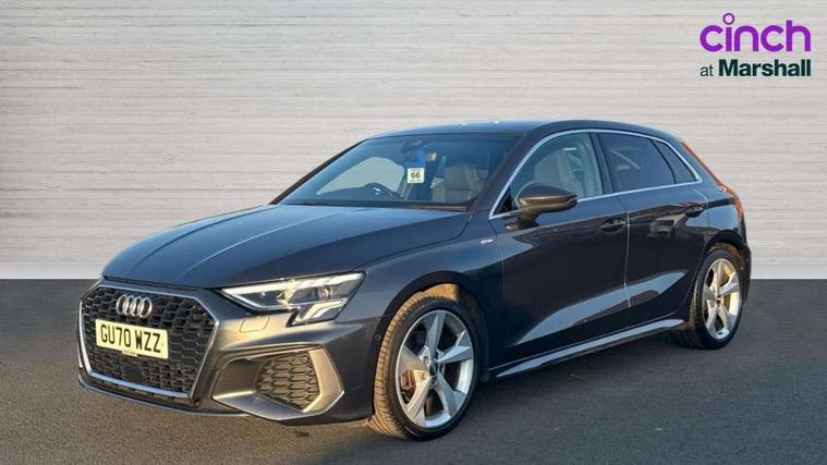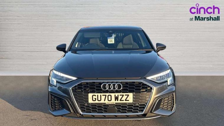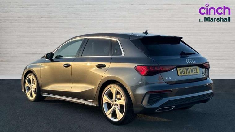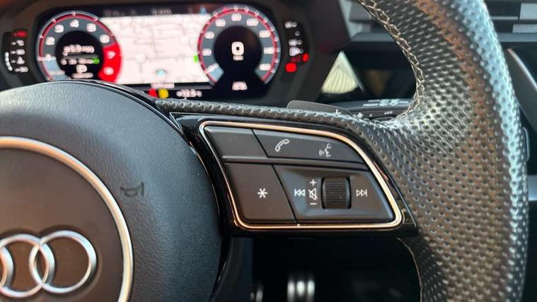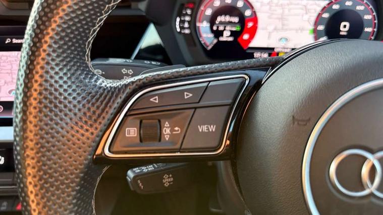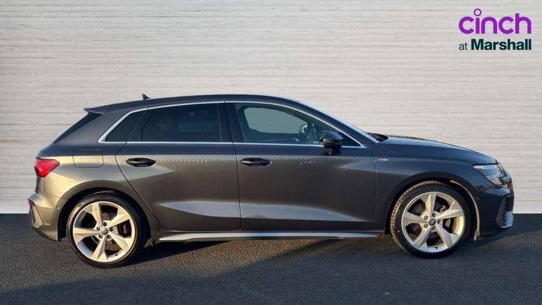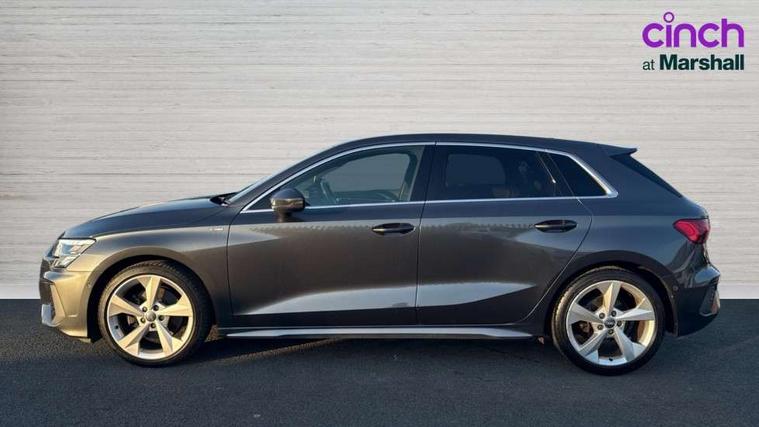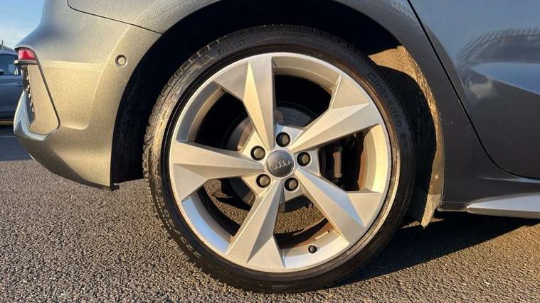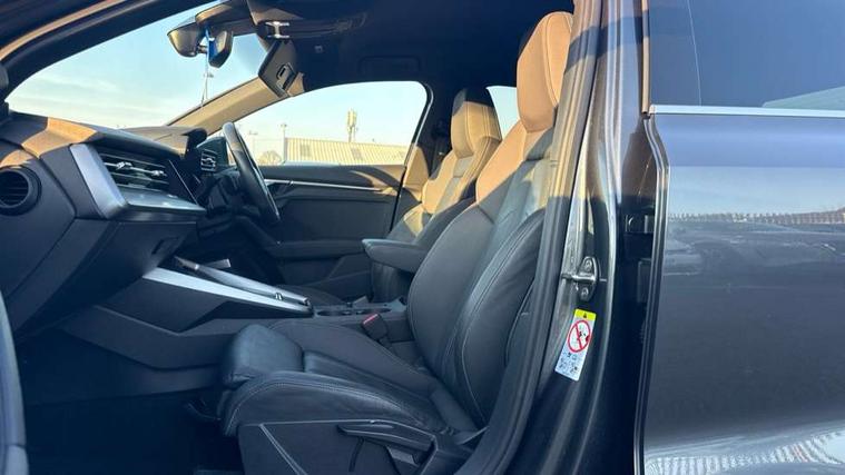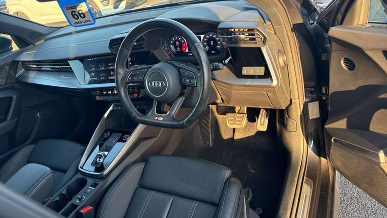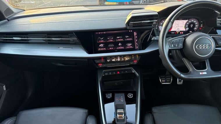 Audi connect emergency call and service, Audi drive select (Auto, Comfort, Dynamic, Efficiency and Individual), Audi smartphone interface, Audi Virtual Cockpit - 10.25" digital and colour instrument cluster, Automatic start/stop system with recuperation, Bluetooth interface, Collision avoidance assistant, Electromechanical power speed sensitive steering, Lane departure warning system, MMI Navigation Plus with high resolution 10.1" colour touch screen display, Service indicator, Trip computer, Voice control system with natural language interaction, 1xUSB-A and 1xUSB-C connection, 6 passive loudspeakers, DAB Digital radio, Acoustic glass windscreen, Aluminium window trim, Auto dimming frameless rear view mirror, Body colour exterior mirrors, Electrically adjustable/heated/folding/dimming door mirrors with kerb view includes integrated LED indications + kerb view function for passenger side, Front electric windows, Illuminated aluminium inserts front door sills with S logo, LED daytime running lights, Light and rain sensors, Privacy glass - dark tinted rear window, rear door and side windows, Rear electric windows, Rear side air outlets in grained matt black, Rear wiper, S line bumpers, S roof spoiler, 12V socket and storage compartment in front centre console, 40/20/40 split folding rear seat bench with cupholder, Black cloth headlining, Dual zone electronic climate control, Front and rear centre armrest in leather, Front and rear headrests, Front/rear floor mats, Height and reach adjustable steering wheel, Interior lighting - glove compartment light and right hand side, Luggage compartment floor covering, Manual boot compartment lid, Manually adjustable front seats, Seat side bolsters, Stainless steel pedals and front footrest, Twin leather upholstery with front sports seats S embossed logo, Aluminium interior elements pack - A3 Sportback, S line styling pack - A3 Sportback, 3x3 point rear seat belts, Driver and front passenger airbag with passenger airbag deactivation, Electronic Stabilisation Control (ESC) including ABS, ASR and EDL, First aid kit with warning triangle and 2 safety vests, Hill hold assist, Pre-sense front with pedestrian and cyclist detection, Seatbelt monitoring, Tyre pressure loss indicator, Anti theft alarm, Anti-theft wheel bolts, Electronically operated child lock, Immobiliser, Remote control central locking, Accent surfaces in the dashboard and centre console in platinum grey silk effect paint finish, Dark spectrum aluminium inlays,