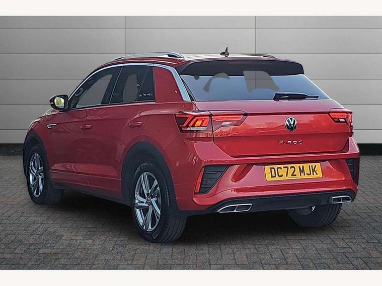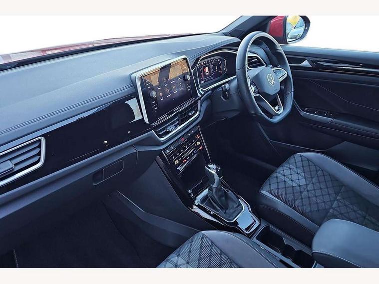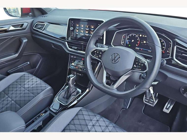 10.25" Digital cockpit pro, Bluetooth mobile phone interface, Driver alert system with fatigue detection, Driver tips and journey analysis, Emergency call service, Lane keeping system Lane Assist, Modified key software - reduce switch off time for key status change to Long no motion, Online services, Park assist including front and rear parking sensors, Service interval indicator, Tailgate/trunk lid release from outside, Think blue trainer driver tips and journey analysis, Warning sound and light for front seatbelts unfastened, Wireless app connect, Battery regeneration during braking, Start/stop function with battery regeneration, Diversity antenna for FM reception, Front and rear 6 speakers, Music playback - MP3, WMA and AAC files, Premium USB cable in choice of either Apple or Android smartphone compatibility, SD card slot, Simultaneous pairing of 2 compatible mobile devices, Title and cover art display, We Connect and We Connect Plus functionality, 3rd brake light, Auto dimming interior rear view mirror, Automatic hazard lights activation under emergency braking, Automatic headlight control with LED separate daytime running lights with coming/leaving home function, Extended roof spoiler, Exterior mirrors aspherical on driver side, convex on front passenger side, External USB type C socket and charging sockets, Front windscreen wiper with intermittent wipe and 4 position delay, Heated rear window, LED Plus headlamps, LED rear combination lamps, LED rear number plate lights, LED tail lamp rear comination lamps, Power windows with comfort operation and circuit breaker, R-Line design body coloured bumpers, Rain sensor, Rear exhaust tailpipe, Rear fog light on one side and reversing lights on both sides, Rear side wing doors, Rear wash/wipe with intermittent wipe setting, Remote electrically foldable door mirrors, puddle lights and reverse activated passenger's door mirror, 12V power socket in centre console, 3 rear head restraints, 3 seat bench in 2nd row, 4 load lashing points in luggage compartment, Air care climatronic air conditoning system with active combination filter and 2-zone temperature control, Black roof lining, Chrome plated radiator grille inserts, air vent surrounds and light switch surrounds, Door and side trim panel with leatherette insert, Drawer under drivers seat, Front + rear carpet mats, Front centre armrest, Front cupholders x 2, Front footwell illumination, Front reading light, Front scuff plates with R logo, Instrument lighting, white adjustable panel illumination, Interior ambient lighting and surround lighting, Interior light delay, Isofix child seat preparation, Leather gearshift handle, Load-through provision with cup holder when folded down ('Unsplit rear seat bench, split folding backrest, with centre armrest), Luggage compartment lighting, Single front passenger seat, Stainless steel pedals, Storage compartment in left and right luggage area, Storage compartment in rear doors, Storage compartments in driver and front passenger doors, Sunvisors with illuminated vanity mirrors, Variable boot floor, height adjustable and removable, Driver assistance pack without proactive passenger protection - T-Roc, 3 point height adj front seatbelts + pretensioners, 3 point seatbelts in outer rear with ECE label, ABS, Child locks on rear doors, Driver and front passenger airbag with front passenger airbag deactivation, Driver and front passenger safety-optimised head restraints, Drivers seatbelt reminder, Electronic parking brake, Electronic Stability Control (ESC) inc EDL (Electronic Differential Lock) and ASR (Traction Control), Front and rear passengers curtain airbag system including front side airbags, Front assist with city emergency braking and pedestrian monitoring, Front seat side impact airbags, Hill start assist, Predictive pedestrian protection, Rear disc brakes, Single tone horn, Tyre pressure loss indicator, Volkswagen roadside assistance, Alarm with interior protection, Anti-theft alarm system with interior monitoring, backup horn, and towing protection, Remote central locking with SAFELOCK, radio remote control with 2 remote control folding keys, Trims for alloy wheels,