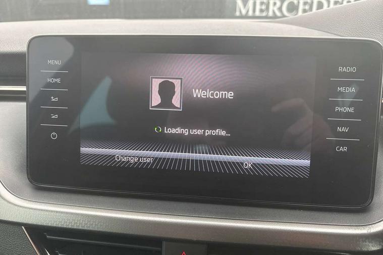Amundsen satellite navigation with 9.2" glass colour touchscreen display, voice control, virtual cockpit, web radio and traffic sign recognition, Bluetooth system, E-call, Front and rear parking sensors, Front assist system, Gesture control, PAS, Rear view camera, Service indicator, Speed limiter, Virtual cockpit with 10.25" display, Wireless SmartLink for apple car play, android auto and mirrorlink, 8 Speakers, Auxiliary input socket, DAB Digital radio, Auto dimming rear view mirror, Body colour bumpers, Body colour door mirrors and handles, Chrome grille surround, Electric folding door mirrors, Electrically adjustable and heated door mirrors, Front and rear electric windows, Headlight range control, Heated rear window, LED rear lights - low functionality, Light sensors, Privacy glass, Rear fog lights, Rear side wing doors, Rear wiper, 12V Accessory socket in centre console, 3 seat bench in 2nd row, Chrome inner door handles, Dual zone climate control, Front head restraints, Glove compartment with illumination, Ice scraper, Isofix child seat fittings on outer rear seats, ISOFIX on front passenger seat, Manual lumbar support for front seats, Rake/reach adjustable steering wheel, Reading lights, Single front passenger seat, Sun visors with illumination on front passenger, Textile floor mats, Third rear headrest, Top tether for front passenger seat, Umbrella in driver's door, 3x3 point rear seatbelts, Airbags - driver and front passenger, ESP, Front passenger airbag deactivation switch, Front side airbags with curtain airbags, Hill hold control, Manual parking brake, Manual rear child locks, One tone horn, Rear disc brakes, Seatbelt reminder for driver an co-driver, Traction control, Tyre pressure monitor, Anti-theft alarm system with interior monitoring, backup horn, towing protection and remote central locking with SAFE system, Anti-theft wheel bolts, Electronic engine immobilizer, Latice curved decorative insert on the dashboard with hot stamping in copper and white ambient lighting white,