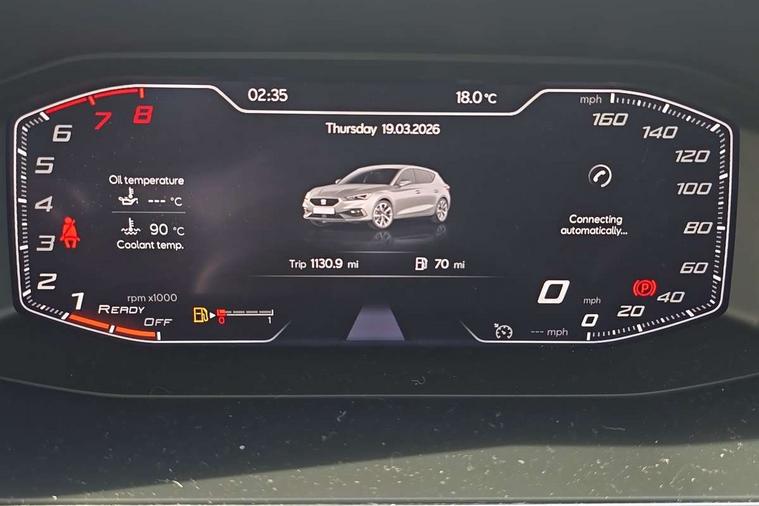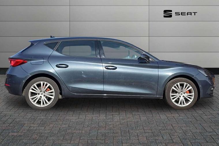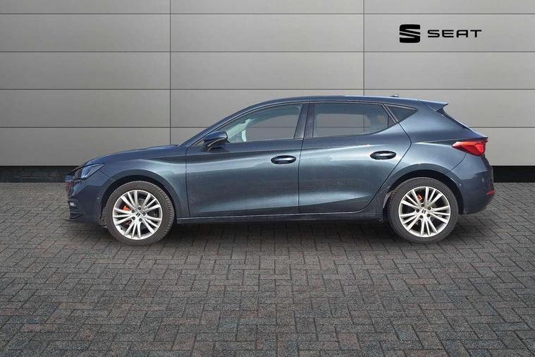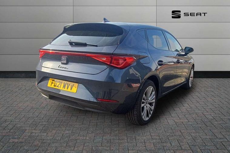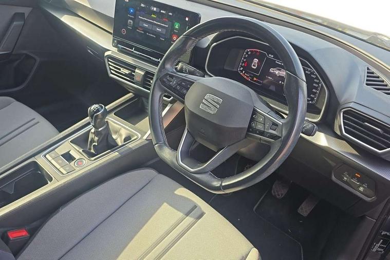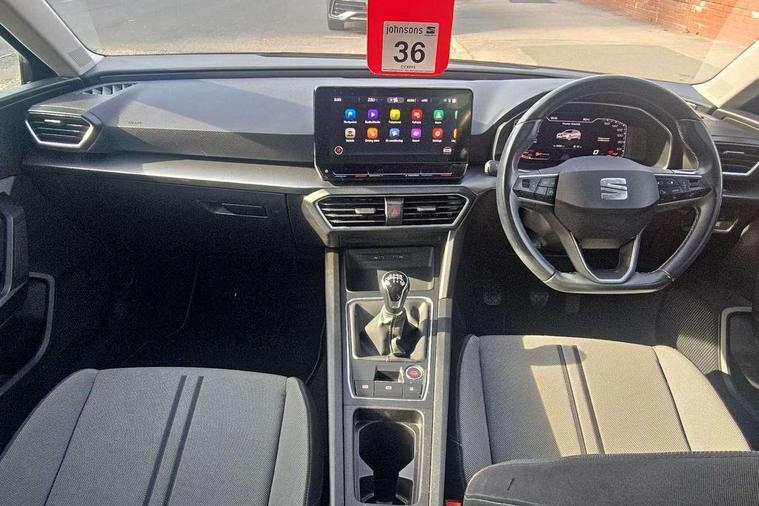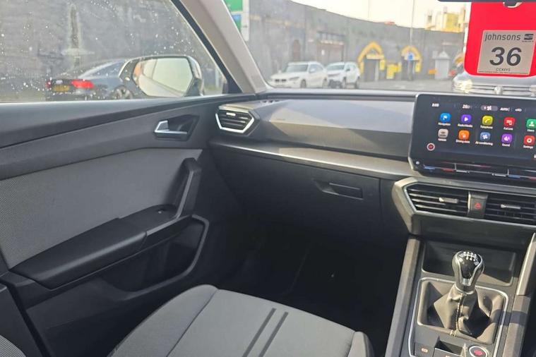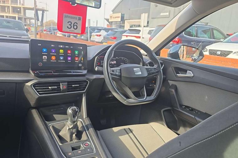 Cruise control with speed limiter, Digital cockpit, Front assist with forward collision warning braking reaction to vehicles, pedestrians and cyclists, Full link smartphone integration with Mirror Link, wireless Apple CarPlay and wired Google Android Auto, Lane keeping system, Lockable tailgate, Park assist (inc front/rear parking sensors), Power assisted speed sensitive electro-mechanical steering, RPM, trip computer, outside temp gauge, instrument light brightness, low fuel warning light, lights on reminder, gearshift indicator, Service interval indicator, Start/stop system with regenerative braking, Standard suspension, XDS electronic differential lock and dynamic traction support, Auxiliary input socket, Body colour door handles, Body coloured bumpers, Body coloured exterior mirrors with integrated LED indicators, Dark tinted rear windows, Electric front/rear windows, Electrically adjustable and heated door mirrors, LED front fog lamps with cornering function, LED headlights and LED tail lights, LED rear fog lamp, Manual dimming rear view mirror, Rear wash/wipe, Separate daytime running light with automatic headlight control, 12v power point in centre console, 60/40 split rear bench seat, Air conditioning, Cloth upholstery, Driver seat lumbar adjustment, Driver/passenger manual seat height adjustment, Dust/pollen filter, Folding boot cover, Front and rear height adjustable headrests, Front and rear reading lights X 4, Front seatback storage pockets, Height/reach adjust steering wheel, Interior lighting with LED lighting in sunvisor, glovebox and rear headlining, ISOFIX points in outer rear seats with top tether anchorage points, Leather flat bottomed, perforated steering wheel and leather gearstick, Luggage tie-down hooks, Sunvisors with covered illuminated mirror, Media system plus with navigation - Leon SE, 3 point seatbelts on all rear seats, ABS, Brake control system - ESC and brake booster, Child proof door locks, Driver and front passenger airbags with front passenger airbag de-activation, front side and curtain airbags, Electronic parking brake, Extended safety system - seat belt tensioner, window closure and hazard lights, Hill hold control, Rear disc brakes, Seat belt reminder for front and rear seats, Tiredness recognition system, driver alert system, Tyre pressure monitoring system, Anti theft alarm system with interior monitoring in cab, backup horn and towing protection, KESSY Go (Keyless start), Locking wheel bolts, Chrome interior detailing, 17" Dynamic tri-spoke alloy wheels with 91W tyres, Tool kit,