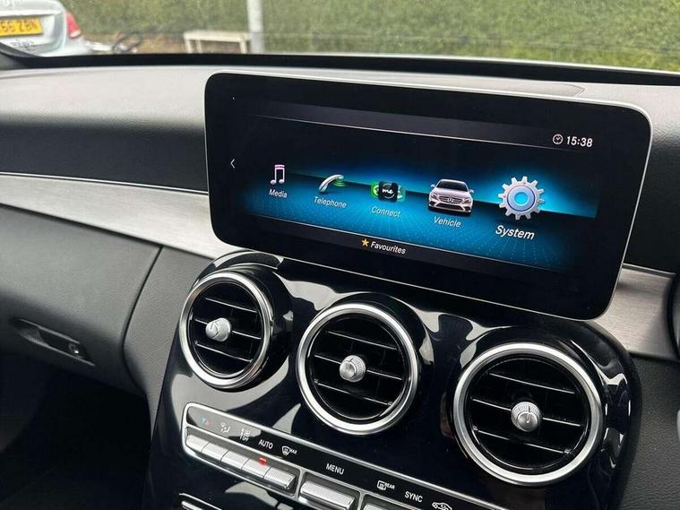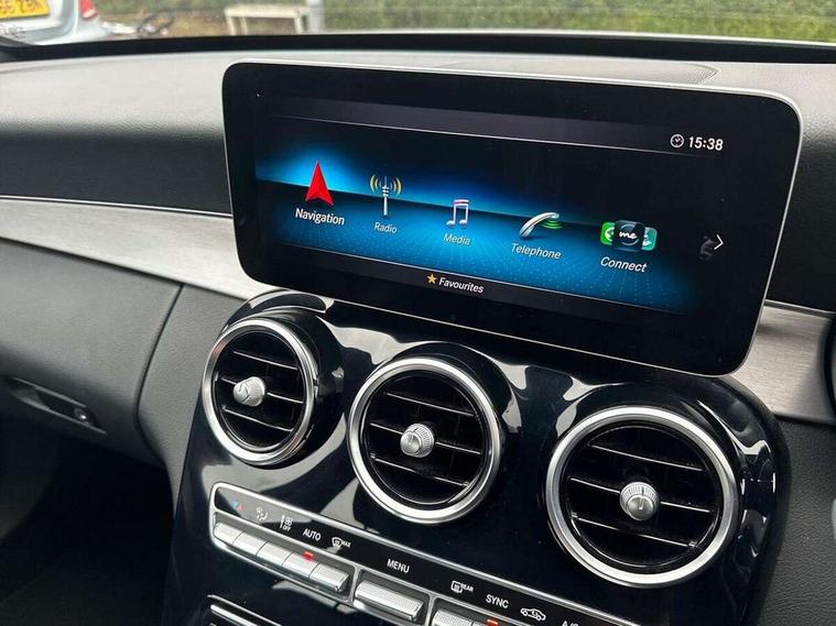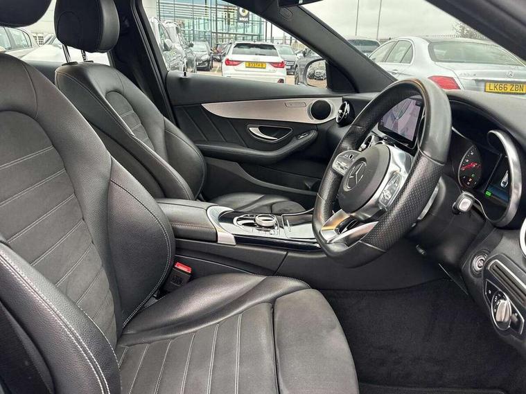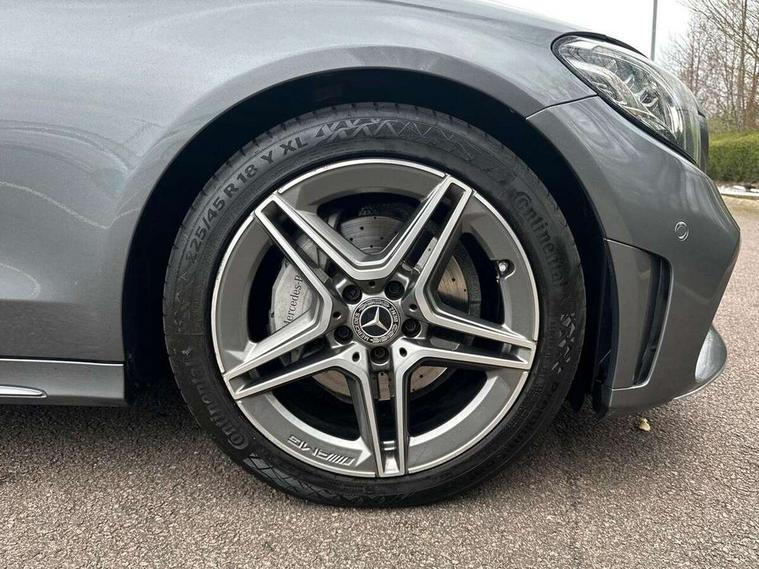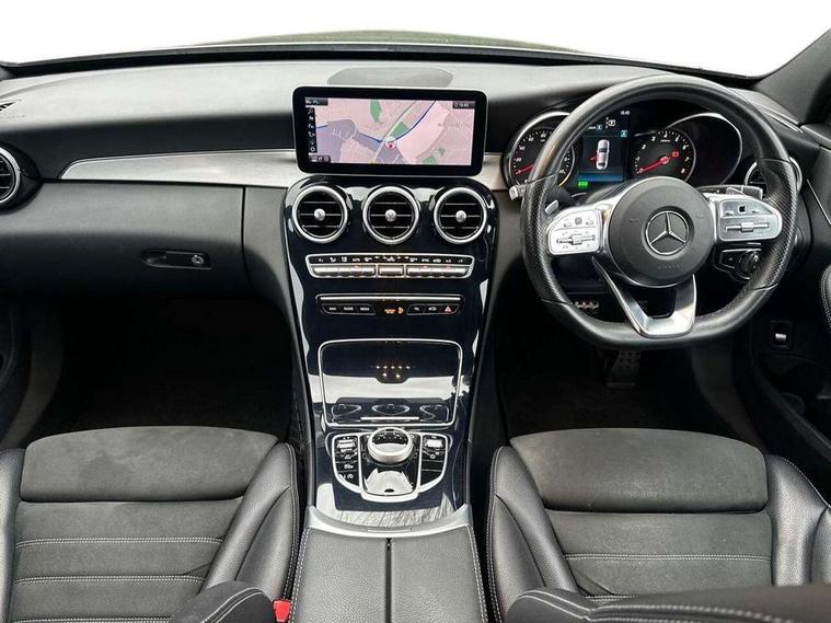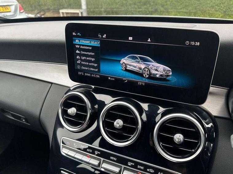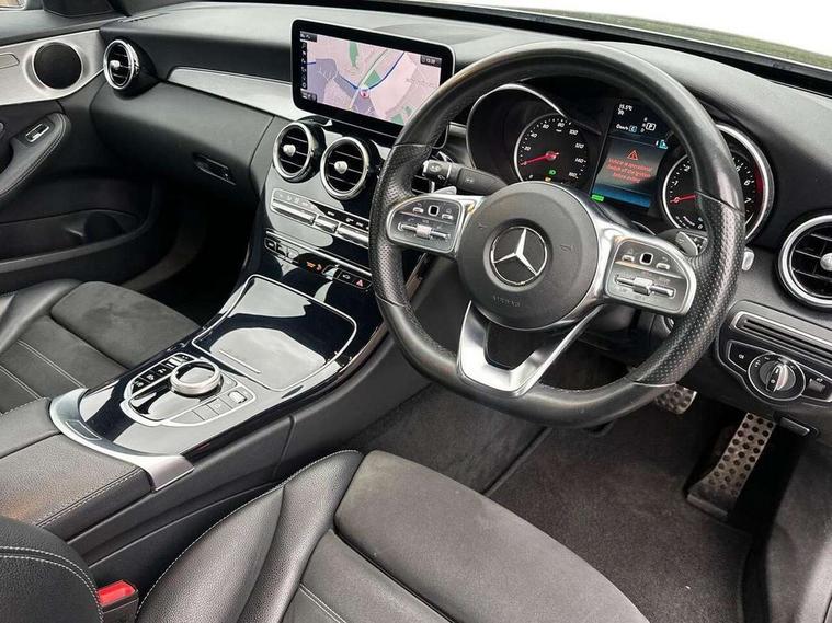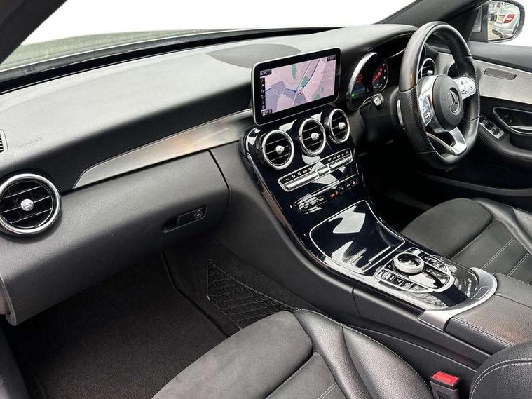10.25" display screen, Active park assist with parktronic system, Attention assist, Bluetooth system, Collision prevention assist plus, Cruise control with speedtronic variable speed limiter, DYNAMIC SELECT with a choice of driving modes (ECO, Comfort, Sport, Sport+ and Individual), Instrument cluster with display, Multi function trip computer, Multifunction colour display, Navigation system, Outside temperature gauge, Pre-wiring for SD navigation system, Remote boot release, Reversing camera, Service indicator (ASSYST PLUS), Speed sensitive steering, Petrol Particulate Filter, 2 USB ports in centre console, DAB Digital radio, Frontbass loudspeakers, Mercedes Audio 20 radio/single CD + telephone keypad, SD card slot, Steering wheel mounted audio controls, Adaptive brake lights, Aerial in rear window, AMG body styling, Body coloured bumpers, Body coloured door mirrors, Chrome pins diamond radiator grille with integrated stars, Electric windows one touch open/close, Electrically adjustable and heated door mirrors, Green tinted glass, Heated windscreen washers, LED daytime running lights, LED Headlights, LED Indicators, LED tail lights, LED third brake light, Rain sensor windscreen wipers, Side windows surround in polished aluminium, Twin exhaust pipes, 2 cupholders in front centre console, 3 spoke flat bottom AMG steering wheel in nappa leather, 40:20:40 split folding rear seats, AMG floormats, AMG sports seats, Auto Mercedes-Benz child seat recognition sensor, Dual zone automatic climate control, Electric front seat height adjustment, Front and rear head restraints, Front centre armrest with storage compartment, Front door sills with Mercedes Benz lettering, Gearshift paddles, Heated front seats, Illuminated glovebox, Multifunction steering wheel, Rear top tether child seat ISOFIX attachment, Sports pedals with stainless steel surfaces and rubber studs, Sunvisors with illuminated vanity mirrors, Lighting pack - C class, Mirror pack - C Class, Seat comfort pack - C Class, Stowage space pack - C Class, 3 rear 3 point seatbelts, ABS with Brake Assist, Active bonnet, Adaptive brake system, Black seat belts, Brake calipers with Mercedes-Benz lettering + perforated brake discs, Child proof door locks, Crash sensor, Drivers knee airbag, Drivers pelvis airbag, Dual stage driver/passenger airbags, Electronic parking brake, ESP with ASR, Front passenger seat occupancy sensor, Front side airbags, Hill start assist, Rear seatbelt warning indicator, Tyre pressure monitoring system, Warning triangle and first aid kit, Window airbags, Alarm system/interior protection/immobiliser, Chrome surround in electric key, Remote central locking, Tyre inflation kit,
