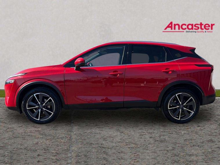 Advanced windscreen head up display, Android auto/Apple CarPlay (Wired), Blind spot warning, Drive modes (sport, normal, eco), Electric speed sensitive power steering, Emergency and breakdown call, Front and rear parking sensors, Full Digital 12.3" TFT Digital Combimeter, Google maps services - search, weather, 3D maps and Google street view, Hands free power tailgate, Idle stop/start system, Intelligent around view monitor, Intelligent Cruise control (ICC), Intelligent driver alert system, Intelligent forward collision warning, Intelligent lane intervention, Lane departure prevention, Lane departure warning system, Lane keep assist, Moving object detection, Nissan connect 12.3 inch touchscreen infotainment system, Nissan connect navigation, ProPilot, Push button starter, Rear cross traffic alert, Rear view camera, Remote control services - door locks, lights, horn and car locator, Telematics - notifications and connectivity services, TomTom live traffic services, Traffic jam pilot, Traffic sign recognition with legal speed adjustment, Trip computer, Virtual personal assistant and firmware over the air capability, Wireless apple carplay, Wireless charging pad, 6 speakers, AM/FM audio system with DAB, Bluetooth audio streaming, Front USB connections (Type-A and Type-C), Rear USB charging only ports (Type-A and Type-C), Auto dimming rear view mirror, Auto rear wiper when reversing, Automatic hazard signal with emergency stop signal, Body colour mirror caps, Body coloured door handles, Bodyside mouldings, Chrome side window finisher, Door handle with button, Electric auto folding door mirrors, Electrically adjustable and heated door mirrors with LED turn indicator, Follow me home headlights, Front and rear LED turning signals, Headlights auto levelling system, Intelligent auto headlights, LED daytime running lights, LED headlights with adaptive driving beam, LED rear lights, One touch front and rear electric windows with remote opening and closing, Partially body coloured bumpers, Privacy glass, Rear bumper with graphite insert, Rear reversing light (bulb lighting), Rear roof spoiler, Rear side wing doors, Rear styling plate, Shark fin antenna, Splash free rain sensing wipers, Super UV and infrared cut glass, Thermaclear heated windscreen, Three blink turn signal, 12v power socket in dashboard and luggage, 2x Rear coat hooks, 3 bench rear seats in 2nd row, 3 rear headrests, 4 folding assist grip, 6 Luggage hooks - 4 on floor, 2 on side, 60/40 split folding rear seat bench, Ambient lighting around centre console, Ambient lighting in front doors, Centre console storage tray, Chrome interior door handles, Cloth/syntech leather monoform upholstery, Dark black/blueish PVC wrapping, Dark headlining, Driver and front passenger sunvisors with illuminated vanity mirrors, Driver seat back pocket, Dual zone automatic climate control with pollen filter, Electrically adjustable driver seat, Electrically adjustable lumbar support for driver, Front and rear door storage, Front centre console and armrest, Front cupholders x 2, Front door with bottle holders, Glovebox with light, Hard trunk cover, Heated front seats, Heated steering wheel, Height adjustable driver's seat, Height adjustable front headrests, Height adjustable passenger seat, Leather steering wheel, Luggage board system, Luggage space lighting, Manual lumbar support on passenger seat, Manually adjustable passenger (slide recline + lifter), Multifunction steering wheel, Passenger seat back pocket, Rear armrest with 2 cupholders, Rear door bottle holders, Single front passenger seat, Soft PVC kneepad, Steering wheel gearshift paddles, Steering wheel switches, Tilt/telescopic adjustable steering wheel, Two rear isofix child seat anchorage points with top tether, Welcome light and doors with console tray ambient lighting, Glass roof pack with roof rails - Qashqai, 3x3 point rear seatbelt pretensioners + load limiters, ABS with EBD and brake assist, Active brake limited slip, Auto hold function, Child locks on rear doors, Curtain and front side, far side airbags, Driver and passenger airbags, Driver, passenger and 2nd row rear seat belt reminder, Electronic parking brake, Front seatbelt pretensioners + load limiters, Height adjustable front seatbelts, Hill start assist, Intelligent blind spot intervention, Intelligent front emergency braking with pedestrian, cyclist recognition and junction assist, Intelligent rear automatic braking, Tyre pressure monitoring system, Vehicle dynamic control, Capless fuel filler, Engine immobiliser, Intelligent Key, Remote central door locking with deadlocking, Thatcham Cat.1 alarm, Interior instrumental panel C finisher, 19" Alloy wheels, Tyre puncture repair kit,