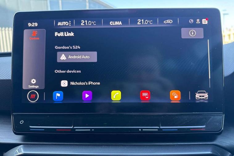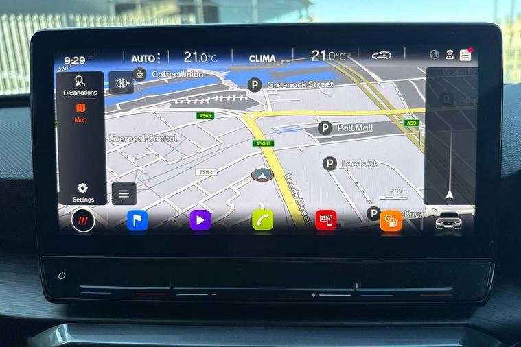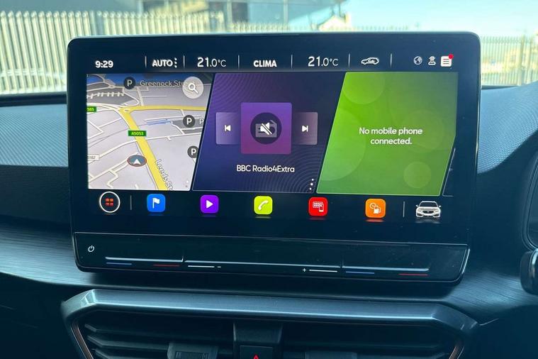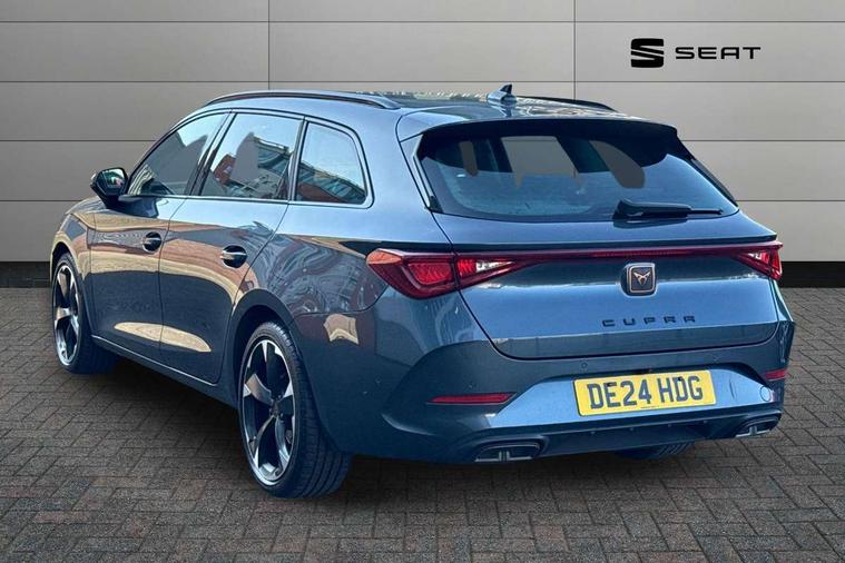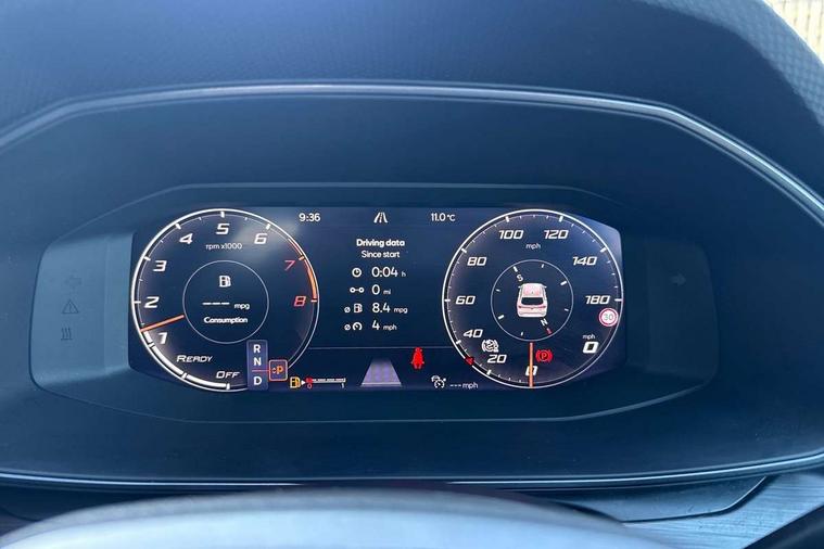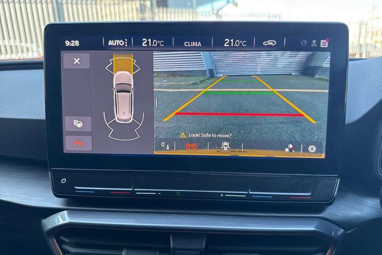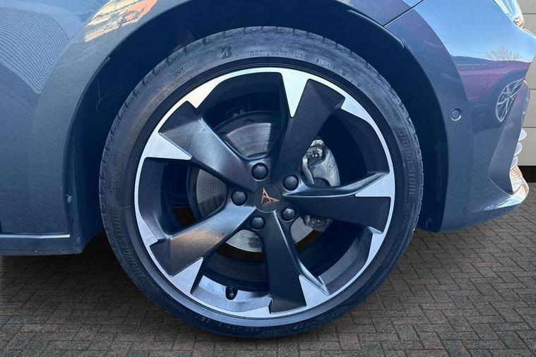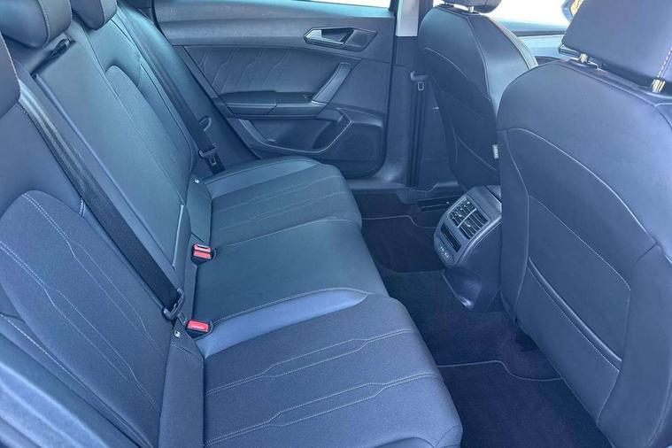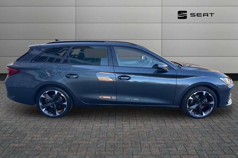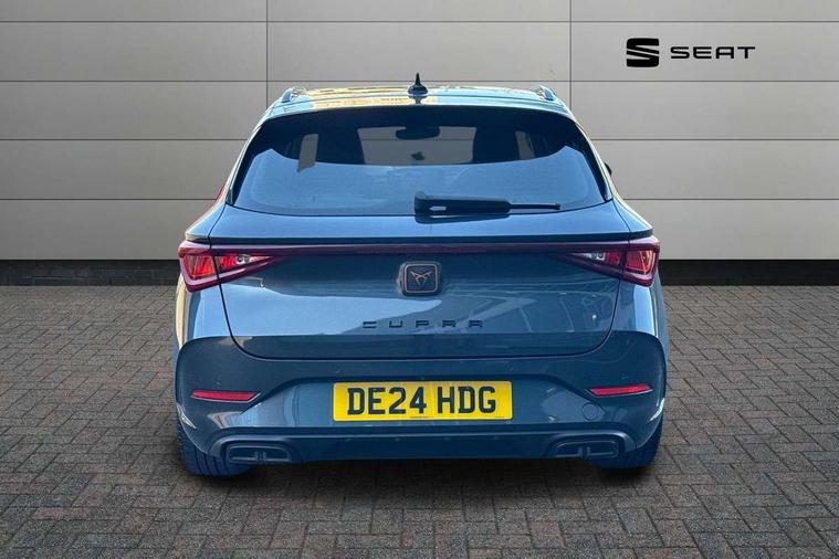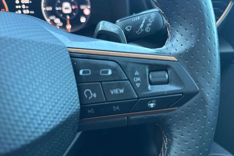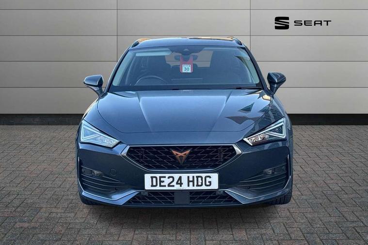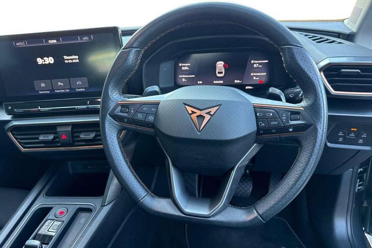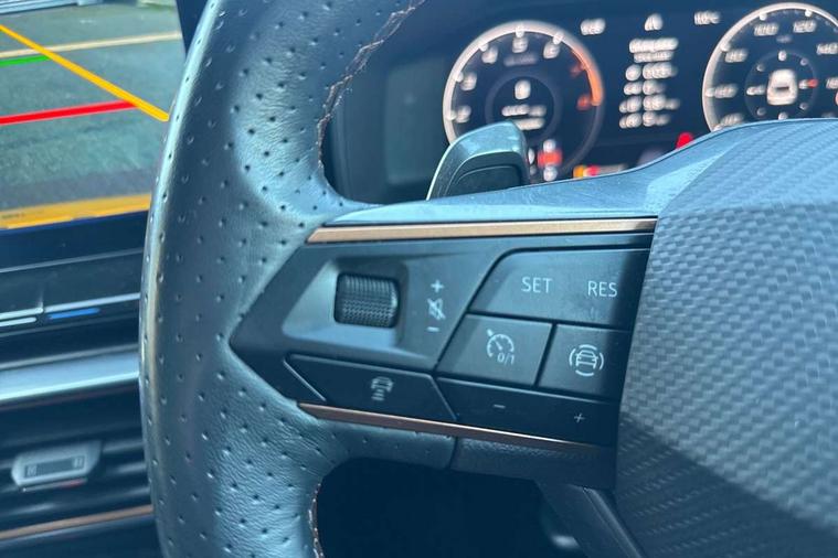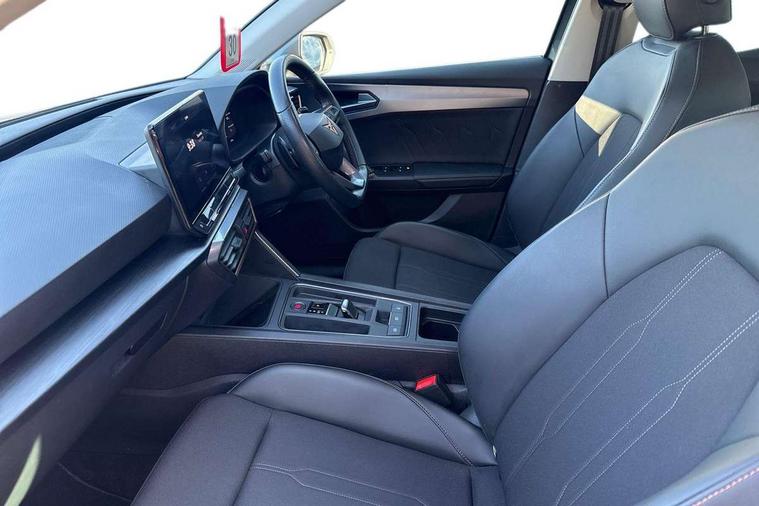 CUPRA drive profile selection with (Comfort/Sport/Individual), throttle response and gearshift mode, Digital cockpit, E-call, Electro mechanical speed sensitive power steering, Front assist with forward collision warning braking reaction to vehicles, pedestrians and cyclists, Full link smartphone integration with Mirror Link, wireless Apple CarPlay and wired Google Android Auto, Lane assist, Lockable tailgate, Park assist (inc front/rear parking sensors), Rear view camera, RPM, trip computer, outside temp gauge, instrument light brightness, low fuel warning light, lights on reminder, gearshift indicator, Service interval indicator, Start/stop system with regenerative braking, Wireless phone charger, Sports suspension, Auxiliary input socket, Auto dimming rear view mirror, Body colour door handles, Body coloured bumpers, Cupra sports bumpers, Dark tinted rear windows, Electric front/rear windows, Electrically adjustable, heated and folding door mirrors, Gloss black roof rails, LED front fog lamps with cornering function, LED headlights with dynamic turn signals, tail lights, rear fog lights with rear coast to coast lighting, Rain sensing wipers, Rear diffuser with twin exhaust pipe on each side, Rear side wing doors, Rear wash/wipe, Separate daytime running light with automatic headlight control and coming home feature, Third brake light, 12v power supply in centre console, 12v socket in loadspace, 3 seat bench in 2nd row, 5 headrests, 60/40 split rear bench seat with armrest, Ambient lighting with glovebox, footwell and single monocolour, CUPRA Leather flat bottomed, heated, perforated steering and gearshift paddles, Driver/passenger manual seat height adjustment, Four x USB Type C ports (2 in front and 2 in rear), Front and rear reading lights X 4, Front centre armrest, Front seats manual lumbar adjustment, Grey headlining, Height/reach adjust steering wheel, Illuminated interior front door sills, ISOFIX points in outer rear seats with top tether anchorage points, Jack and tool kit, PVC/Cloth upholstery with copper stitching, Single front passenger seat, Sliding boot cover, Sports seats, Storage pockets on rear of front seats, Sunvisors with illuminated mirror, Three zone climate control, Media system plus with navigation pack - Leon Cupra, Safety and driving pack (M) - Cupra leon, 3 point seatbelts on all rear seats, ABS, Brake control system - ESC and brake booster, Child proof door locks, Cupra black brake calipers, Driver and front passenger airbags with front passenger airbag de-activation, front side and curtain airbags, Electronic parking brake, Extended safety system - seat belt tensioner, window closure and hazard lights, Hill hold control, Rear disc brakes, Seat belt reminder for front and rear seats, Tiredness recognition system, Tyre pressure monitoring system, Anti theft alarm system with interior monitoring in cab, backup horn and towing protection, KESSY Advanced - Keyless start, keyless entry, Locking wheel bolts, Chrome and copper interior detailing, 18" Machined sport black and silver alloy wheels with 92Y tyres,