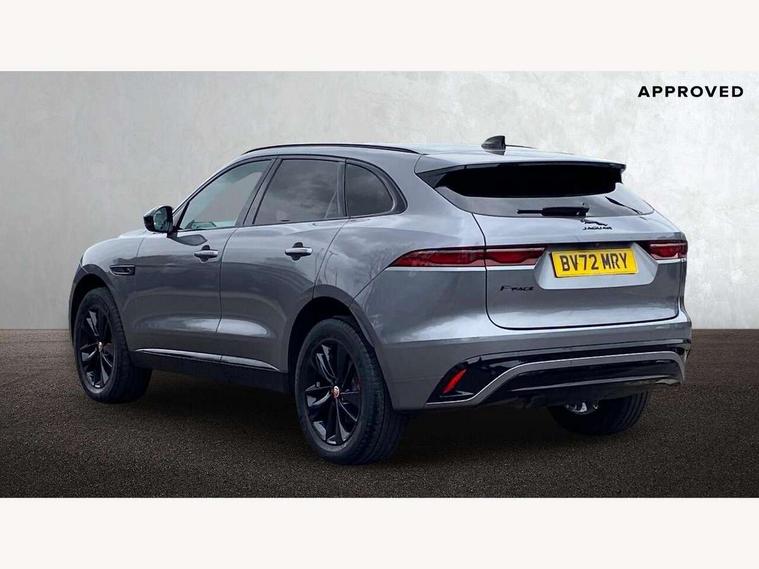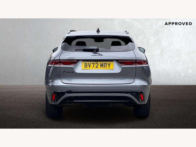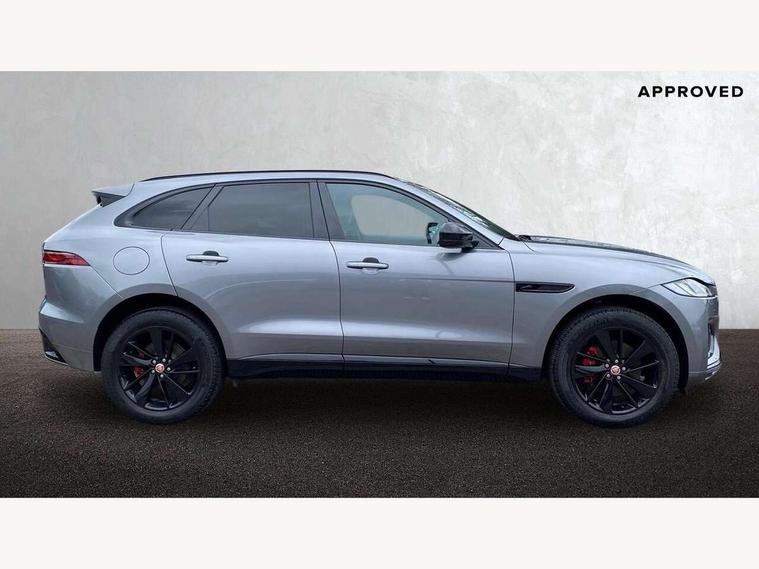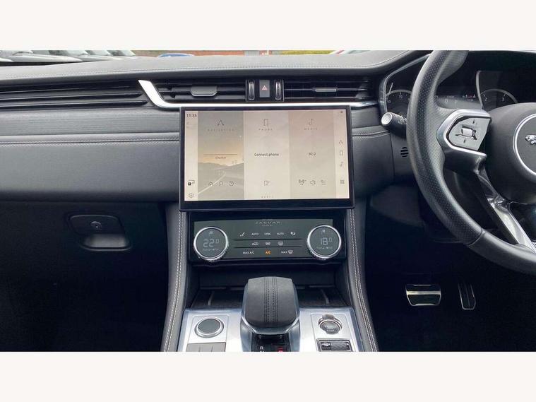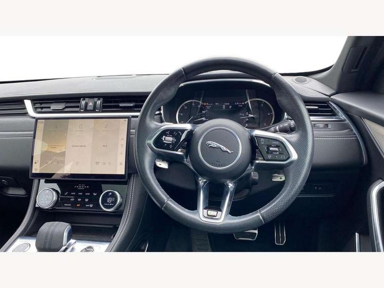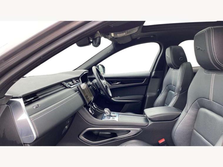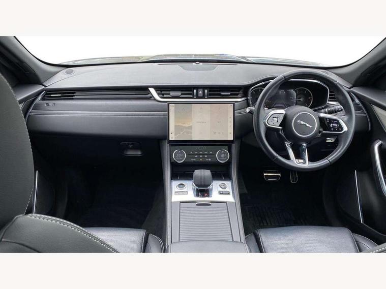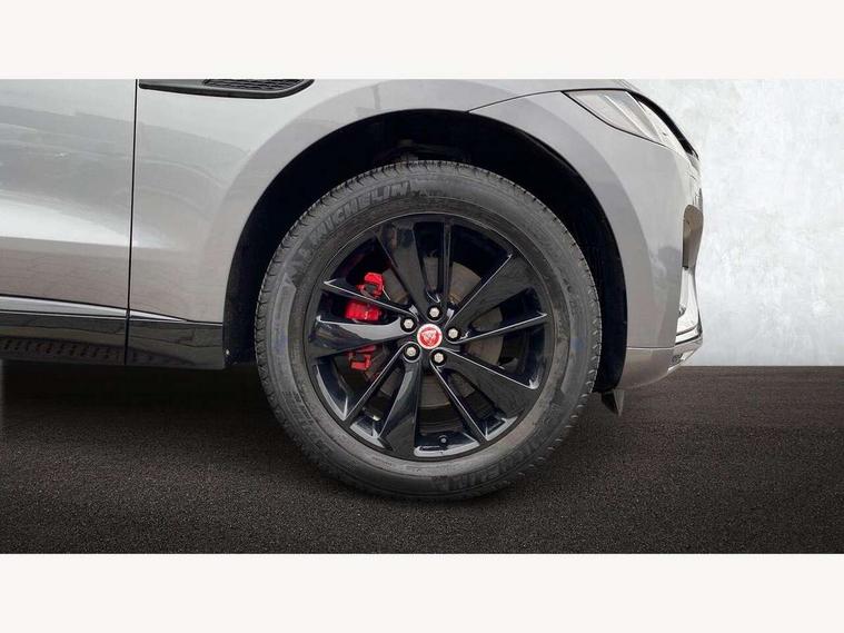 11.4" touchscreen, Android Auto, Apple car play, Bluetooth connectivity, Driver alert system, Driver condition monitor, eCall emergency call system, Eco driving style assistant, Electric power assisted steering, InControl remote, Jaguar Toggle shift selector, Lane departure warning system, Lane keep assist, Outside temperature gauge, Personalisation profile management, Pivi pro connected navigation system with app interface and media storage, Pro services and wifi hotspot, Push button starter, Service interval indicator, Speed proportional steering, Start up sequence with movement in dials and lighting, Traffic sign recognition with adaptive speed limiter, Trip computer, Voice control system, 8 speed automatic transmission, All terrain progress control, All Wheel Drive (AWD), Open differential with torque vectoring by braking, AM/FM radio, Bluetooth streaming, DAB Radio (Digital Audio Broadcasting), Dynamic volume control, InControl apps, InControl protect, iPod integration, 3 flash lane change indicators, Animated directional indicators, Approach Illumination, Auto dimming rear view mirror, Automatic headlights, Electric windows with one touch open/close and anti trap, F-Pace and R Dynamic badge, Gloss black door mirrors, Gloss black roof rails, Green tinted glass, Heated front windscreen + heated washer jets, Heated rear window with timer, Jaguar script and leaper, LED High level third brake light, LED tail lights, Non acoustic front windscreen, Privacy glass, R Dynamic badge on side door, Rain sensor windscreen wipers, Rear fog lights, Rear metal tread plates, Rear side wing doors, Rear wiper, Trailer stability assist, Variable front intermittent wipers, 12V power point front, 3 rear headrests, 3 seat bench in 2nd row, Air distribution speed, Bright metal foot pedals, Centre armrest console, Centre console with side storage, Deletion loadspace storage rails, Door sill tread plates, Fold flat front seats, Front centre armrest with storage compartment, Front door storage space, Glovebox finisher with jaguar script, Heated steering wheel, Hooks in loadspace, Illuminated glovebox, Interior front door handles with separate locking switches, ISOFIX on outer rear seats, Jaguar sense, Luggage tie downs in loadspace, Mist sensing, Multifunction steering wheel, Overhead lighting console, Overhead stowage for sunglasses, Passive front head restraints, Premium cabin lighting, Premium carpet mats, R-Dynamic branded leather steering wheel, Rear air vents, Rear armrest with twin cupholders, Rear centre headrest, Rear door storage space, Reversible boot floor, Satin chrome gearshift paddles, Shopping bag hook, Single front passenger seat, Sunvisors with illuminated vanity mirrors, Twin front cupholders with cover, Black Exterior pack - F Pace R-Dynamic/Sport, Exterior pack - F Pace R-Dynamic, Online Pack with data plan - F-Pace, 355mm front brakes and 325mm rear brakes, 3x3 point rear seatbelts, ABS, All surface progress control (ASPC), Brake pad warning light, DSC - Dynamic Stability Control, Electric parking brake (EPB), Emergency brake assist, Front airbags with passenger seat occupant detector, Front and rear seatbelt reminder, Front side airbags, Full length side window curtain airbag, Hill launch assist, Power operated child locks, Torque vectoring brake, Traction control, Tyre pressure monitoring system, Immobiliser, Keyless start, Locking wheel nuts, Perimeter alarm, Remote central locking, Valet mode,