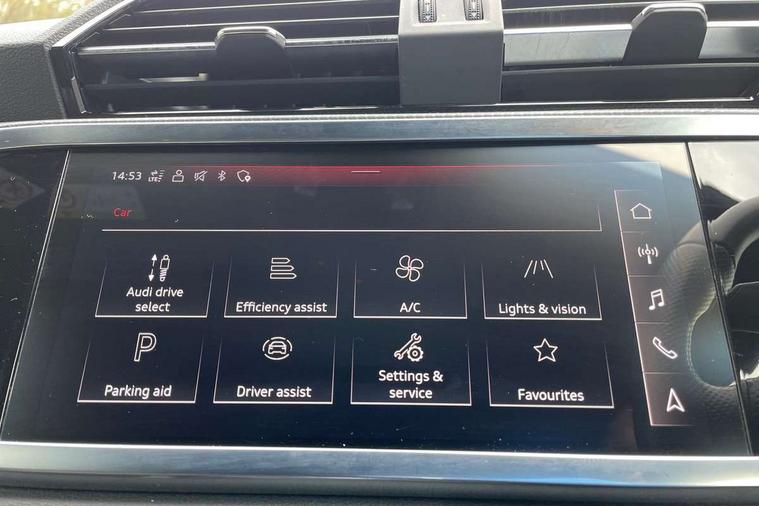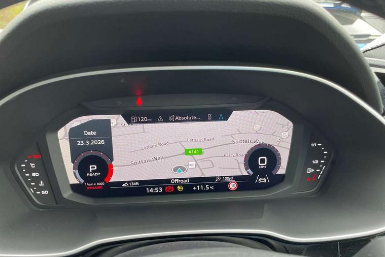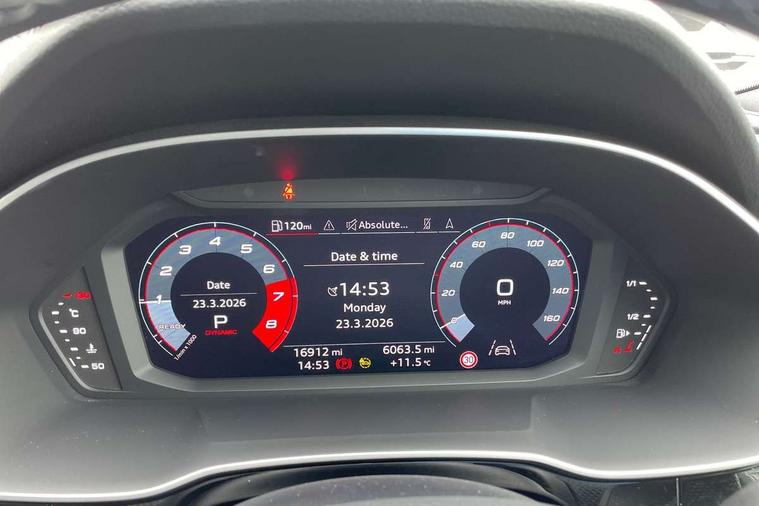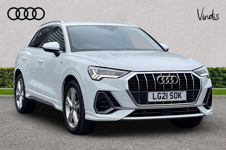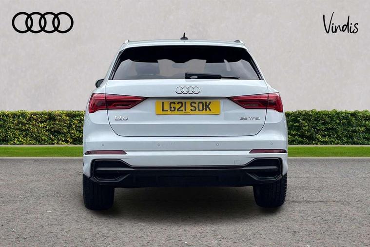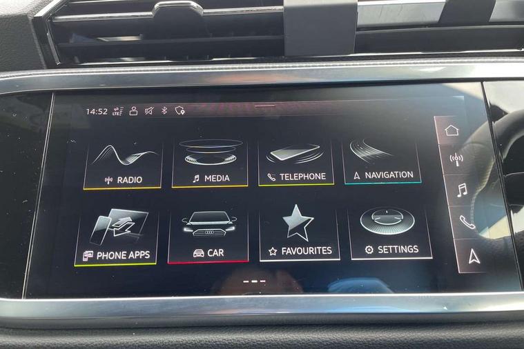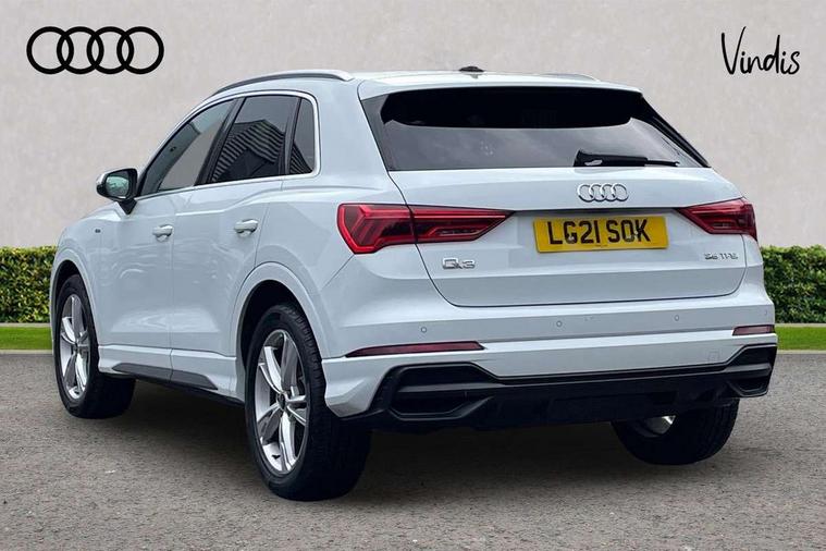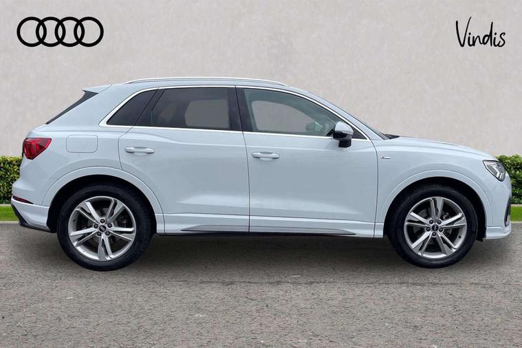 Amazon alexa Integration, Audi connect safety and service (e-call), Audi drive select, Audi lane departure warning, Audi Virtual Cockpit - 10.25" display, Bluetooth interface, Camera based traffic sign recognition, MMI Navigation Plus with high resolution 10.1 inch touchscreen colour display, Power operated tailgate, Progressive steering, Service interval indicator, Smartphone interface includes wireless Apple carplay/Android Auto, Start stop system with recuperation, Voice control system with natural language interaction, 48V Mild hybrid technology, Sports suspension, 2 USB-C ports with charge and data functions, 6 passive loudspeakers, DAB digital radio module, Acoustic windscreen, Aluminium roof rails, Aluminium window trim, Auto dimming frameless rear view mirror, Body coloured bumpers, Electrically folding, adjustable and heated door mirrors with integrated LED side indicators and kerb view function for passenger side, Front and rear electric windows, Front fog lights, Front side air inlets in matt platinum grey, Front spoiler blade in matt platinum grey, Grille vertical bars in aluminium silver/Matt, High gloss black finish B and C pillars, LED headlights with LED daytime running lights and dynamic rear indicator, LED rear lights, Privacy glass dark tinted rear and rear-side windows (from B-pillar backwards), Rain and light sensors, Rear diffuser strip in matt titanium black, S line badges on front wings, S Line front and rear bumpers, Side skirt insert in matt Platinium grey, Silver chrome grille surround, Titanium black radiator grille, 12V socket in rear centre console, 40:20:40 folding with manual adjustment for 60:40 forwards/backwards position and backrest angle, Adjustable rear seat bench/backrest with centre armrest and cupholder, Black cloth headlining, Dual zone electronic climate control, Front and rear black floor mats with contrast stitching in rock grey, Front and rear headrests, Front and rear roof module including reading lights, Front centre armrest, Glove compartment lighting, Height and reach adjustable steering wheel, Illuminated door sill trims with S logo, ISOFIX child seat mounting for front passenger with airbag deactivation and outer rear seat including top tether attachment point for outer rear seats, Luggage compartment light, Manual front seats with height adjustment, Perforated leather gearknob, Stainless steel luggage compartment sill finisher, Stainless steel pedals, Non smoking pack - Q3, 3x3 point rear seatbelts, 6 airbags - Driver, front passenger, curtain and side windows, Audi pre-sense front with pedestrain and cyclist recognition, Electrically operated child locks on rear doors, Electromechanical parking brake, Electronic stabilisation control including ABS, ASR and EDL, Hill descent control, Hill hold assist, Pre sense basic, Seatbelt monitoring, Tyre pressure warning, Warning triangle and first aid kit, Anti theft alarm, Anti theft wheel bolts, Remote central locking, Dark matt brushed aluminium inlay, Detail dashboard around MMI touch colour display in glass look, black with surround in aluminium look, Leatherette door armrest, Tool kit, Tyre repair kit,