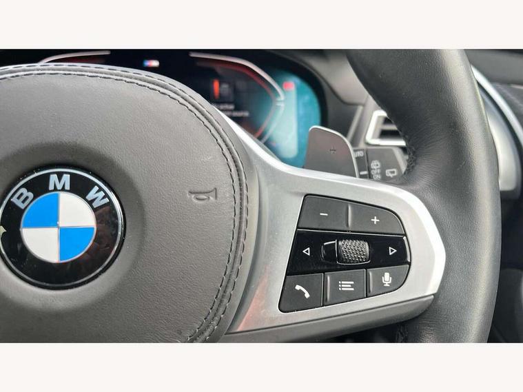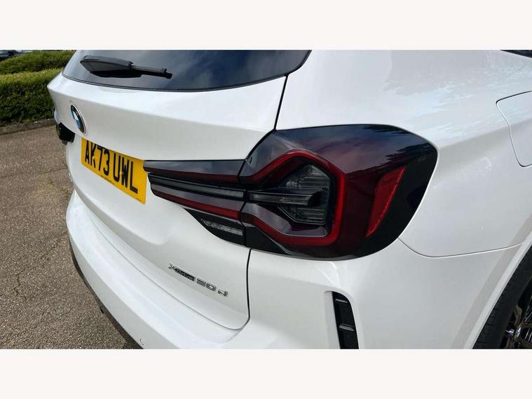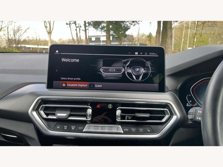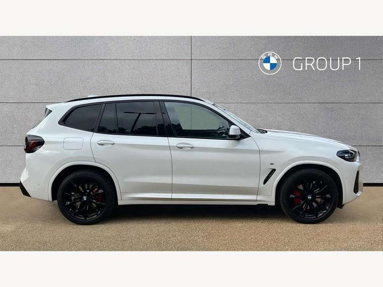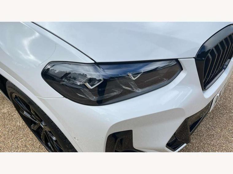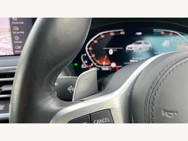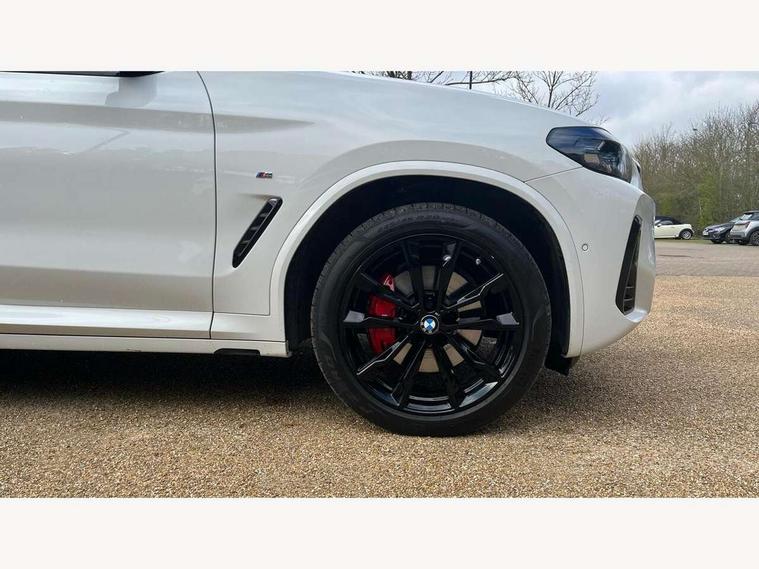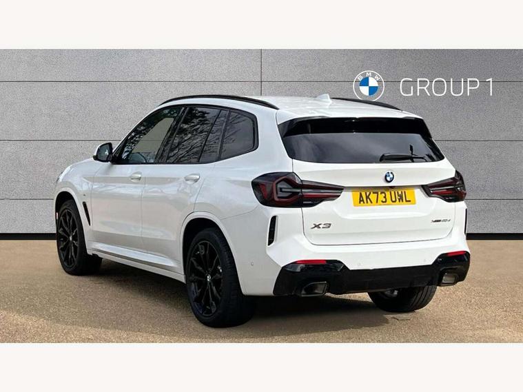 Active Guard, Attentiveness assist, BMW Live Cockpit Professional nav system including 12.3" instrument display + 12.3 high resolution control display, BMW Online services, BMW Teleservices, Brake pad wear indicator in front and rear, Check Control warning system for monitoring of lights and door/luggage compartment open warning, Condition based service - BMW service history, electronic service booklet, integrated owner's handbook, Connected drive services, Electric boot lid, Front/rear Parking distance control, iDrive touch controller with 8 favourite buttons, Instrument cluster with speedometer with mph readout, tachometer, fuel gauge and oil temperature gauge, Lights on warning by audio warning signal when ignition is switched off, Oil sensor for level and grade, warning by check control system, On board computer - average speed+fuel consumption, service interval, clock/date, odometer/trip meter, outside temperature display and ice warning, Optimum shift indicator, Personal Profile - automatic lock when driving away selectable, Run flat indicator, Stop/start system, Variable sports power steering with drive performance control Sport+ mode, Automatic transmission with gearshift paddles, Diesel particulate filter, Incorrect fuelling protection, Larger capacity fuel tank, M sport suspension, Multi-link rear suspension, BMW professional radio/CD/MP3, DAB tuner, Acoustic glazing, Automatic windscreen wipers and automatic headlight, Black finish on B pillars, Body colour door handles, Body colour electric adjust heated aspherical door mirrors, Body colour roof mouldings, Body coloured bumpers, Direction indicator, side repeaters, integrated in exterior mirrors, Dynamic brake lights, Exhaust tailpipes - dual, round, split left and right with chrome finisher, Fingertip control / anti-trap function on electric window, Folding wing mirrors with auto dimming, Follow me home headlights, Front and rear bumper system with replaceable deformation elements, Front and rear electric windows, Gloss chrome tailpipes finishers, Green tinted heat insulating glass, Heated windscreen washer jets, High beam assistant, High gloss black shadow line roof rails, High gloss shadowline exterior trim in decorative moulding side frame/recess cover/guide rail/B, C pillars/mirror frame and triangle with mirror base, High level 3rd brake light incorporating LED Technology, Interior rear view electrochromatic mirror with automatic anti dazzle function, LED tail lights, Lightweight engineering, M aerodynamic bodystyling, M Sport entry door sill strips, Model designation, Rain sensor, Rear side wing doors, Rear wing door, Rear wiper, Shark fin antenna, Side exterior M designation badges, Visible VIN plate, Welcome lighting, Windscreen wipers with adjustable interval, 12V power point in luggage area, 12V power socket in front centre console, 2 x USB Type C ports for charging and data transmission (front centre console) and 2 x USB Type C ports for charging (rear centre console), 3 rear headrests, 3 seat bench in 2nd row, 3 zone automatic air conditioning, 4 lashing points to secure luggage, 40:20:40 split folding rear seat with loading system, Ambient lighting, Anthracite headlining, Automatic interior light when door is opened/ignition switched off or via remote key, Floor mats in velour, Foldable storage floor with compartment, Four grab handles integrated in roof lining, Front and rear bottle holders integrated into door trim storage compartments, Front and rear side armrests integrated into door trim, Front centre armrest with storage compartment, Front footwell lights, Front head restraints, Front passenger seat, Front sports seats, Front/rear courtesy lights with soft on/off dimming, Front/rear reading lights, Heated front seats, Isofix rear child seat preparation, Leather gear knob, Lockable glove compartment, Luggage area underfloor compartment, Luggage compartment lighting, M sport leather steering wheel, Multifunction steering wheel, Parcel shelf removeable and storable under boot floor, Reach and rake adjustable steering column, Rear centre armrest with 2 cupholders, Removable / retractable luggage cover, Slope adjustable rear seats, Storage compartment in rear centre console and front/rear door trims, Sun visors with vanity mirrors and ticket pocket, Toolkit located in luggage compartment, Two front cupholders with removable oddments tray/lid, Connected pro pack - X3, ADB - Automatic Differential Brake, Anti-lock braking system (ABS) with brake assist, Automatic Stability Control (ASC), Battery safety cut-off, BMW emergency call, Brake drying, Brake energy regeneration, Braking pre-tensioning, Child locks on rear doors, Cornering brake control (CBC), Crash Sensor - activation of central locking release, hazard warning light and interior lighting, Deactivation of fuel pump in the event of a crash, Driver and front passenger front and side airbags with passenger deactivation and ITS front and rear head airbags, Driver and front passenger knee airbag, DSC+, Dynamic brake control, Dynamic Traction Control - DTC, Electromechanical parking brake, Hill descent control, Hill start assist, Seatbelt security check for front seats, Side impact protection, Three point seatbelts to all seats with front and outer rear pyrotechnic belt tensioners and seat belt force limiters, Two tone horn, Tyre pressure sensor, Ventilated front and rear disc brakes, Warning triangle and first aid kit, Central locking switch for all doors, fuel filler cap and luggage compartment, Electronic engine immobiliser, Locking wheel nuts, Remote control including two integrated key - one button for open/close all lockable content, windows and separate button for open luggage compartment, Remote control Thatcham category 1 alarm, Start/stop button with Comfort Go keyless engine start and auto Start/stop deactivation button, Low rolling resistance tyres,