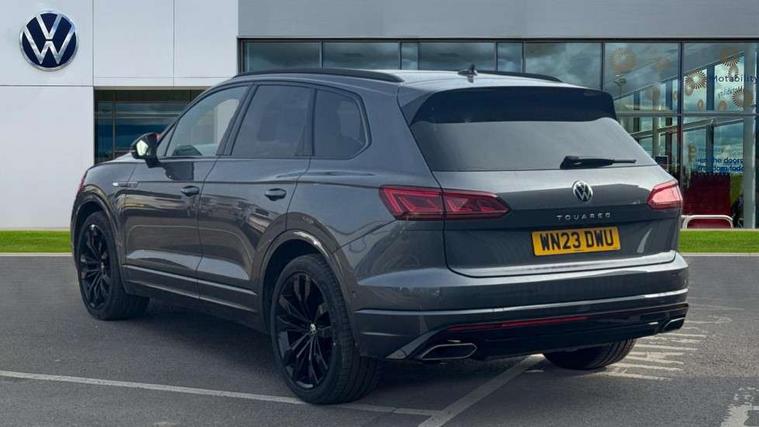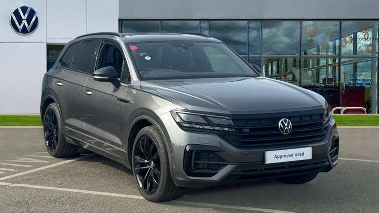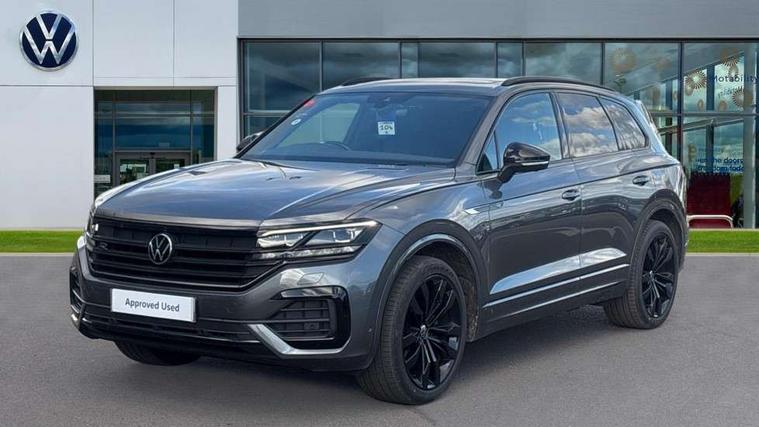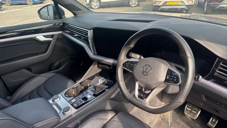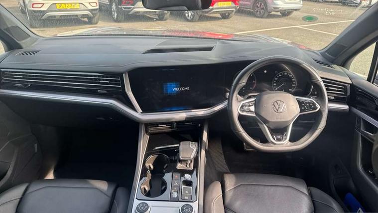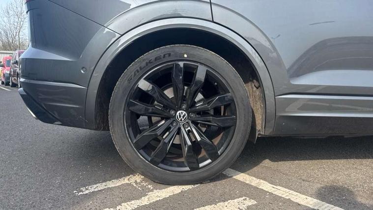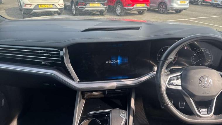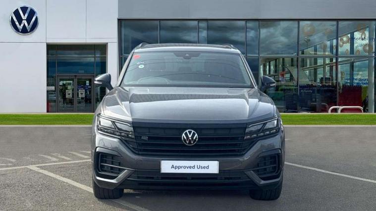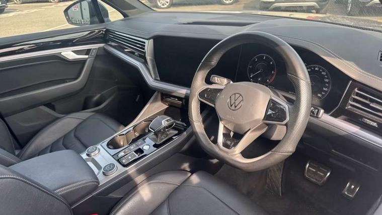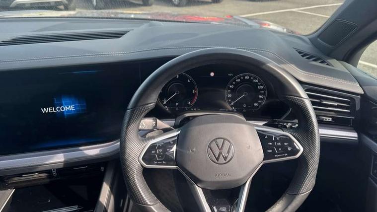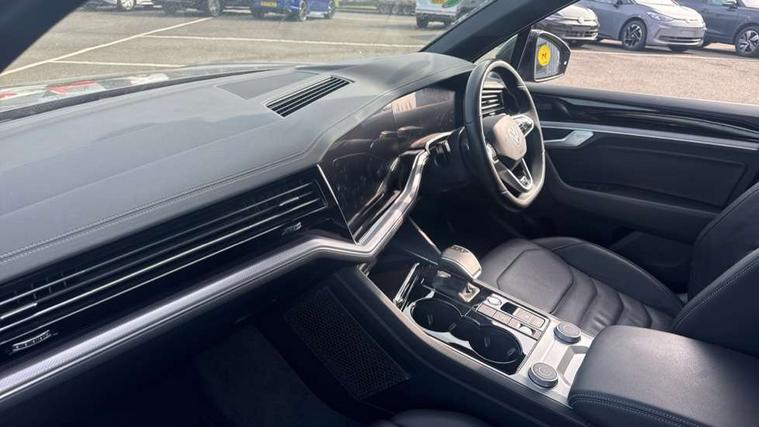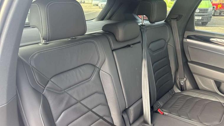 2D/3D map view, ACC - Adaptive cruise control with front assist, forward collision warning, distance monitoring, city emergency brake and speed limiter, Apple car play/Android Auto, Audible and visual fatigue detection system, Bluetooth hands free telephone connection, Car information display, Drive select with Damper control, Driver alert system, Driver profile selection, Dynamic road sign display camera controlled system with visual warning for traffic and road signs, eCall emergency system, Fully electric tailgate + keyless entry and start, Instrument cluster, MirrorLink, Multifunction camera, Multifunction computer premium with 7" colour display, One touch indicators with repeat function, Service interval indicator, Speed sensitive power steering, Start/stop system with regenerative braking, Tailgate power latch, Think blue trainer driver tips and journey analysis, Traffic sign recognition, Voice control system, Wireless Smartphone charger, 24 litre AdBlue tank, Torsen limited slip differential, DAB Digital radio, Dynamic navigation based on TMC+, Gesture control for infotainment system, Multi device interface (MDI) with illuminated USB-C connection, Music playback - MP3, WMA and AAC files, SD card slot, Simultaneous pairing of 2 compatible mobile devices, SMS functionality - read, compose and send SMS messages using touch-screen display, Title and cover art display, Volkswagen media control, Adaptive low beam for urban and motorway use, Auto dimming rear view mirror, Automatic coming/leaving home lighting function, Automatic headlights, Black anodised roof rails, Black door mirrors, Black rear diffuser, Black side window surrounds, Black upper and lower grille louvres extending into headlights and radiator grille, Body colour door handles, Body coloured wheel arches, C signature gloss black front air intake, Chromed tailpipe on the left and right integrated in the bumper with trapezoid design, Dusk sensor, Dynamic headlight range control, Electric front tilt/slide panoramic sunroof and fixed rear sunroof, Electrically power adjustable, heated, folding, auto dimming, front passenger exterior door mirror lowering function, Front and rear electric windows, Galvanised body, Gloss black finish B pillar, Gloss black rear diffuser, Headlight washers, Heat insulating darkened glass in side and rear windows, Heated windscreen washer jets, IQ.Light-LED matrix headlight, daytime running light with dynamic cornering light and indicator, LED 3rd brake light, LED rear fog light, LED rear number plate lights, Plastic scuff plates in door apertures, Poor weather light, Puddle lights, Rain sensor, Rear side wing doors, Rear wiper, 12V socket in front and rear centre console and boot, 2 Coat hooks on B pillar, 3 rear head restraints, 3 seat bench in 2nd row, 3 spoke sport heated leather multi-function sports steering wheel with gear shift paddles - generation 2, 4 way adjustable front head restraints, 4 way electric lumbar support for driver and front passenger, 4 zone climate control, 40:20:40 split folding slide/recline rear seat, B pillar vents, Black lower edge of door extending sills, Branded points of interest, Double sun visor for drivier and passenger with LED illuminated vanity mirrors, Electric luggage compartment cover, Folding rear centre armrest with 2 cupholders, Front + rear carpet mats, Front centre armrest with storage box, Gear shift indicator, Height/reach adjust steering wheel, Illuminated air conditioned glovebox, Isofix preparation for 2 rear child seats, Jack and tool kit, Leather trimmed gear knob with gloss black inlay/aluminum trim, Leatherette door trim, LED luggage compartment lighting, Load through provision, Luggage compartment with load lashing rings, Plastic loading edge protection, Rear seat remote release levers, Single front passenger seat, Soul black headlining, Stainless steel pedals, Innovision cockpit pack - Touareg, 3 point front seatbelts with pre-tensioners, ABS, Active bonnet, Automatic post collision braking system, Curtain airbags, Driver/Front Passenger airbags, EBD + Brake Assist, EDL, Electronic parking brake with auto hold, ESC with ASR, Front seat side impact airbags, Hill descent control, Hill start assist, Passenger airbag deactivate switch, Seatbelt warning lamp and buzzer, Three 3 point rear seatbelts, Two tone horn, Volkswagen roadside assistance, Warning triangle and first aid kit, Alarm with interior monitoring in cab, backup horn and towing protection, Child security locks for front and rear doors, Electronic engine immobiliser, Remote central locking, Black decorative trims on the side windows, High gloss black centre console,