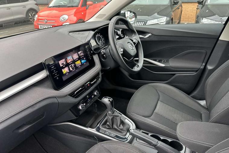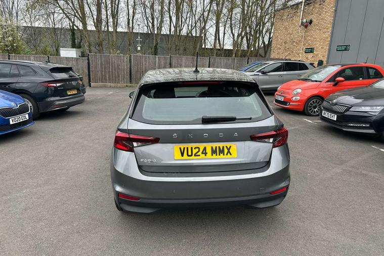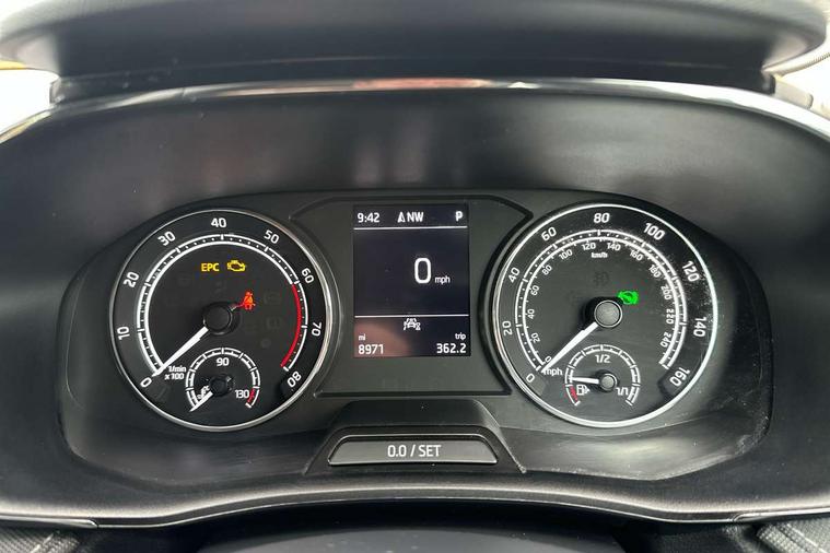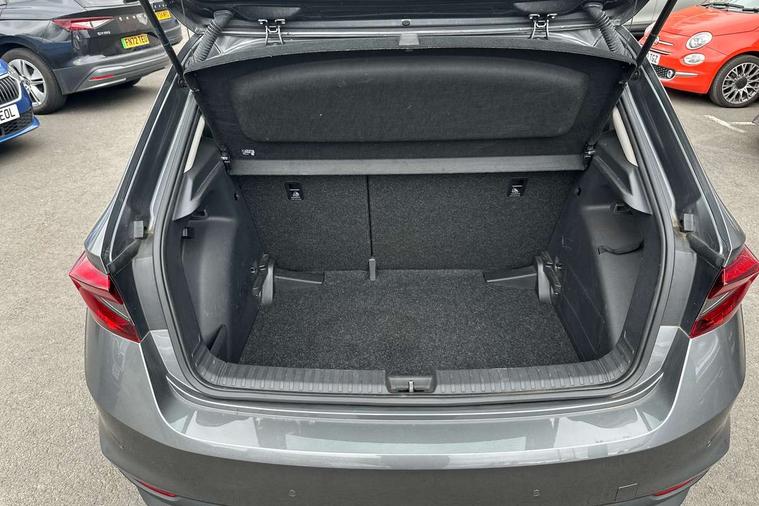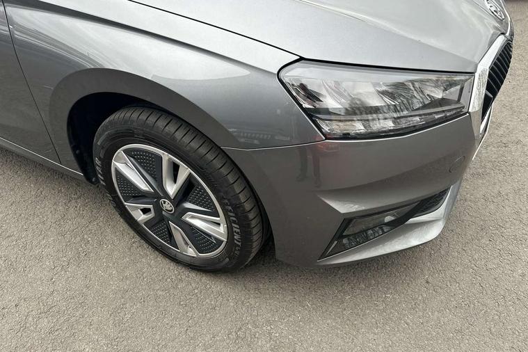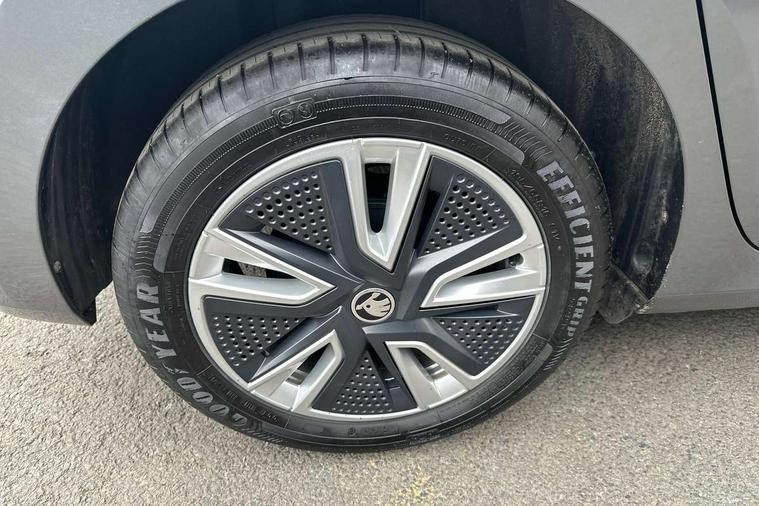 Bluetooth connection, Driver alert system - DAS, Electromechanical power steering, Exterior temperature gauge, Service interval indicator, 2x USB-C in the front (for data transmission and charging), 6 Speakers (4 in front and 2 in rear), Auxiliary socket for external MP3 player, DAB digital radio reception, Web radio, Auto dimming rear view mirror, Basic LED Headlights, Body colour door mirrors, Body coloured bumpers, Chrome window surround, Door mirror integrated indicators, Electrically adjustable and heated door mirrors, Front and rear electric windows, Front fog lights, Front window wiper intermittent control, Headlight range control - Automatic, Ice scraper in fuel cap, LED daytime running lights with coming and leaving home feature, Rain sensor, Rear LED fog light, Rear side wing doors, Rear window wiper with washing nozzles, Roof mounted spoiler, SKODA tailgate lettering in chrome, Third brake light, 3 rear headrests, Backrest split and folding, Central console with fixed cup holder and storage box, Chrome handbrake release button, Comfort seats, Fabric upholstery, Front centre armrest, Gearshift knob/handle in leather, Hand brake lever handle in leather, Height adjustable front headrests, Height adjustable front seats, Height adjustable steering wheel, ISOFIX and TopTether anchorage points to the outer rear seats, ISOFIX and TopTether on the front passenger seat, Luggage compartment lighting, Manually adjustable lumbar support in front seats, Pollen filter, Rear seat bench unsplit, Removable cup holder, Single front passenger seat, Storm grey headlining, Sun visors with mirror and airbag label on passenger side, Textile floor mats, Ticket holder, Umbrella in drivers door, 3-point height adjustable front seats belts with pretensioner and force limiter, Automatic warning lights in case of crash, Driver and passengers airbag with switch off function, e-Call+, ESC including ABS, MSR, ASR, EDS, HBA and XDS, Front and rear seat belt warning, FRONT ASSIST (AEB City and AEB Inter Urban), Front side airbags, Head airbags, Hill hold assist, One tone horn, Pedestrian protection, Three rear 3-points safety seat belts with pretensioner and force limiter including stop function for outer rear seat belts, Tyre pressure monitoring system, Anti-theft alarm system including immobiliser, interior monitoring, backup horn, and towing protection, Central locking with radio remote control, interior controls, SAFE function and 2 foldable keys, KESSY - Keyless engine start/stop, Chrome edged air vents, Satin black door and side trim panel in front, Anti-theft wheel bolts protection, Super-low rolling resistance tyres,