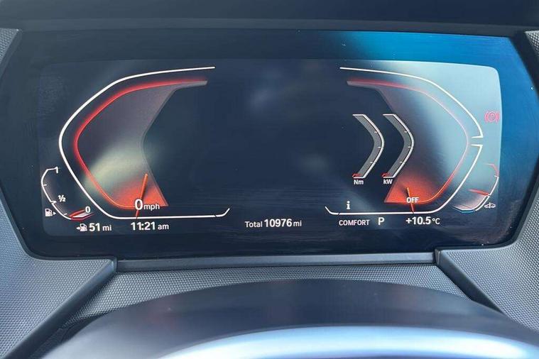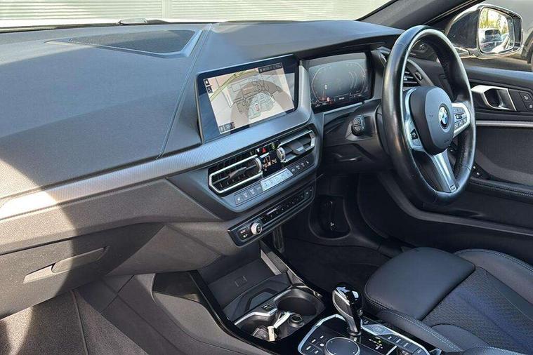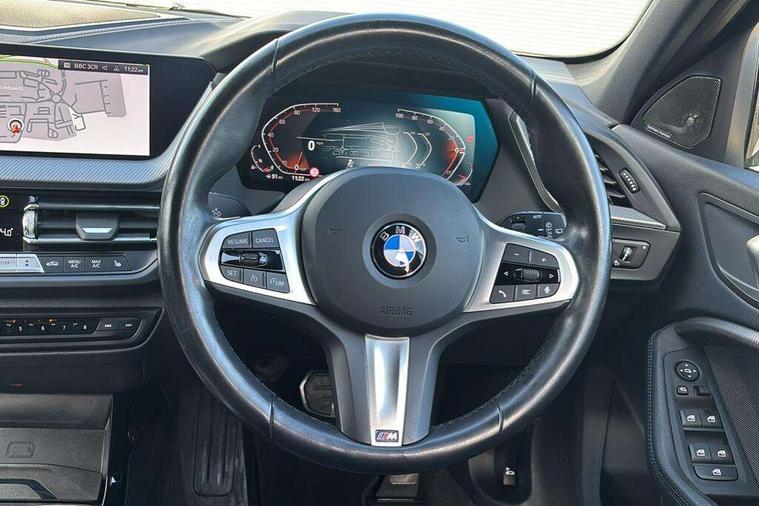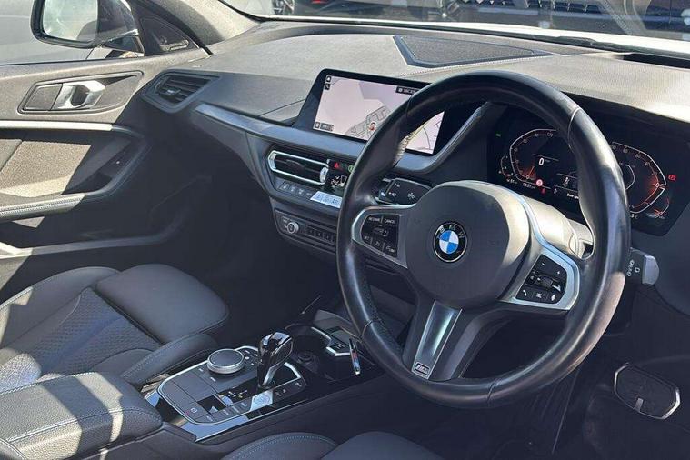 Active guard plus, Attentiveness assist, BMW ConnectedDrive online services, BMW Teleservices, Check Control warning system for monitoring of lights and door/luggage compartment open warning, Cruise control with speed limiter, Eco pro mode, Front axle single joint with specific axle kinematics to minimise drive influences on steering + provide increased rigidity agile driving behaviour, Integrated owners handbook, Lane departure warning system, Oil sensor for level and grade, On board computer, Optimum shift indicator, Personal Profile, Pull away assistant, Rigidly mounted rear subframe - Multi link construction with separate spring / damper configuration and excellent driving characteristics, Speed limit Info including no-overtaking indicator, Aluminium lightweight construction, Anti roll bar front and rear, Balancer shaft, Double VANOS twin scroll turbocharging system, Drive Performance Control, Electronic differential lock, High precision injection, M sport suspension, Petrol Particulate Filter, Twin tube gas filled shock absorbers with degressive characteristic curve, VALVETRONIC engine management, DAB Digital radio, Auto dimming rear view mirror, Automatic headlight beam throw control, Automatic windscreen wipers and automatic headlight, Body colour door handles, Body colour mirror caps, Body colour roof trims, Chrome 'M' logo side designation, Chrome exhaust twin tailpipes round 90mm in left, Chrome kidney grille frame with Satin Aluminium struts, Direction indicator side lights in exterior mirrors, Electrically adjustable exterior mirror with mirror adjustment switch on drivers armrest and aspheric on driver side, convex on passenger side, Fading support, Folding side mirrors with auto dimming/folding wing mirrors with auto dimming, Follow me home headlights, Front and rear bumper system with replaceable deformation elements, Front and rear electric windows with open and close fingertip control, anti trap facility and comfort closing, Front door sill finishers in black plastic with M designation in metallic look, Green tinted heat protection glazing, High gloss shadowline window frame, Recess cover mirror frames and B/C pillar embelisher trim, High level third brake light, Integrated front windscreen with washer jets, LED daytime running lights, LED eyebrow turn indicators, LED front fog lights, Lightweight engineering, Matt black air guide grilles, Matt black wheel arch trim, Model designation on electric bootlid, Nearside reverse light in rear light cluster, Preparation for high beam assistant, Rear fog lights, Rear side wing doors, Rear window wiper, Shark fin antenna, Trailer stabilisation logic, Visible VIN plate, Welcome lighting, 12V power socket in front centre console with blanking plug, 3 rear seat head restraints, 3 seat bench in 2nd row, 3 spoke sports leather steering wheel with black leather and stitching, pearl chrome decorative finish, specific M Badge, Anthracite headlining, Black boot net with lashing eyes, Cargo function on 2nd seat row, Child seat ISOFIX attachment for two outer rear seats and front passenger seat with anchorage points, Conditioned based service, Driver and front passenger backrest net on rear, Driver and front passenger seat heating, Driver side folding compartment in instrument panel, Folding rear clothes hook, Four grab handles integrated in roof lining, Front and rear door pockets with bottle holders, Front and rear side armrest integrated into door trim, Front armrest, Front sports seats, Glove compartment, Height adjustable front head restraints, Luggage compartment for bag hooks on left and right, foldable luggage compartment liner and four lashing eyelets, Manual adjust steering wheel, Multi-function controls for steering wheel, Single front passenger seat, Storage compartment in centre console, Storage compartment in luggage compartment, Stowage of the parcel shelf in luggage compartment trim, Sun visors with vanity mirrors and insert tab, Two front centre console cupholders, Two zone automatic air conditioning, Type C two USB ports in rear centre console, Velour floor mats, Additional interior lighting pack - 1 Series, BMW live cockpit professional pack- 1 Series, Connected pack professional - 1 Series, Interior lights pack - 1 Series, M Sport exterior styling aerodynamics pack - 1 Series, 2 tone horn, 3 point seatbelts on all seats, front pyrotechnic belt tensioners, stopper and belt force limiters, rear coded belt buckles, Airbags - Front driver/passenger, front and rear curtain head protection, front side, manual deactivation of front passenger airbag, Anti lock braking system (ABS) with brake assist, BMW emergency call, Brake drying, Braking readiness, Child proof locking system in rear door, City braking function, Comfort modes, Cornering brake control, Crash sensor activating of airbags, Unlocking doors, hazard warning lights, fuel cut off, interior lighting+activation of safety battery terminal clamp, Driver and front passenger seat belt security check, Dynamic stability control + (DSC+), Dynamic Traction Control - DTC, Electrically operated hand brake including automatic hold function, Front and rear disc brakes, Seatbelt warning, Side impact protection, Tyre pressure monitoring system, Warning triangle and first aid kit, Central locking switch for all doors, fuel filler cap and luggage compartment, Deadlocking function system to all doors, Drive away locking system on all doors and luggage compartment with de-activated in iDrive settings, Locking wheel bolts, Remote control with integrated key with High-gloss Black inlay and M designation and 1 button for open/ close lock, window, open luggage compartment, Start/stop button illuminated in centre console with keyless engine start and auto start stop deactivation button, Thatcham Cat.1 alarm and immobiliser, Wheel slip limitation close to the actuator (ARB), Contrast stitching on instrument panel, 18" Burnished M double spoke bi-colour alloy wheels finished in orbit grey - styl