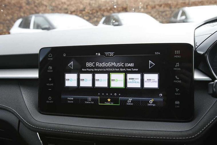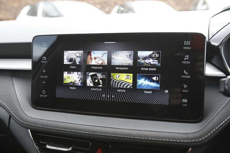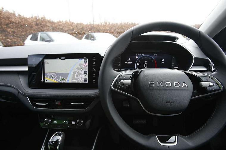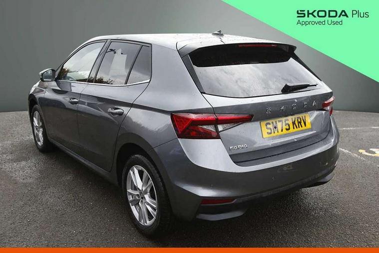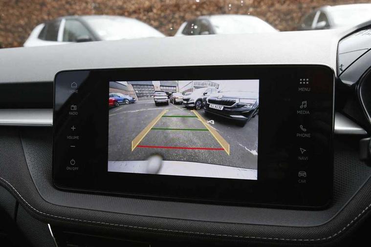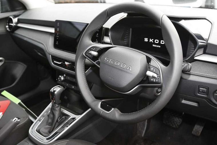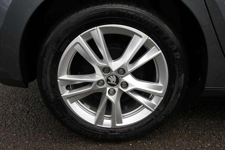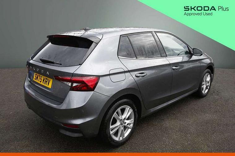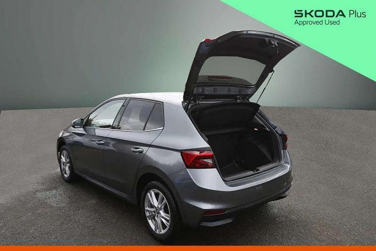 Advanced driver attention and drowsiness monitor, Bluetooth connection, Driver alert system, Electromechanical power steering, Exterior temperature gauge, Service interval indicator, Traffic sign recognition, Virtual cockpit with 10.25" colour display, Wireless SmartLink for Apple CarPlay and Android Auto, 6 Speakers (4 in front and 2 in rear), 9.2" colour display skoda navigation system with voice control and web radio, Auxiliary socket for external MP3 player, DAB digital radio reception, Auto dimming rear view mirror, Body colour door mirrors, Body coloured bumpers, Chrome window surround, Door mirror integrated indicators, Front and rear electric windows, Front window wiper intermittent control, Headlight range control - Automatic, Ice scraper in fuel cap, LED 3rd brake light, LED daytime running lights with coming and leaving home feature, LED rear lights, Privacy glass, Rear LED fog light, Rear side wing doors, Rear window wiper with washing nozzles, Roof mounted spoiler, SKODA tailgate lettering in chrome, Unique dark chrome design logo on alloy wheels, 2 LED reading lights in front and rear, 3 rear headrests, Backrest split and folding, Central console with fixed cup holder and storage box, Chrome handbrake release button, Comfort seats, Door sills with fabia badging, Dual zone air conditioning with climatronic electronic control, Fabric upholstery, Front centre armrest, Gearshift knob/handle in leather, Grain satin black interior door handles, Hand brake lever handle in leather, Height adjustable front headrests, Height adjustable front seats, Height adjustable steering wheel, ISOFIX and TopTether anchorage points to the outer rear seats, ISOFIX and TopTether on the front passenger seat, Luggage compartment lighting, Manually adjustable lumbar support in front seats, Pollen filter, Rear seat bench unsplit, Single front passenger seat, Skoda lettering on steering wheel, Storm grey headlining, Sun visors with mirror and airbag label on passenger side, Textile floor mats, Ticket holder, Ambient lighting pack - Fabia Hatchback, 3-point height adjustable front seats belts with pretensioner and force limiter, Automatic warning lights in case of crash, Driver and passengers airbag with switch off function, e-Call+, ESC including ABS, MSR, ASR, EDS, HBA and XDS, Front and rear seat belt warning, FRONT ASSIST (AEB City and AEB Inter Urban), Front side airbags, Head airbags, Hill hold control, One tone horn, Pedestrian protection, Three rear 3-points safety seat belts with pretensioner and force limiter including stop function for outer rear seat belts, Tyre pressure monitoring system, Anti-theft alarm system including immobiliser, interior monitoring, backup horn, and towing protection, Central locking with radio remote control, interior controls, SAFE function and 2 foldable keys, Chrome edged air vents, Grain satin black central console cover, Metallic grey upper decorative trim, Satin black door and side trim panel in front, Textile microsuede grey lower decorative trim with art grey stitching, Anti-theft wheel bolts protection, Super-low rolling resistance tyres,