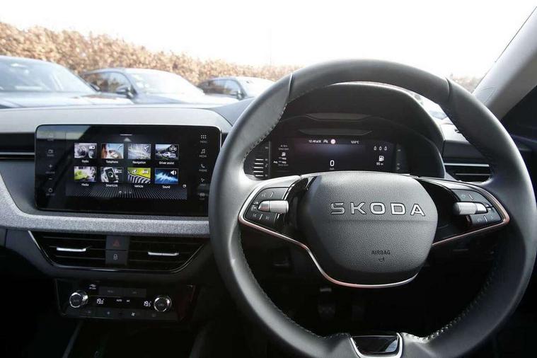 Advanced driver attention and drowsiness monitor, Bluetooth system, E-call, Front assist system, PAS, Rear parking sensors, Rear view camera, Service indicator, Speed limiter, Traffic sign recognition, Virtual cockpit with 10.25" display, Wireless smartlink, 4 USB C ports, 8 Speakers, 9.2" Skoda navigation display, DAB Digital radio, Auto dimming rear view mirror, Automatic headlight control with coming home and leaving home feature, Black roof rails, Body colour bumpers, Body colour door mirrors and handles, Chrome grille surround, Front and rear electric windows, Full LED headlights, Heated rear window, LED brake lights, LED daytime running lights, LED front turning lights, LED high beam, LED low beam, LED third brake light, Rear LED fog light, Rear side wing doors, Rear wiper, Ticket holder inside windscreen, 12V socket in luggage compartment, 3 seat bench in 2nd row, Black hotstamping, Cargo elements, Chrome inner door handles, Driver and passenger sun visors with vanity mirror, Dual zone climate control, Front and rear roof lights, Front centre armrest, Front head restraints, Glove compartment with illumination, Height adjustable driver seat, Height adjustable front passenger seat, Ice scraper, Inner circulation control with pollen filter, ISOFIX on front passenger seat, Isofix preparation for back seats, Krepp recycled decor inserts, Leather gearknob and handbrake lever, Loft cloth upholstery, Manual lumbar support for front seats, Net package and top tether hooks in boot space, Net under rear shelf, Overhead glasses storage compartment, Pocket on the back of both front seats include mobile phone pockets, Rake/reach adjustable steering wheel, Reading lights, Satin black door inserts, Single front passenger seat, Textile floor mats, Third rear headrest, Top tether for front passenger seat, Umbrella in driver's door, 3x3 point rear seatbelts, Airbags - driver and front passenger, Disc brakes, ESP, Extended and predictive pedestrian/cyclist protection, Front passenger airbag deactivation switch, Front side airbags with curtain airbags, Hill hold control, Manual leather parking brake, Manual rear child locks, One tone horn, Seatbelt reminder for driver an co-driver, Traction control, Tyre pressure monitor, Anti-theft alarm system with interior monitoring, backup horn, towing protection and remote central locking with SAFE system, Anti-theft wheel bolts, Electronic engine immobilizer,