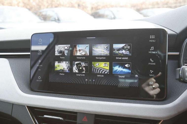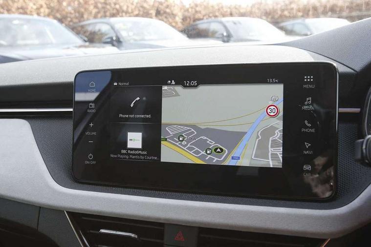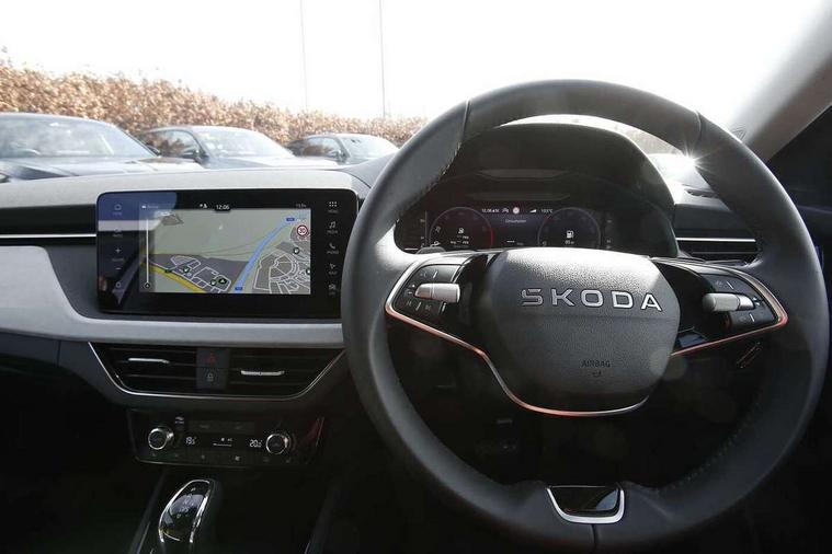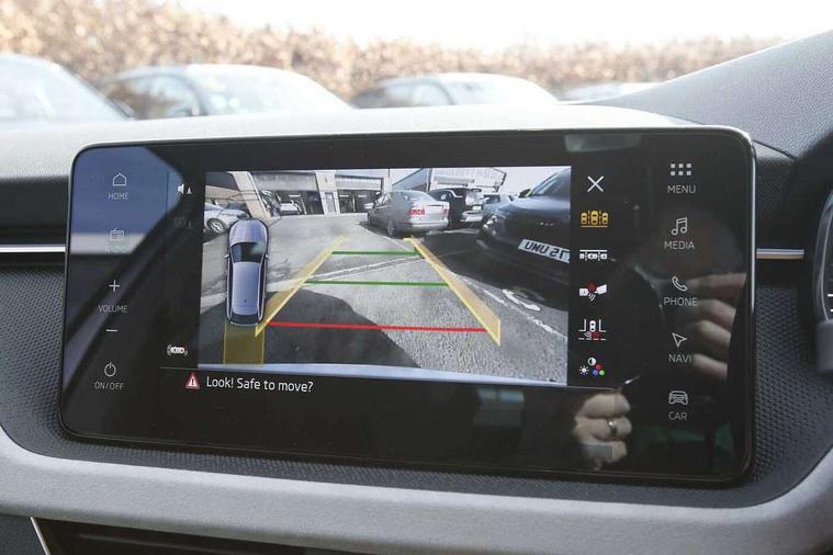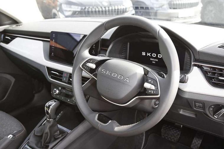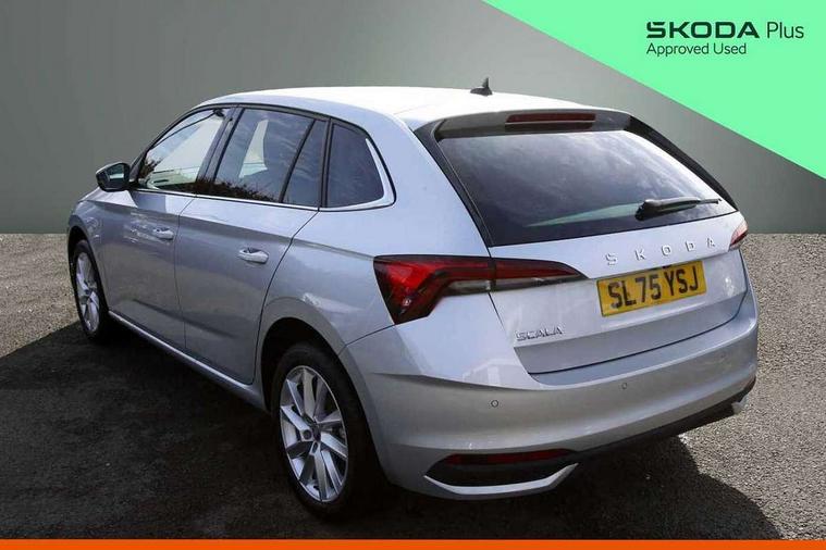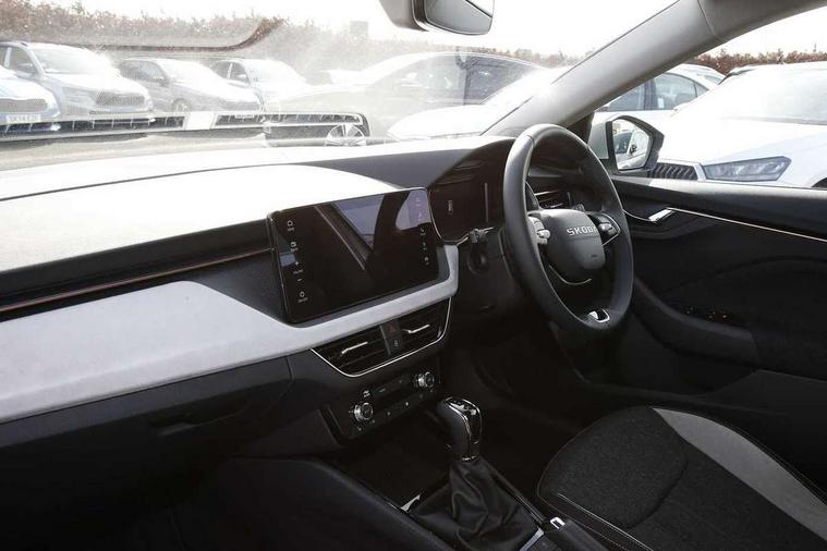Advanced driver attention and drowsiness monitor, Bluetooth, e-Call (emergency call), Front assist system, PAS, Rear parking sensors, Rear view camera, Speed limiter, Tailgate, Traffic sign recognition, Virtual Cockpit - 10.25" digital display, Voice control system, Wireless smartlink, 4 USB C ports, 8 Speakers, 9.2" Skoda navigation display, DAB radio, Auto dimming rear view mirror, Automatic headlight control with manual coming and leaving home feature, Automatic intermittent wipers, Body colour bumpers, Body colour door mirrors and handles, Chrome moulding around grille, Chrome window frames, Front and rear electric windows, Heated rear window, LED 3rd brake light, LED daytime running lights, LED high beam, LED low beam, Light sensors, Privacy glass, Rear LED fog light, Rear side wing doors, Rear wiper, Tinted windows, Unique dark chrome design logo on alloy wheels, 12V socket in luggage compartment, 3 seat bench in 2nd row, Ambient lighting in white/red, Black / Copper armrest stitching, Cargo elements, Chrome inner door handles, Copper hotstamping, Door inserts in accent black, Driver and passenger sun visors with vanity mirror, Dual zone climate control, Front and rear roof lights, Front centre armrest, Front head restraints, Glasses storage in roof liner, Height adjustable driver seat, Height adjustable passenger seat, Ice scraper, Illuminated glove compartment, Inner circulation control with pollen filter, ISOFIX for front passenger seat, Isofix preparation for back seats, Leather gearknob and handbrake lever, Lodge cloth upholstery, Luggage net under rear parcel shelf, Manual lumbar support for front seats, Net package and top tether hooks in boot space, Pocket on the back of both front seats, incl. mobile phone pockets, Rear centre armrest, Single front passenger seat, Skoda lettering on steering wheel, Textile floor mats, Third rear headrest, Ticket holder, Top tether for front passenger seat, Umbrella in driver's door, Convenience pack without rear camera - Scala, 3x3 point rear seatbelts, ABS, Child locks, Curtain airbags and front side airbags, Disc brakes, Driver and front passenger airbags, ESP, Hill hold control, Manual leather parking brake, One tone horn, Passenger airbag switch off function, Seatbelt reminder for driver and front passenger, Tyre pressure monitoring system, Anti theft alarm system with interior monitoring, backup horn and towing protection, Anti-theft wheel bolts, Remote central locking with 2 remote folding keys, SAFE function for remote central locking, Decorative inserts,