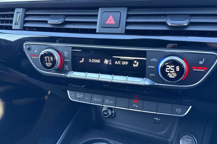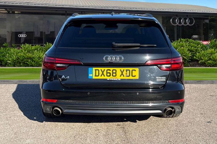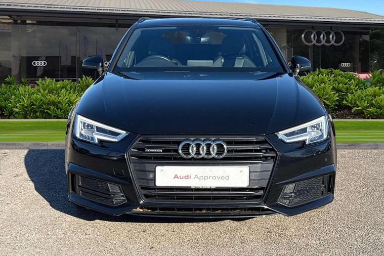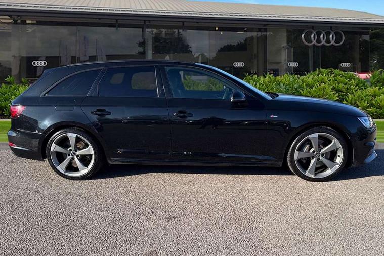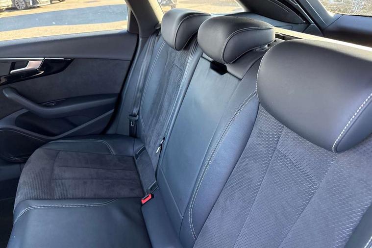 Audi drive select, Audi Pre sense collision avoidance, Audi smartphone interface, Colour driver's information system display, Electro-mechanical PAS, MMI SD card Navigation, Mobile telephone preparation - bluetooth interface, Power boot opening and closing, Service interval indicator, Stop/start button, Voice control system, 2 USB ports, Aux input, DAB digital radio module, MMI radio plus with CD player, Acoustic windscreen, Air inlets in titanium black, Auto dimming rear view mirror, Automatic headlights + automatic windscreen wipers, Body colour bumpers, Body colour door handles, Chrome rolled exhaust, Electric adjustable heated door mirrors, Electric front windows, Electric rear windows, Headlight range control, High gloss black triangular aperture at rear door, LED daytime running lights, LED indicators in door mirrors, Privacy glass with front acoustic glazing, Rain and light sensors, Rear diffuser in Twilight grey matt, Rear wiper, Roof spoiler, 3 spoke flat bottom high multi-function leather steering wheel, 3 zone climate control, Black cloth headlining, Front centre armrest with 12v socket, Front headrests, Front/rear floor mats, Gearshift paddles, Illuminated door sill finishers, Isofix child seat preparation for front passenger/outer rear seats inc passenger airbag deactivation, Jack and tool kit, Luggage compartment carpet, Perforated leather gearknob, Reach + rake adjustable steering column, Rear headrests, Retractable load area cover, Split folding rear seats, Stainless steel foot rest, Stainless steel pedals, Sunvisors with vanity mirrors, Top tether anchor plate for isofix child seat, Black styling pack - A4/S4 Avant, Non Smokers pack, S line exterior styling pack - A4 Avant, 3 point seatbelts on all rear seats, ABS/EBD, Active bonnet, Adaptive driver and front passenger airbags, EDL + ASR, Electromechanical parking brake, ESP, First aid kit, Front head airbags, Front seatbelt pretensioners + load limiters, Front side airbags, Multi-Collision braking, Seatbelt warning, Traction control, Tyre pressure monitoring system, Warning triangle, Anti theft alarm, Keyless start, Locking wheel bolts, Remote central locking, Thatcham category 1 alarm + immobiliser, Piano black finish inlay, Space saver spare wheel,