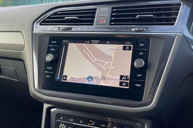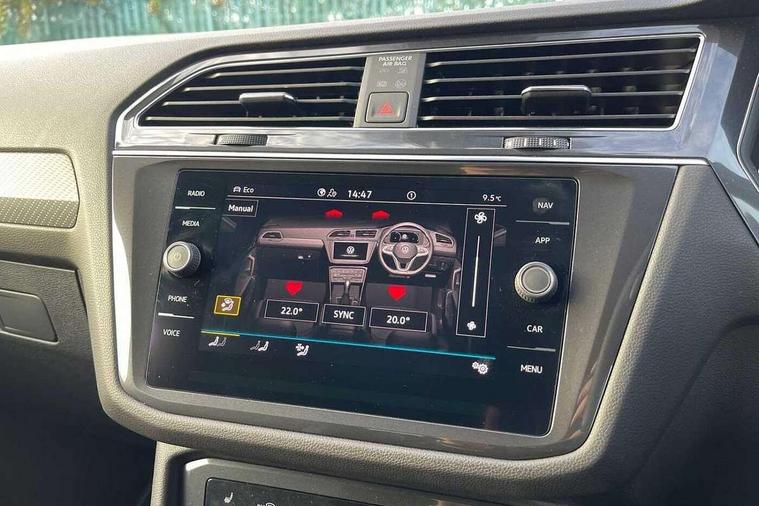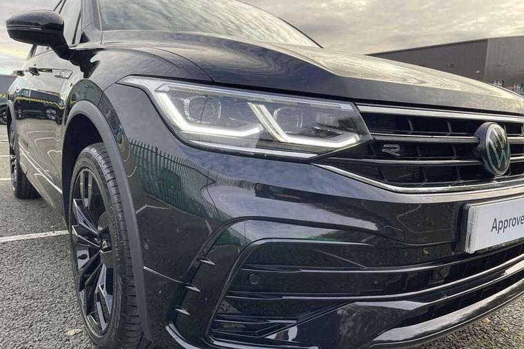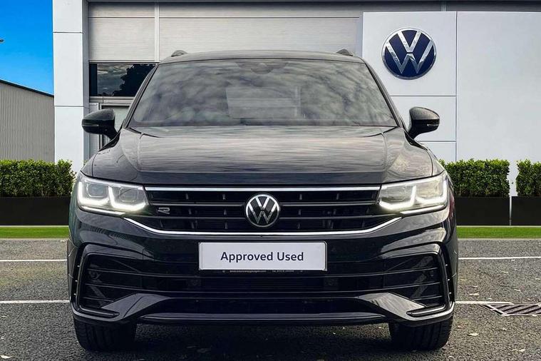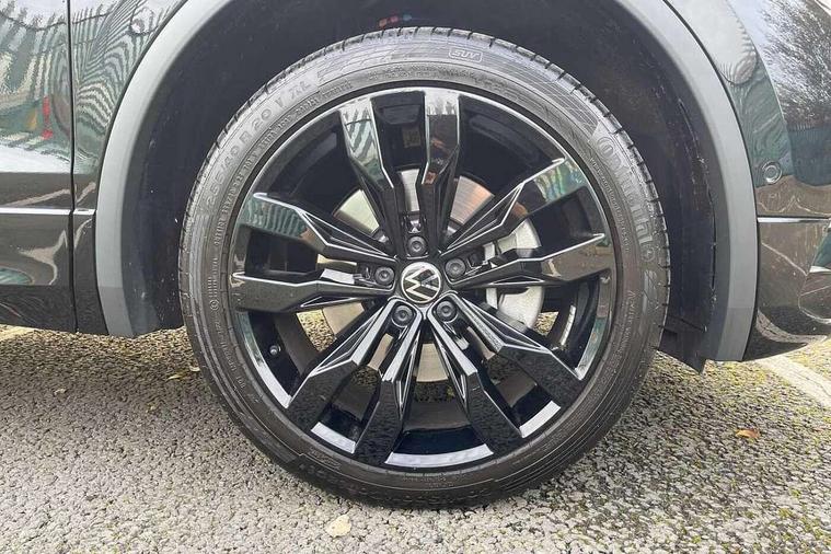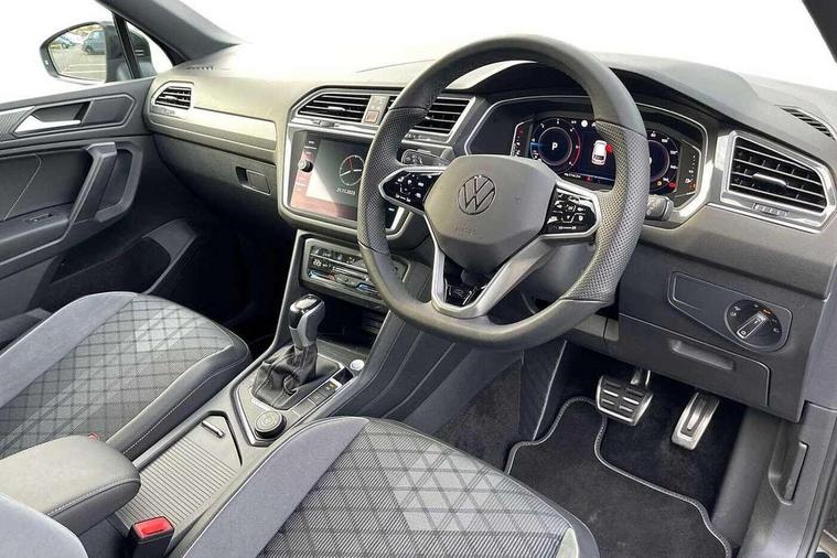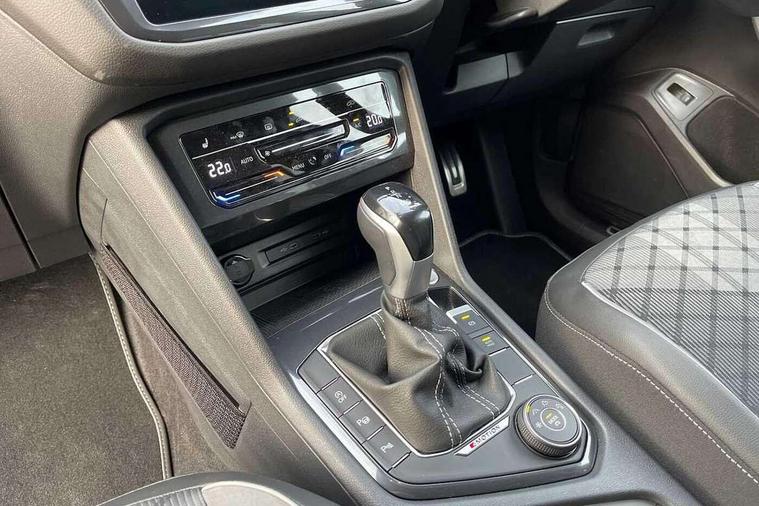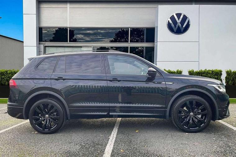 App-Connect, Adaptive cruise control, Digital cockpit pro, Driver alert system, Dynamic road sign display, eCall emergency call service, Electric boot lid, Lane change system side assist and rear traffic alert, Lane keeping system Lane Assist, Mobile phone interface comfort with inductive charging feature, Multifunction front facing camera, Progressive steering, Speedo and rev counter, electronic odometer, trip, service interval display and exterior temperature gauge, Diesel particulate filter, Start-stop system with battery regeneration (recuperation - energy recovery during braking), 2 USB-C ports in the front, 1 USB-C charging socket on the center console in the rear, DAB Digital radio, Diversity antenna for FM reception, Auto dimming interior rear view mirror, Automatic headlight control system, Chrome mouldings on side window, Coming/leaving home lighting function, Exterior badge deletion, Exterior mirror housings painted in silver, Heated windscreen washer jets, Rain sensor, Rear fog light, Rear side wing doors, Rear spoiler in R style, Rear wiper, Silver roof rails, Third brake light, 12-volt outlet in centre console rear and luggage compartment, 12V socket in centre console, 3 head restraints in rear, 3 individual folding 2nd row seats, 3rd row 2 individual seats, Air Care Climatronic 3 zone automatic climate control with enhanced air filter and controls in the rear, Black roof lining, Door and side trim panel with leatherette insert, Drawers under front seats, Driver and front passenger seat height adjustment, Foldable front passenger seat backrest, Front + rear carpet mats, Front centre armrest, Front footwell illumination, Heated front seats, Illuminated scuff plates, ISOFIX anchorage points for mounting 2 child seats on rear seats and i-Size child seats, Leather gearshift handle, Leather wrapped multi function sports steering wheel, heated, with touch control and shifting paddles, LED interior light with switch off delay/dimmer and 2 front/rear LED reading lights, Stainless steel pedals, Sun visors with illuminated vanity mirrors, Ambience pack - Tiguan Allspace R Line, Driver assistance plus package - Tiguan Allspace, 3 point seat belt for centre rear seat, 3 rear three point seatbelts, ABS+EBD+Brake assist, Driver and front passenger safety-optimised head restraints, Driver's and front passenger's airbag with front passenger's airbag deactivation switch, Electronic parking brake, Electronic Stability Control (ESC) inc EDL (Electronic Differential Lock) and ASR (Traction Control), Height adjustable front 3 point seatbelts + pretensioners, Manual rear child locks, Pedestrian monitoring, PreCrash preventive occupant protection Front and rear, Rear disc brakes, Side airbag in front and rear with curtain airbag, Two tone horn, Warning buzzer for seatbelts if unfastened, Anti theft alarm system with interior monitoring, backup horn and towing protection, Anti-theft wheel bolts, Electronic steering lock, Remote central locking with 2 remote folding keys,