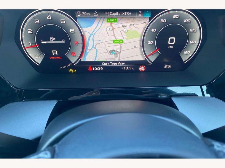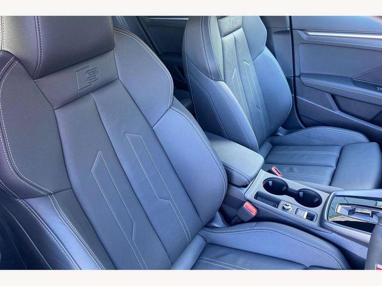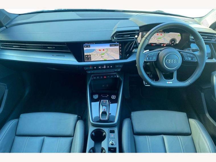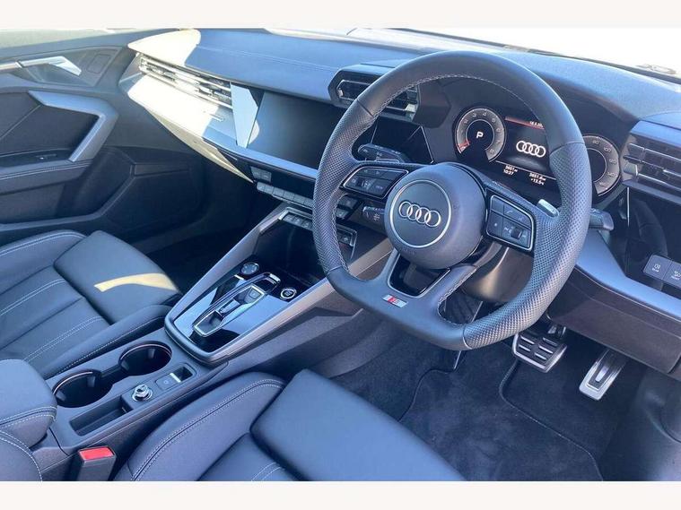 Adjustable speed limiter, Audi drive select, Audi smartphone interface with app store includes wireless Apple carplay, Android auto and Amazon alexa integration, Audi virtual cockpit plus - 12.3" full HD resolution dynamic digital instrument cluster, Automatic start/stop system with recuperation, Bluetooth interface, Camera based traffic sign recognition, Collision avoidance assistant, Cruise control, Distraction and Fatigue warning, e-Call (emergency call), Electromechanical power speed sensitive steering, Emergency assist, Lane departure warning system, MMI Navigation Plus with high resolution 10.1" colour touch screen display, Park Assist with parking system Plus, Service indicator, Tailgate, Trip computer, Voice control system with natural language interaction, Sports suspension, Audi Phonebox light with wireless charging, Audi sound system - 10 loudspeakers including centre loudspeaker and subwoofer, DAB Digital radio, USB ports with charging function in the rear, Acoustic glass windscreen, All weather light, Aluminium window trim, Auto dimming frameless rear view mirror, Automatic dynamic range control, Body colour exterior mirrors, Chrome exhaust tailpipes, Dipped beam, main beam, position light and turning light, Electrically adjustable/heated/folding/auto dimming door mirrors with integrated LED indications + kerb view function for passenger side, Exterior model badging, Front and rear side air inlets in grained matt black with dark liquid chrome frame, Front electric windows, Front radiator grill in high gloss dark chrome, Heat insulating glass windscreen, Illuminated door sills with aluminium inserts at the front with S logo, Intersection light, LED 3rd brake light, LED brake lights, LED daytime running x3, LED headlights with LED rear lights and dynamic rear indicators, LED rear number plate lights, LED reverse light, LED tail lights, Light and rain sensors, Manoeuvring light, Motorway light, Privacy glass - dark tinted rear window, rear door and side windows, Rear diffuser and grill in grained matt black with inlay in dark liquid chrome, Rear electric windows, Rear side wing doors, Rear wiper, S line bumpers, S roof spoiler, Side S line emblems on front wings, Side sill trim in dark liquid chrome, Static cornering light, 12V socket and storage compartment in front centre console, 3 seat bench in 2nd row, 3 spoke flat bottomed leather multifunction sport steering wheel with gear shift paddles, 3-zone deluxe automatic air conditioning, 4 way electrically adjustable lumbar support for driver and front passenger, 40/20/40 split folding rear seat bench, Black cloth headlining, Black front and rear floor mats, Front and rear centre armrest in artificial leather with contrasting stitching on armrests and instrument panel, Front and rear headrests, Heated front seats, Height and reach adjustable steering wheel, Manual boot compartment lid, Manually adjustable front seats, Rear centre armrest with cupholder, S badging on the steering wheel, Seat side bolsters, Single front passenger seat, Stainless steel pedals and front footrest in black, Twin leather upholstery with front sports seats S embossed logo, Aluminium interior elements pack - A3, Multi-coloured LED interior lighting package with Multi-coloured contour lighting of instrument panel - A3, 3x3 point rear seat belts, Driver and front passenger airbag with passenger airbag deactivation, Electronic Stabilisation Control (ESC) including ABS, ASR and EDL, First aid kit with warning triangle and 2 safety vests, Front side airbags with head airbags and interaction airbag, Hill hold assist, Pre-sense front with pedestrian and cyclist detection, Seatbelt monitoring, Tyre pressure loss indicator, Anti theft alarm, Anti-theft wheel bolts, Electronically operated child locks, Immobiliser, Remote central locking with safelock, Black dashboard, Inlay in dark aluminium spectrum,