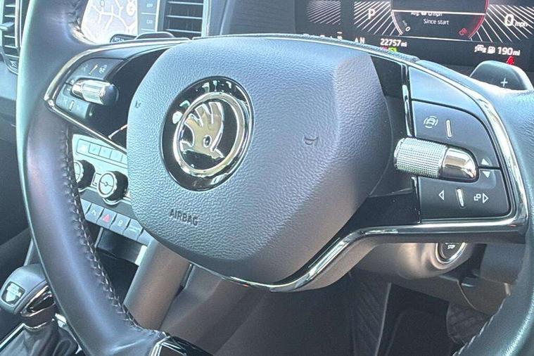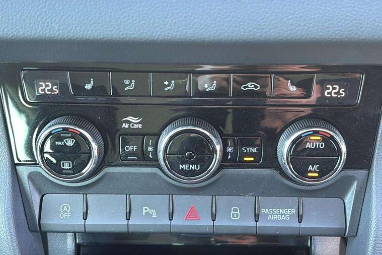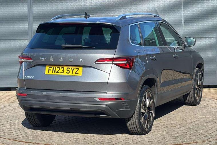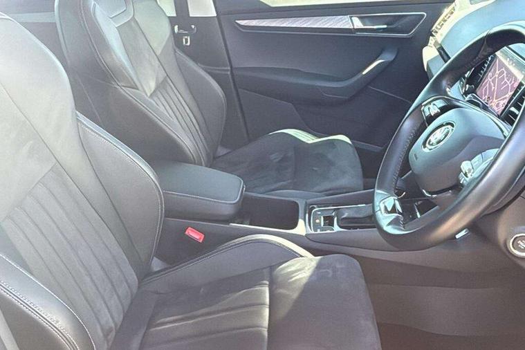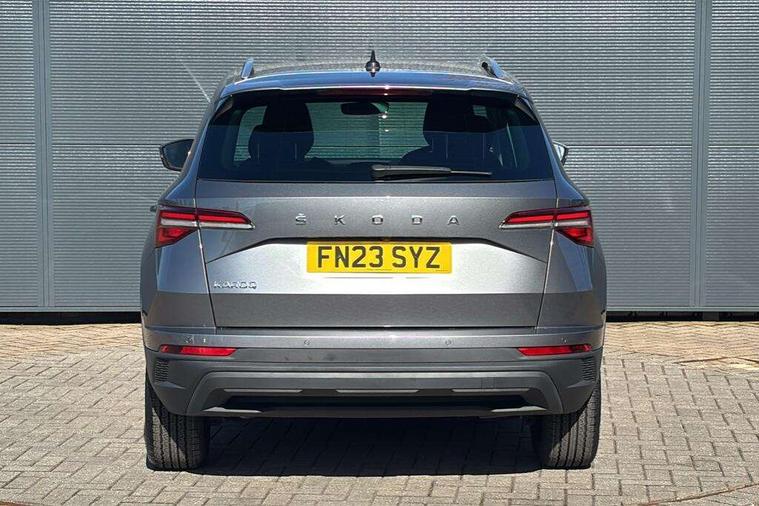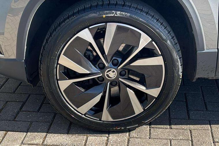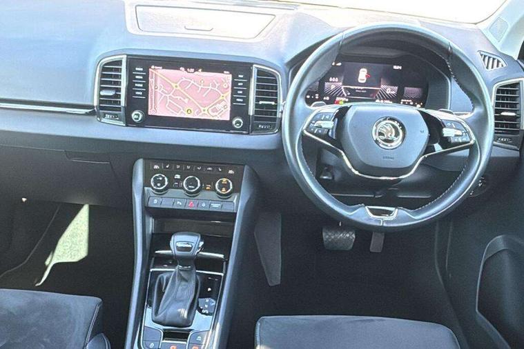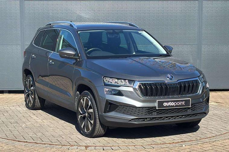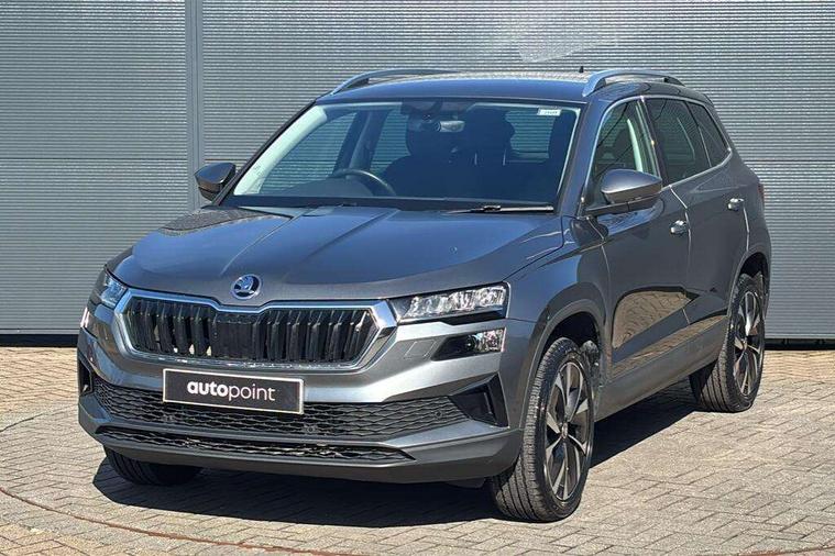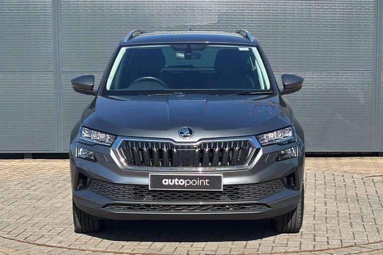 8" Digital display, Care connect, Driver fatigue sensor, Emergency services call system, Outside temperature gauge, Service interval indicator, SmartLink wireless for Apple and wired for Android, Start/stop system with regenerative braking, USB C Port x 2 in front centre console, 8 Speakers, DAB radio with Bluetooth, USB connection, Acoustic glass, Aero front windscreen wipers with intermittent function, Auto dimming rear view mirror with light and rain sensors, Black electric window control buttons, Body colour door mirrors and handles, Dynamic headlight range control with cornering light function, Electric front and rear windows with child proof lock, Heated rear windscreen, LED daytime running lights, LED rear lights with high functionality welcome effect and dynamic indicators, Light assistant (coming/leaving home/tunnel light), Plastic scuff plates, Privacy glass, Rear side wing doors, Rear spoiler, Rear window wiper with washer system and intermittent control, Safety reflectors on front doors, 1.5 litre bottle holders in driver and front passenger door panels, 12V socket in boot, 12v socket in front centre armrest with storage compartment and rear air vents, 2 Folding hooks and nets in boot, 2 spoke leather heated multifunction steering wheel with DSG paddles, 2 x Tablet holder, 3 rear height adjustable headrests, 3 seat bench in 2nd row, 4 foldable roof handles with rear coat hooks, Black floor carpet, Chrome inner door handles, Decorative door sills with KAROQ badging, Double sided boot floor, Foldable hooks in the boot, Front head restraints, Height adjustable front three point seats belts with tensioners, Height/reach adjust steering wheel, Ice scraper, Illuminated glovebox, Illuminated luggage compartment, Isofix child seat preparation for front passenger seat, Isofix child seat preparation outer rear, Manual lumbar support for front seats, Pen holder, Pollen filter, Rear boot cover, Rear reading lights, Rubbish bin door, Safety vest holder, Single front passenger seat, Storage box in upper central dashboard closed, Sunvisors with illuminated vanity mirrors, Textile floor mats, Ticket holder, VarioFlex seats with standard rear seat release, Chrome roof rails + chrome pack - Karoq, Parking pack - Karoq, Automatic door unlocking in case of crash, Automatic fuel cut off in case of crash, Child locks on rear doors, Driver airbag, Electronic parking brake with auto hold function, Emergency rear braking signal, ESC including ABS, MSR, ASR, EDS, HBA, DSR, RBS, MKB and traction control, Front side airbags, Hill hold control, Knee airbags, Passenger airbag with switch-off function, Pedestrian monitor, Seatbelt reminder signalisation and pretensioner for all seats, Three point seatbelts rear, Two tone horn, Tyre pressure display, Tyre pressure monitor, Alarm with interior monitoring, back up horn and tilt sensor with safe function, Electronic engine immobiliser, Keyless entry and start/stop, Remote central locking with 2 remote folding keys, Chrome framed air vents, 18" Procyon silver alloy wheels with anthracite aero inserts, Anti-theft wheel bolts protection, Storage on wheel cover, Tool kit,