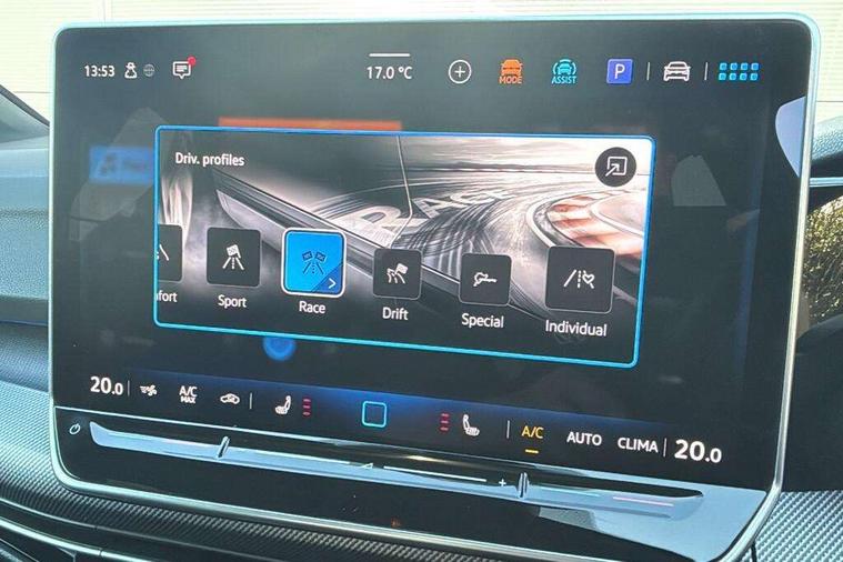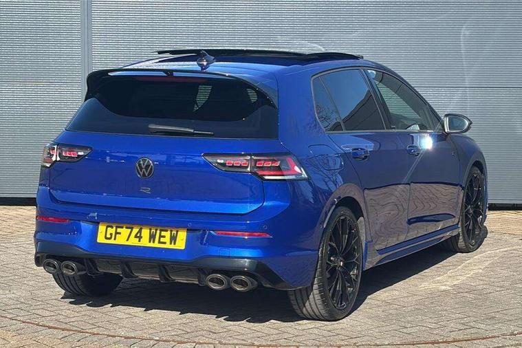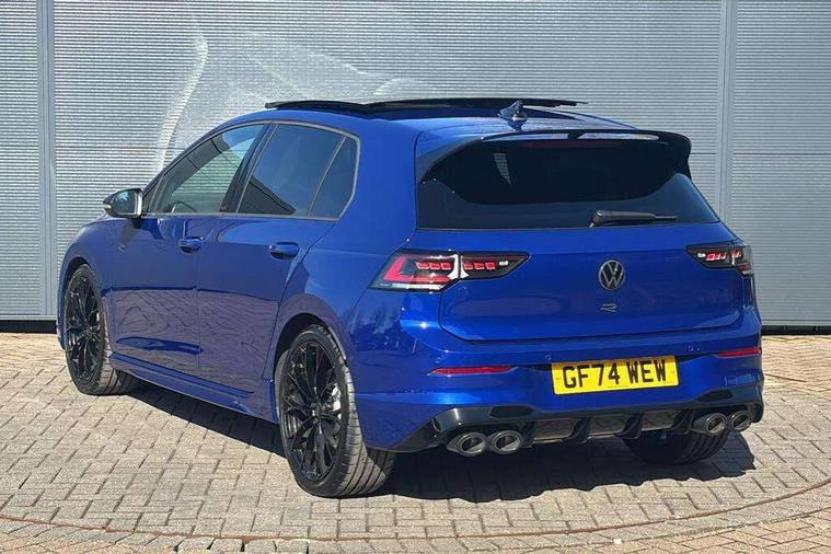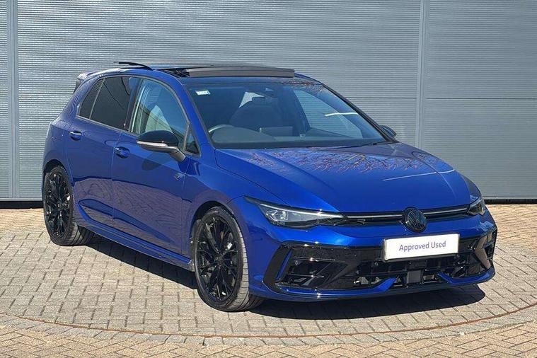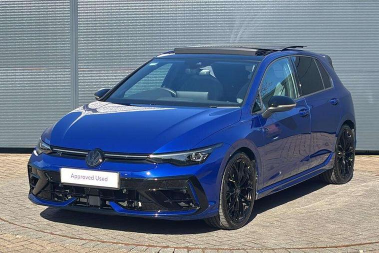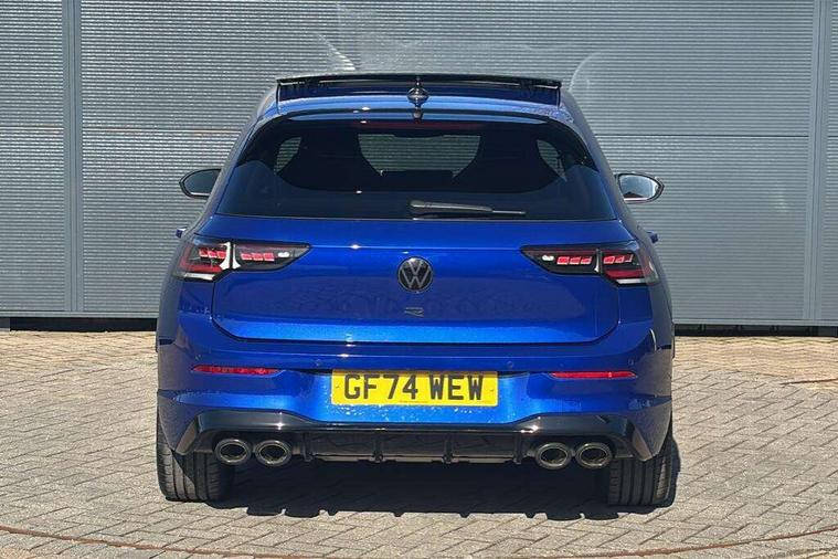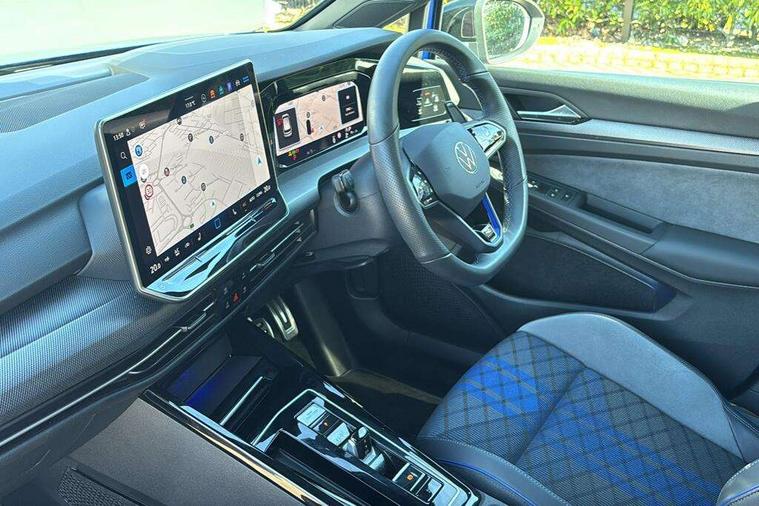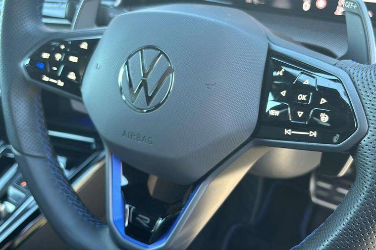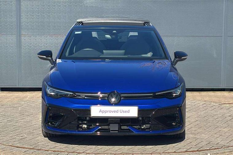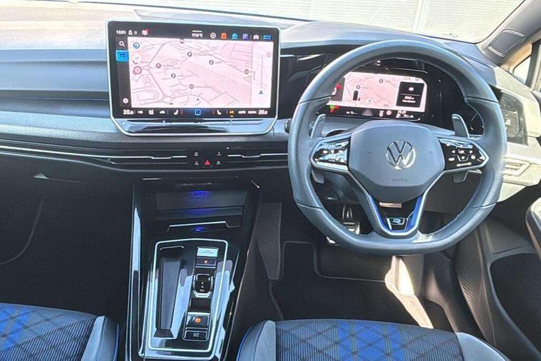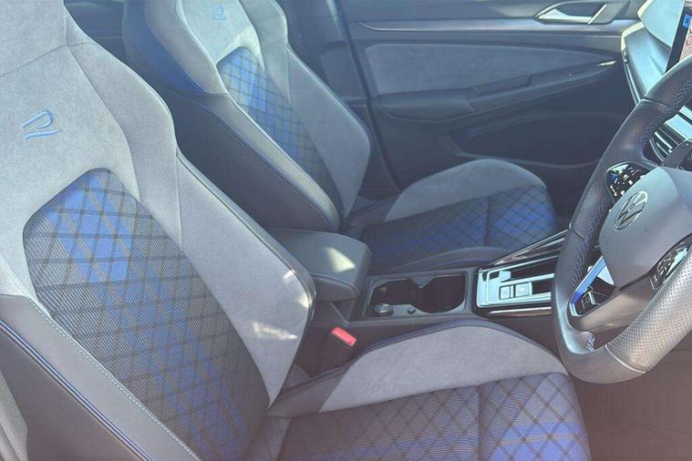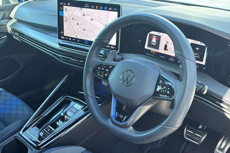 Activated carbon canister, Adaptive cruise control (ACC), Advanced driver attention and drowsiness monitor, Dynamic road sign display, E-Sim card for online connectivity, eCall emergency call system, Electronic maximum speed limit increased to 270 km/h, includes driving Modes 'drift' and 'special', larger roof spolier and GPS laptimer + G-Meter, Multi-color Digital cockpit pro, selection of different info profile possible, Multifunction front facing camera for distance control, Navigation system, Oncoming vehicle braking when turning including swerve support, Preparation for light assist system, Progressive steering, Side assist blind spot lane change system, rear traffic alert and exit warning system, Speed limiter, Speedo, rev counter, electronic odometer, trip, service interval display, exterior temperature and fuel gauge, Traffic jam assist, Voice enhancer and voice control, Warning signal and warning light for front and rear seatbelts not fastened, We connect plus preparation, We connect preparation, Wireless app connect, All wheel drive - 4Motion, Petrol Particulate Filter, Sports suspension, Start-stop system with battery regeneration (recuperation - energy recovery during braking), XDS electronic differential lock for improved traction and handling, 2 USB C ports in front, 2 USB charging sockets on the centre console in the rear charging capacity upto 45W, Comfort telephony + wireless charging, without wireless aerial connection, Digital radio reception (DAB), Diversity antenna for FM reception, Gaming platform via car app, Infotainment system with 12.9" display, Mobile phone interface with inductive charging feature, 3rd brake light, Auto dimming rear view mirror, Auto headlights, Automatic headlamp activation with Coming home and Leaving home feature, Black badge on B-pillar, Black mirror caps, Black strips on radiator grille and headlights, Body colour door handles, Darkened headlights, Darkened R Logos and VW logos in front, rear and on fender, Exhaust system with black tailpipe, Exterior ambient lighting with illuminated lighting animation and wake up/goodbye scenario, Exterior mirrors convex on the left and aspherical on the right, Front and rear electric windows, Front fog lamps and cornering light, Heat insulating windshield made of laminated glass, LED daytime running lights, LED matrix headlights with ambient light V2, advanced high beam, dynamic range contol with cornering, LED rear lamp with indicator, poor weather, R name plate, Rain sensor, Rear fog light on one side and reversing lights on both sides, Rear side wing doors, Rear tinted glass 65% light absorbing from B pillar backwards, Rear windscreen washer and wiper with interval delay, Remote electrically foldable door mirrors, puddle lights and reverse activated passenger's door mirror, Welcome light with surround lighting, 12V socket in front centre console, 12V socket in luggage compartment, 3 rear head restraints, 3 seat bench in 2nd row, 30 colour ambient lighting, illuminated center console storage compartment in front, Air care climatronic 3 Zone automatic climate control with rear air conditioning control panel, Aluminium gearshift handle, Brushed stainless steel pedals, Carpet mats, front and rear, Front centre armrest, Integrated front head restraints, ISOFIX anchors for child seats on outer rear bench seats and on front passanger seat compatible for i-Size, Luggage compartment lighting, Rear cupholder and loadthough, Single front passenger seat, Soul black instrument panel, Split folding backrest with centre armrest and unsplit rear seat bench, Storm grey roof lining, Sun visors with illuminated vanity mirrors, Driver assistance pack - Golf DSG Estate/Hatchback, R styling pack - Golf, Technology park and comfort pro package - Golf Hatchback, 3 point height adj front seatbelts + pretensioners, 3 rear three point seatbelts, ABS, Autonomous emergency braking front assist with pedestrian and cyclist monitoring, Child locks on rear doors, Disc brakes in rear incl. brake calipers in black with darkened R-logo, Driver and front passenger airbag with front passenger airbag deactivation, Electronic parking brake with auto hold, ESC (Electronic Stability Control), Extended pedestrian protection measures, Hill start assist, Two tone horn, Tyre pressure loss indicator, Volkswagen roadside assistance, Anti theft wheel bolts, Preparation for alcohol interlock, Wheel hub cover with darkened R-logo,