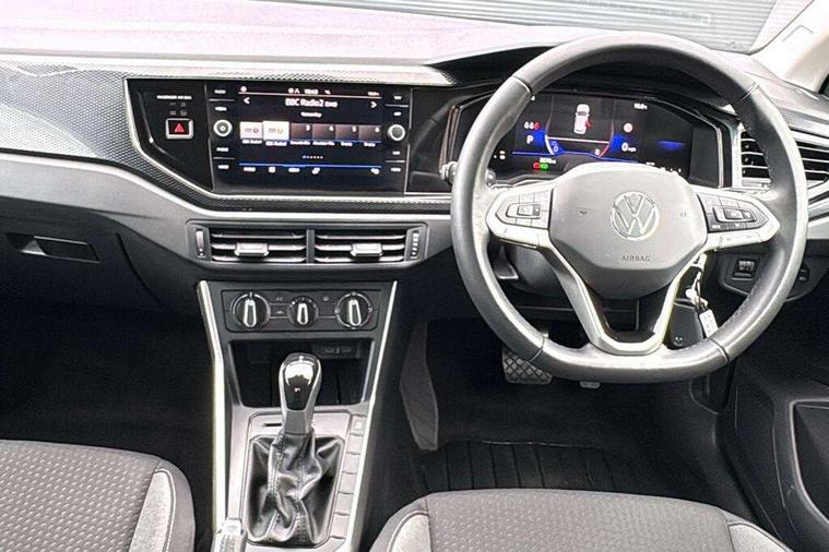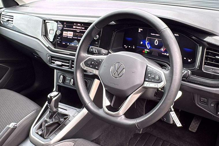 Advanced driver attention and drowsiness monitor, Bluetooth mobile phone interface, Dynamic road sign display, Emergency call service, Mobile phone preparation with inductive charging function, Multifunction front facing camera for distance control, Power assisted speed sensitive steering, Predictive adaptive cruise control without follow-to-stop and speed limiter, Preparation for navigation system with media and internet package, Preparation for We connect and We connect plus, Rear view camera, Speedo and rev counter, electronic odometer, trip, service interval display and exterior temperature gauge, Standard rear axle, Travel Assist - Lane keeping system and traffic jam assist, Travel assist including emergency assist, Trip computer, Warning signal and warning light for front and rear seatbelts not fastened, Washer fluid level indicator, Wireless app connect, Front wheel drive, Rear shock absorpion, Start-stop system with battery regeneration (recuperation - energy recovery during braking), DAB Digital radio, Diversity antenna for FM reception, Automatic dimming interior rear view mirror, Automatic headlight control with LED separate daytime running lights with coming/leaving home function, Body colour bumpers with chrome inserts, Body colour door handles, Body colour door mirrors, Electric front windows, Engine badge deletion, Headlight range adjustment, Heat insulating and laminated safety glass windshield, LED Headlights, LED rear combination lamps, Power folding adjustable/heated exterior mirrors and front passenger exterior mirror lowering function, Rain sensor, Rear electric windows, Rear fog light, Rear side wing doors, Rear tinted glass from B-pillar backwards approx 65% tinted, Rear windscreen washer and wiper with interval delay, Third brake light, 12V power socket in centre console, 2 front and 2 rear reading lights with switch off delay and dimmer, 2 USB-C ports in the front, 2 USB-C charging sockets on the center console in the rear, 3 rear head restraints, 60/40 split folding rear seat and rear seat bench not split, Ceramique roof lining, Chrome plated radiator grille inserts, air vent surrounds and light switch surrounds, Door and side trim panel, Driver and front passenger seat height adjustment, Driver/passenger sunvisors with illuminated vanity mirrors, Front centre armrest, Front seat backrest storage pockets, Front standard seats, Handbrake lever handle in leather, Hartley/Thomas cloth upholstery, Headliner in recycled material, Isofix child seat preparation easy-fit (for two outer rear seats, and front passenger seat) compatible with I-size, Leather trimmed gear knob, Luggage compartment cover, Luggage compartment lighting, Removable luggage compartment floor, Single front passenger seat, Standard climatic zones, Standard pedal cluster, Three spoke leather wrapped multifunction steering wheel with shifting paddles, Light and vision pack - Polo, 3 point height adj front seatbelts + pretensioners, 3 point seat belt for centre rear seat, 3 point seatbelts, outer rear with ECE lable, ABS, Driver and front passenger airbag with front passenger airbag deactivation, Drivers and front passengers safety optimised head restraints, ESC (Electronic stability control) + EDL (Electronic Differntial lock) and ASR (Traction control), Extended and predictive pedestrian/ cyclist protection, Front assist with autonomous emergency braking (for Adaptive Cruise Control ACC up to 130 mph), Front curtain and side airbags with center airbag, Front disc brakes, Hill hold control, Manual child lock in rear doors, Rear drum brakes, Single tone horn, Tyre pressure loss indicator, Alarm with interior protection, Anti-theft alarm system with interior monitoring, backup horn, and towing protection, Anti-theft wheel bolts, Electronic engine immobiliser, Lava stone black gloss/matt decorative inserts in dash and front door panels, 16" Torsby alloy wheels, Low rolling resistance tyres,