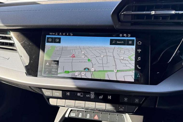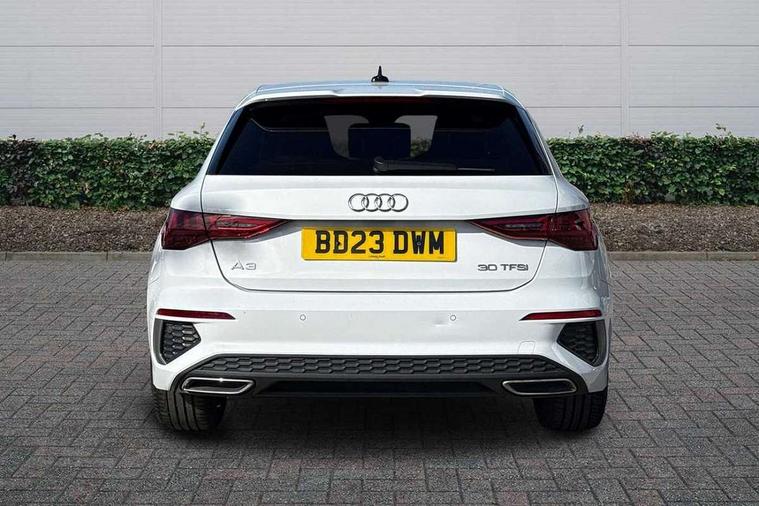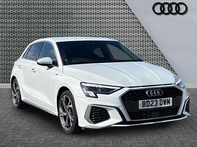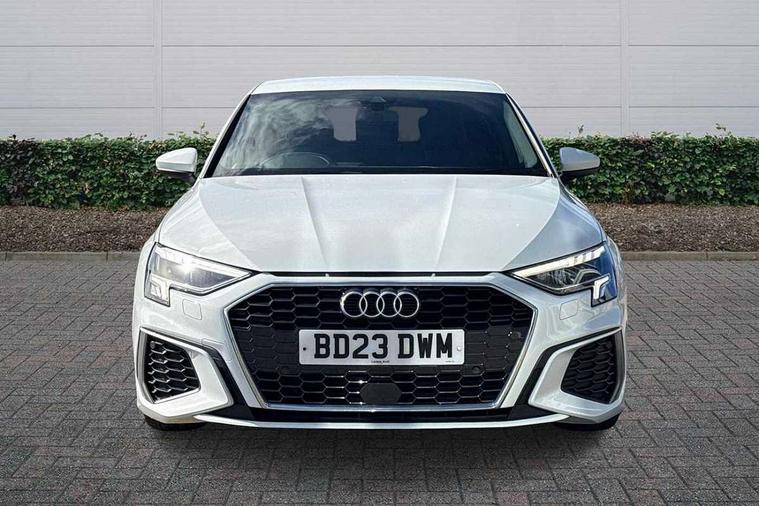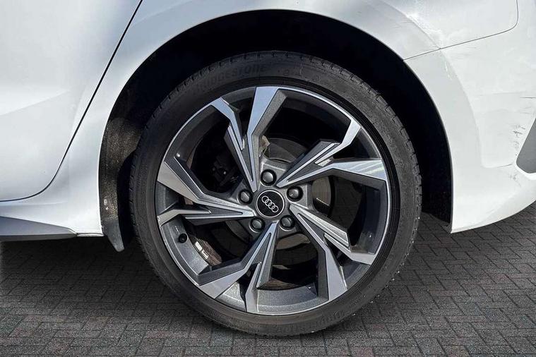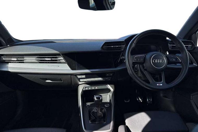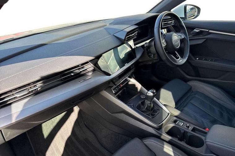 Audi drive select (Auto, Comfort, Dynamic and Individual), Audi smartphone interface, Audi Virtual Cockpit - 10.25" digital and colour instrument cluster, Automatic start/stop system with recuperation, Bluetooth interface, Camera based traffic sign recognition, Collision avoidance assistant, Cruise control, e-Call (emergency call), Electromechanical power speed sensitive steering, Lane departure warning system, MMI Navigation Plus with high resolution 10.1" colour touch screen display, Rear parking sensors, Service indicator, Trip computer, Voice control system with natural language interaction, Sports suspension, 2xUSB-C connection with data and charging functions, 6 passive loudspeakers, DAB Digital radio, 3rd brake light, Acoustic glass windscreen, Aluminium window trim, Auto dimming frameless rear view mirror, Body colour exterior mirrors, Electrically adjustable/heated/folding/auto dimming door mirrors with integrated LED indications + kerb view function for passenger side, Front electric windows, Illuminated aluminium inserts front door sills with S logo, LED daytime running lights, LED headlights with LED rear lights and dynamic rear indicators, Light and rain sensors, Privacy glass - dark tinted rear window, rear door and side windows, Rear electric windows, Rear side air outlets in grained matt black, Rear side wing doors, Rear wiper, S line bumpers, S roof spoiler, 12V socket and storage compartment in front centre console, 3 seat bench in 2nd row, 3 spoke leather multifunction steering wheel, 4 way electrically adjustable lumbar support for driver and front passenger, 60/40 split folding rear seat bench, Black cloth headlining, Dual zone electronic climate control, Front and rear centre armrest in leather, Front and rear headrests, Front/rear floor mats, Height and reach adjustable steering wheel, Interior lighting - glove compartment light and right hand side, Luggage compartment floor covering, Manual boot compartment lid, Manually adjustable front seats, Seat side bolsters, Single front passenger seat, Stainless steel pedals and front footrest in black, Twin leather upholstery with front sports seats S embossed logo, Aluminium interior elements pack - A3 Sportback, LED interior lighting pack - A3 Sportback, S line styling pack - A3 Sportback, 3x3 point rear seat belts, Driver and front passenger airbag with passenger airbag deactivation, Electronic Stabilisation Control (ESC) including ABS, ASR and EDL, First aid kit with warning triangle and 2 safety vests, Front side airbags with head airbags and interaction airbag, Pre-sense front with pedestrian and cyclist detection, Seatbelt monitoring, Tyre pressure loss indicator, Anti theft alarm, Anti-theft wheel bolts, Electronically operated child lock, Immobiliser, Remote control central locking, Dark spectrum aluminium inlays, accent surfaces in the dashboard and centre console in platinum grey silk effect paint finish,