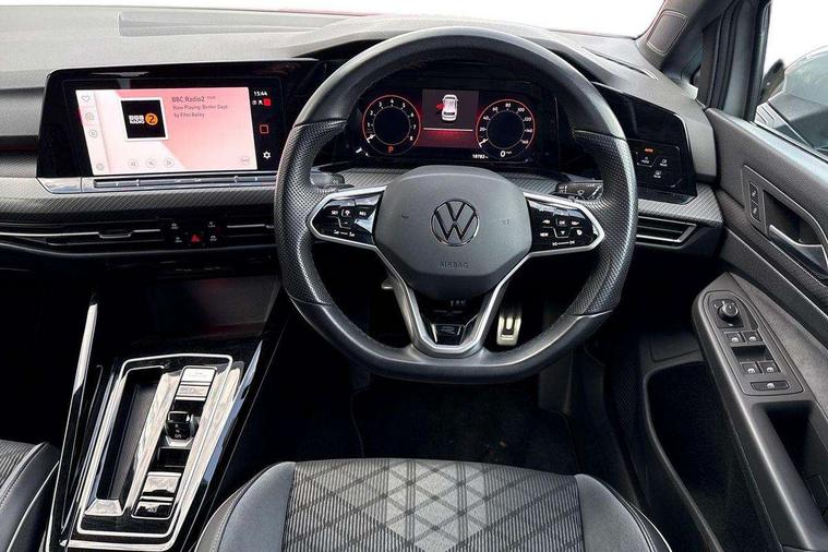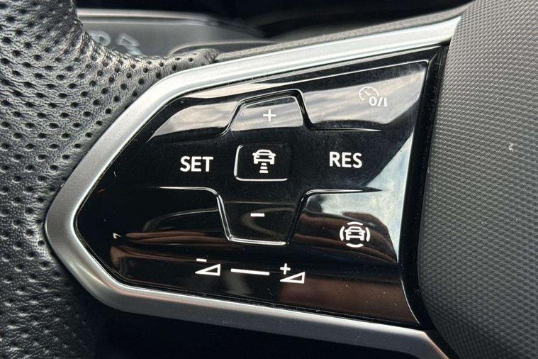 Adaptive cruise control (ACC) with speed limiter and front assist (reacting to vehicles pedestrians and cyclists), Car2X communication, Digital cockpit pro - 10.25" high resolution TFT dash display screen with customizable menus and information, Driver alert system, Dynamic road sign display, eCall - Emergency call service for SOS calls to emergency response, Lane assist, Mobile phone interface with wireless inductive charging function, Multifunction camera for distance control, PAS, Speedo, rev counter, electronic odometer, trip, service interval display, exterior temperature and fuel gauge, Start/Stop function, USB-C ports in the front and rear centre console with increased charging performance, Warning buzzer and light for front seatbelts unfastened, Wireless app connect, Petrol Particulate Filter, XDS electronic differential lock for improved traction and handling, Premium USB cable in choice of either Apple or Android smartphone compatibility, Ambient lighting, exterior illuminated styling elements at the sides, Auto dimming rear view mirror, Automatic headlamp activation with Coming home and Leaving home feature, Automatic headlights, Body colour door handles, Body colour door mirrors with integrated indicators, Body colour rear roof spoiler, Electrically heated and adjustable door mirrors with memory feature, Front and rear electric windows, Heat insulating glass windscreen, Heated rear windscreen, High level 3rd brake light, Highway light, LED License plate illumination, R Line body coloured bumpers, Rain sensor, Rear fog light on one side and reversing lights on both sides, Rear lights incorporating LED technology, Rear side wing doors, Rear tinted glass 65% light absorbing from B pillar backwards, Rear windscreen washer and wiper with interval delay, Welcome light, 12V socket in front centre console, 12V socket in luggage compartment, 3 rear head restraints, 3 seat bench in 2nd row, Ambient lighting - Customisable 30 colour ambient lighting, Black roof lining, Brushed stainless steel pedals, Chrome plated surround to electric mirror button, window switch and air vent surrounds, Drivers and front passengers sun visors with vanity mirrors, Front + rear carpet mats, Front centre armrest with storage compartment, Front cupholders x 2, Front passenger seat, Front reading lights x 2 incorporating LED technology, Front seat lumbar support adjuster, Front sports seats, Glovebox, Height adjustable front seats, Height and reach adjustable steering wheel, Isofix child seat preparation for 2 rear child seats and front passenger seat, Luggage compartment lighting, R Line door and side trim panel, R Line front seats integrated head restraints, R-Line leather wrapped multi function sports heated steering wheel, Removable luggage compartment cover, Sardegna cloth upholstery with front and outer rear seats Art Velour inner sides of bolsters, Split folding backrest with centre armrest and unsplit rear seat bench, Titanium black instrument panel, Woven fabric storage compartments in front and rear doors, 3 point height adj front seatbelts + pretensioners, 3 rear three point seatbelts, ABS, Child locks on rear doors, Driver and front passenger airbag with front passenger airbag deactivation, Drivers and front passengers safety optimised head restraints, Electronic parking brake with auto hold, ESC (Electronic Stability Control), Extended pedestrian protection measures, Front and rear passengers curtain airbag system including front side airbags, Front centre airbag, Front disc brakes, Front side airbags with curtain airbags, Rear disc brakes, Two tone horn, Tyre pressure monitoring system, Alarm with interior protection and deactivation via infotainment system, Electronic engine immobiliser, Carbon grey decorative inserts in dash and front door trim panels, High gloss black centre console,